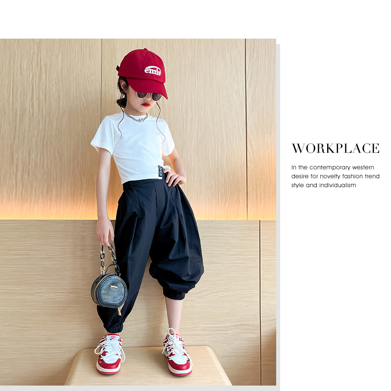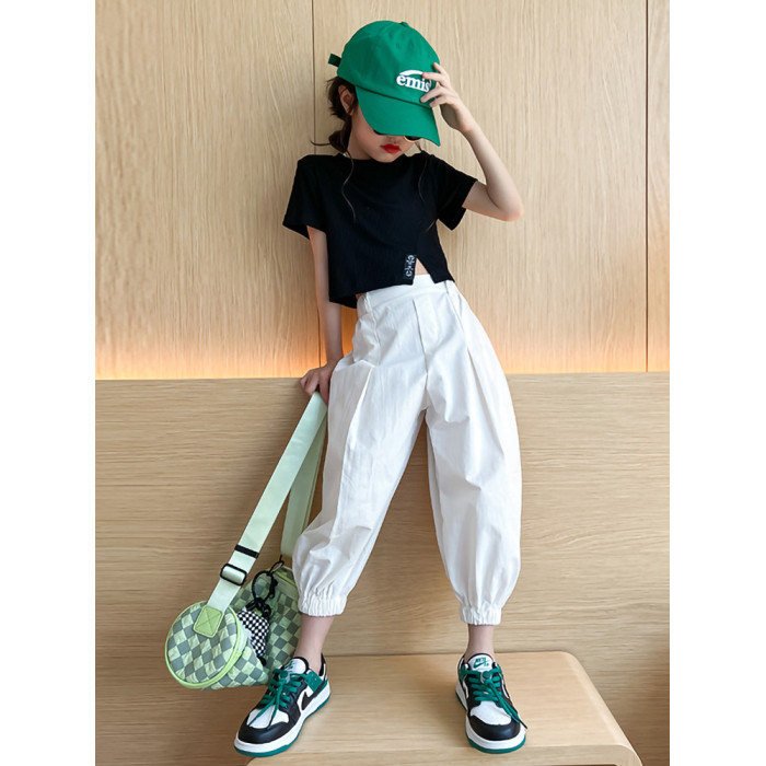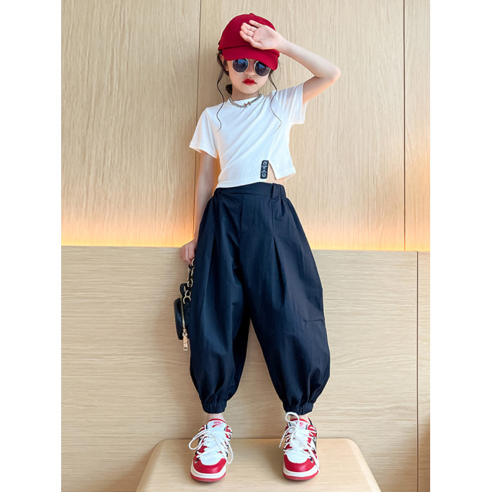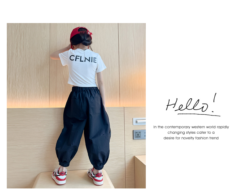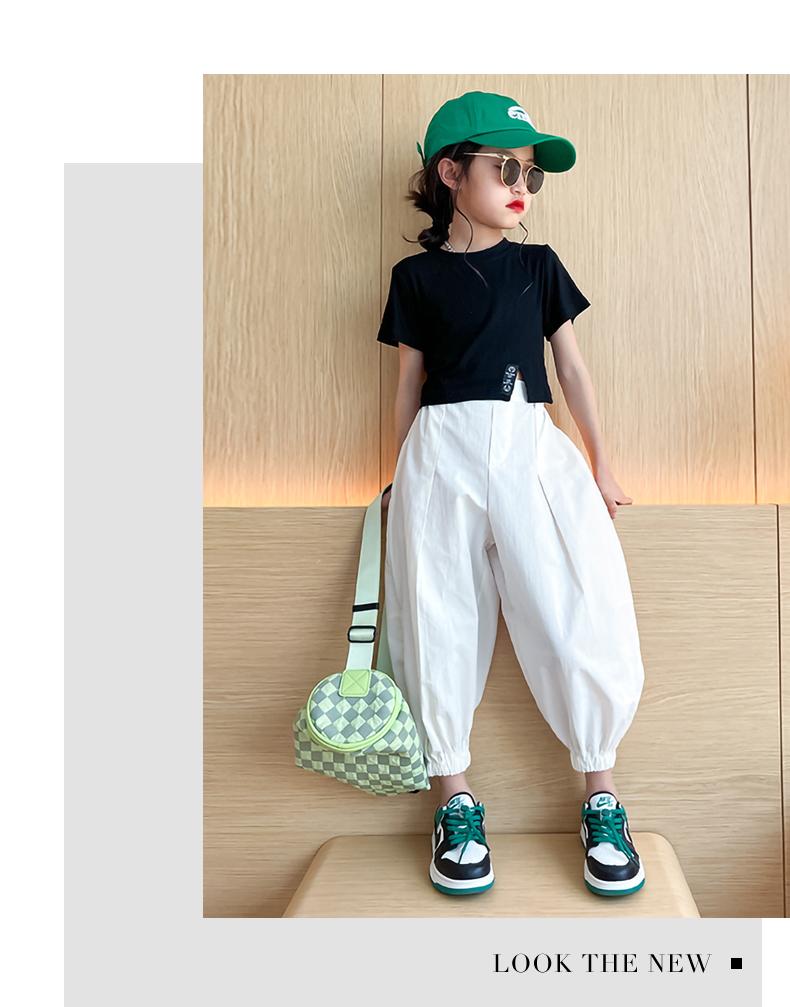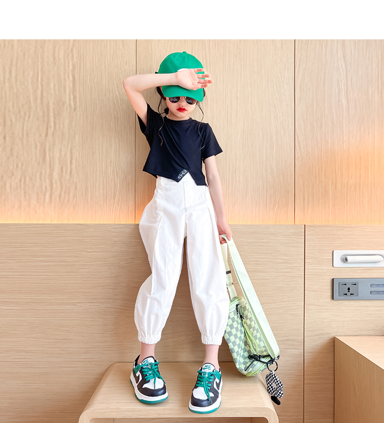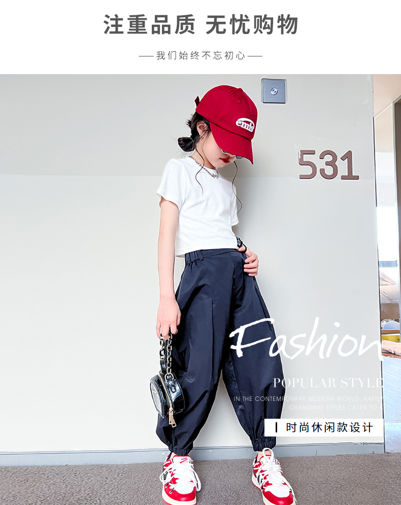 t血女童純棉夏裝2025新款中大童炸街兒童洋氣短袖女孩黑色上衣潮