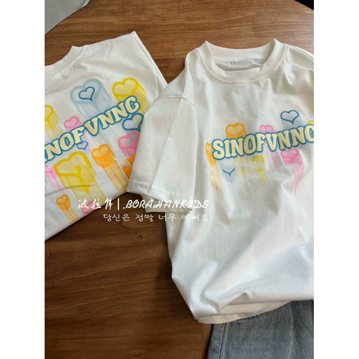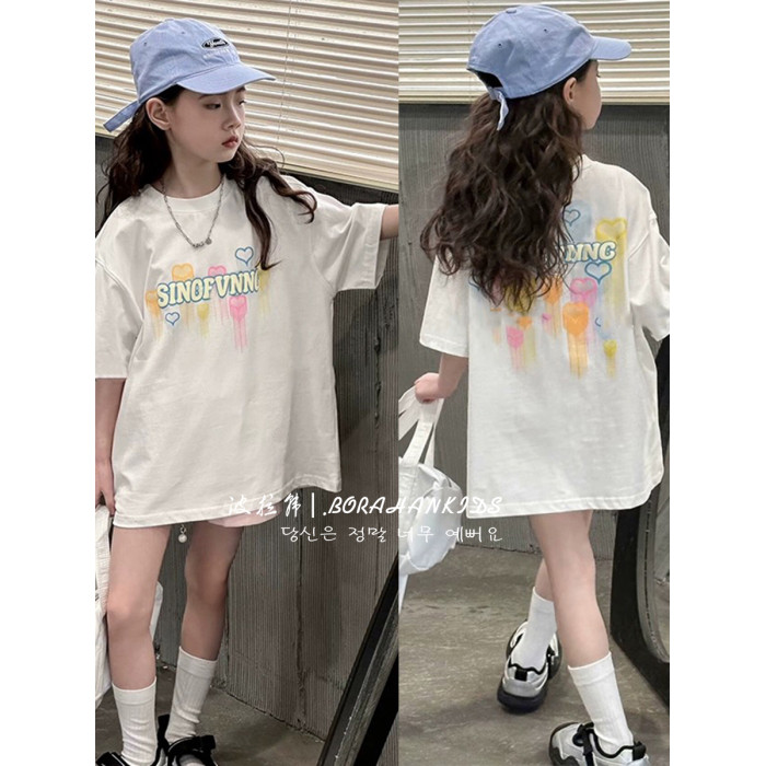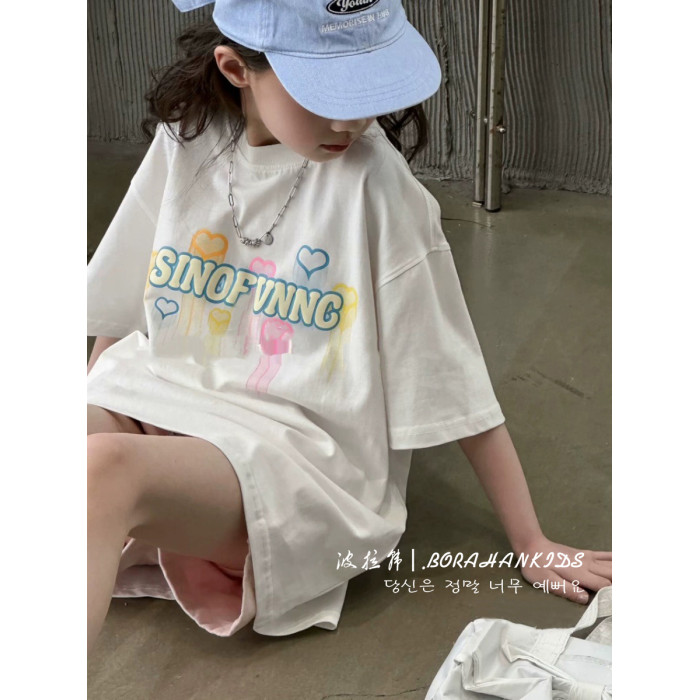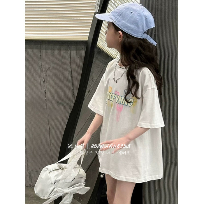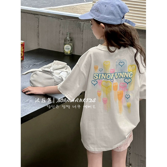 波拉韓童裝女童短袖甜美T恤2025夏裝兒童休閒打底上衣小女孩體恤