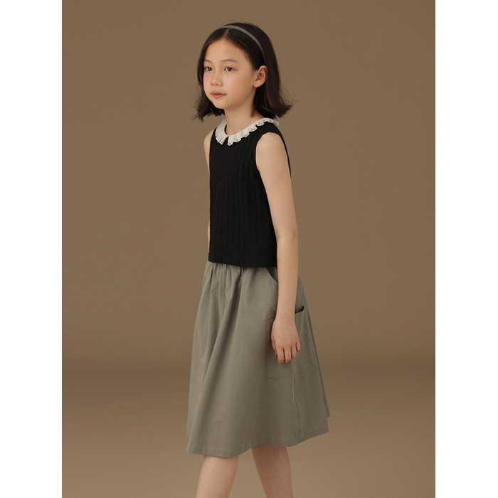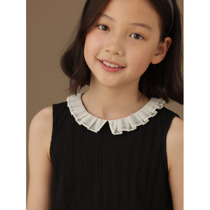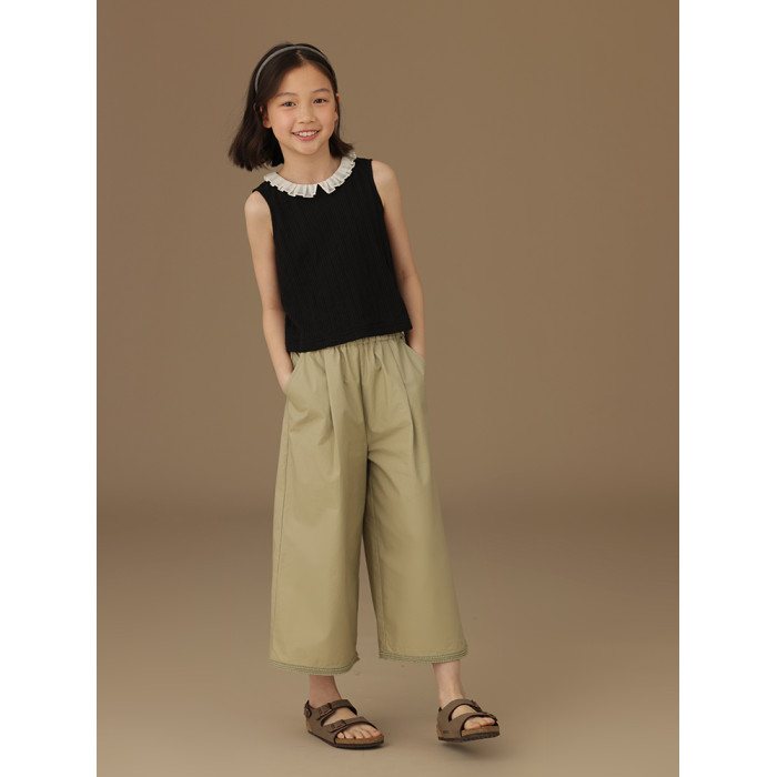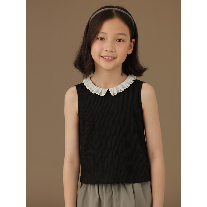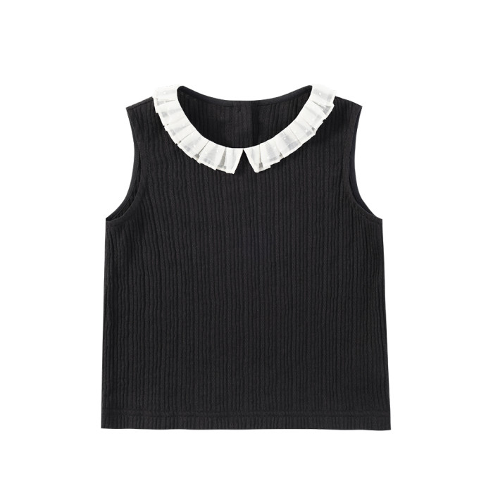 哈齒童裝黑色花邊領中大女童t恤洋氣兒童針織背心打底外穿夏季新