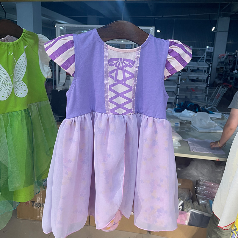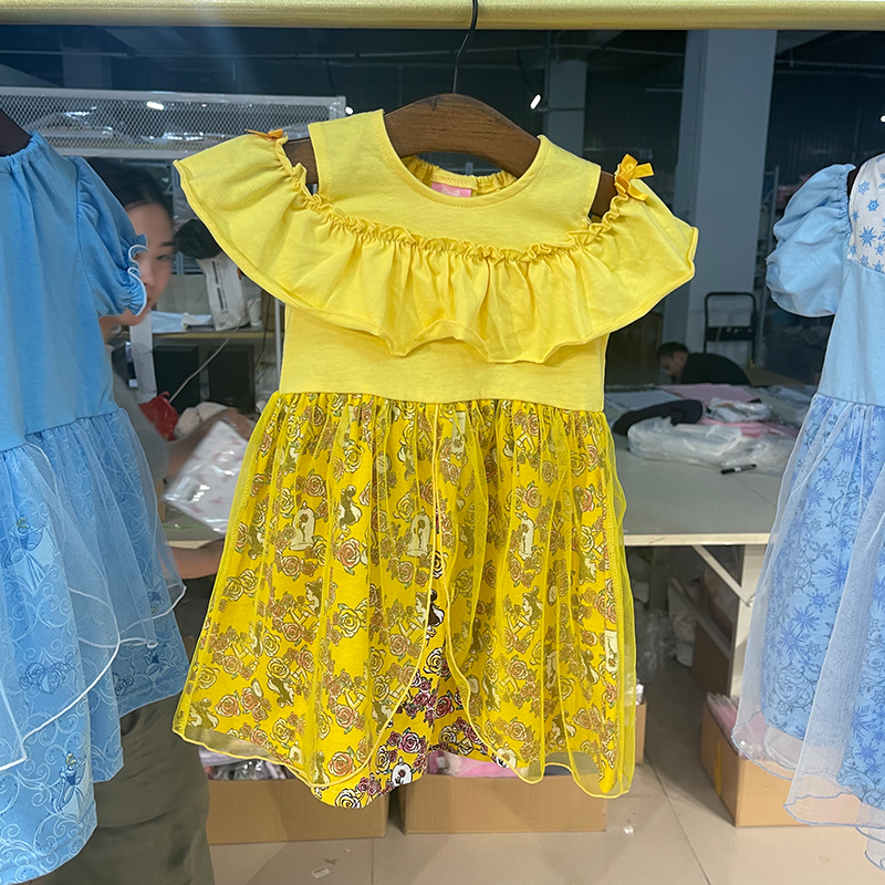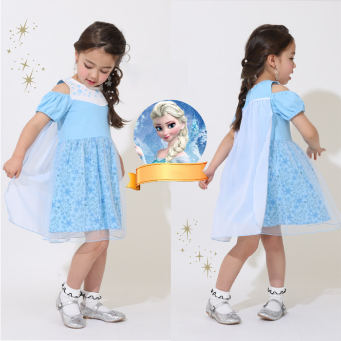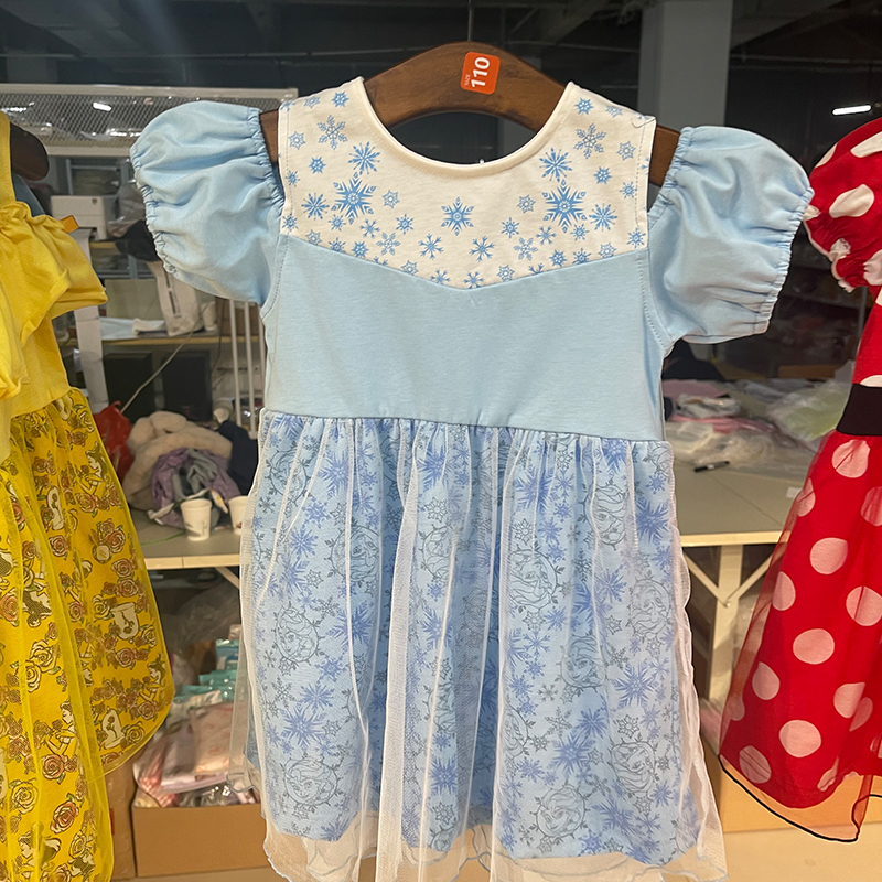 日單 女童冰雪公主棉質薄絨長袖連衣裙 兒童公主百搭公主紗裙