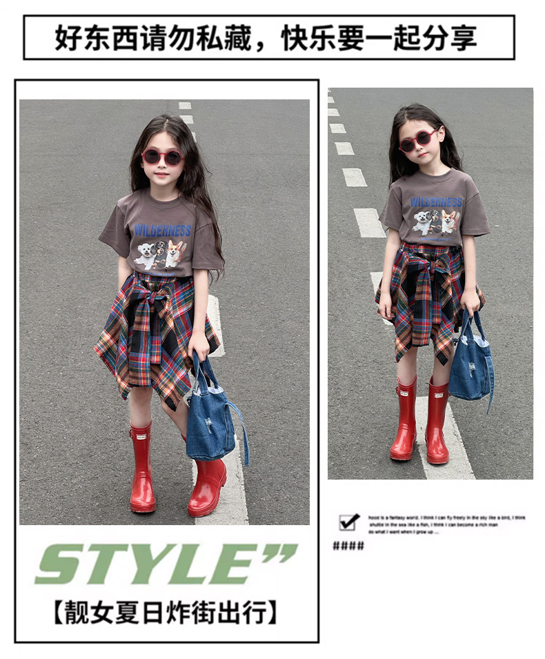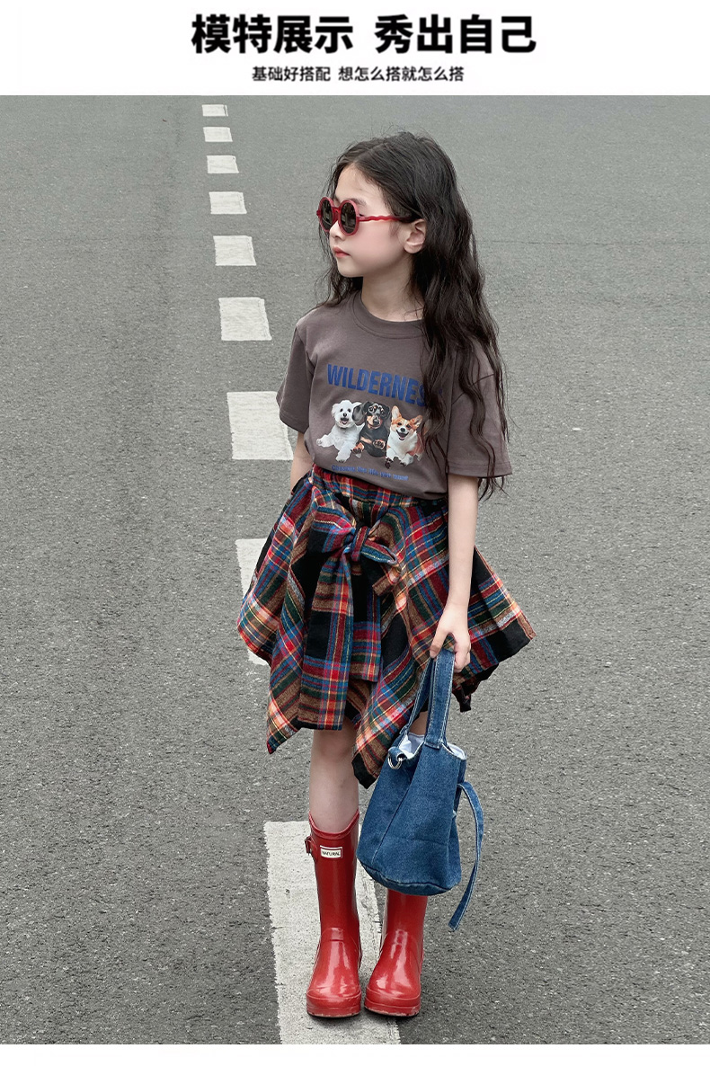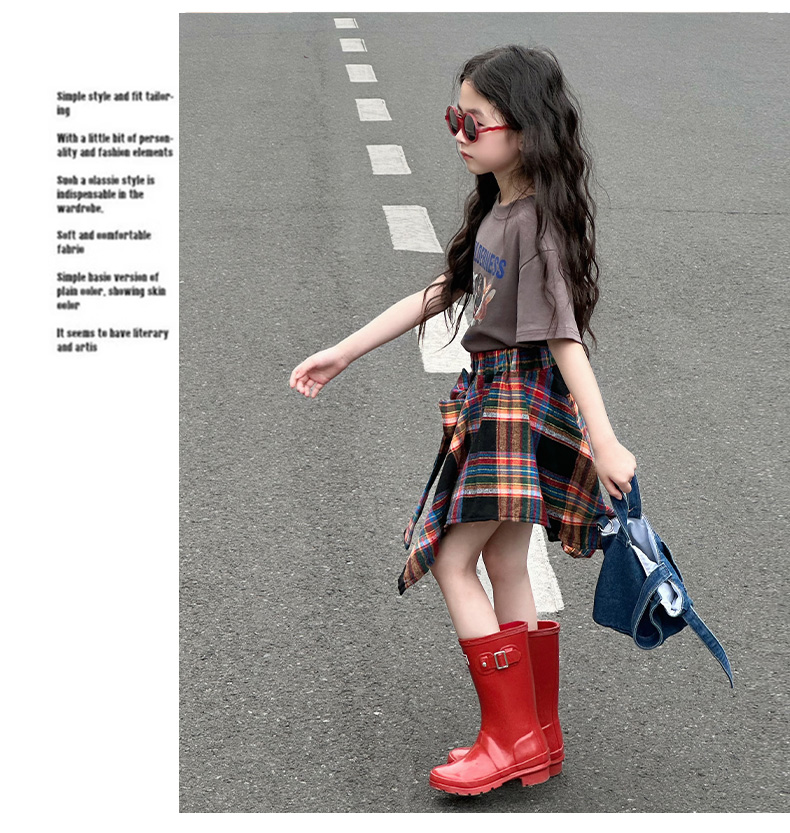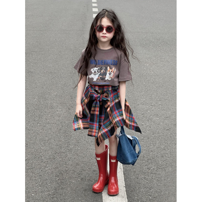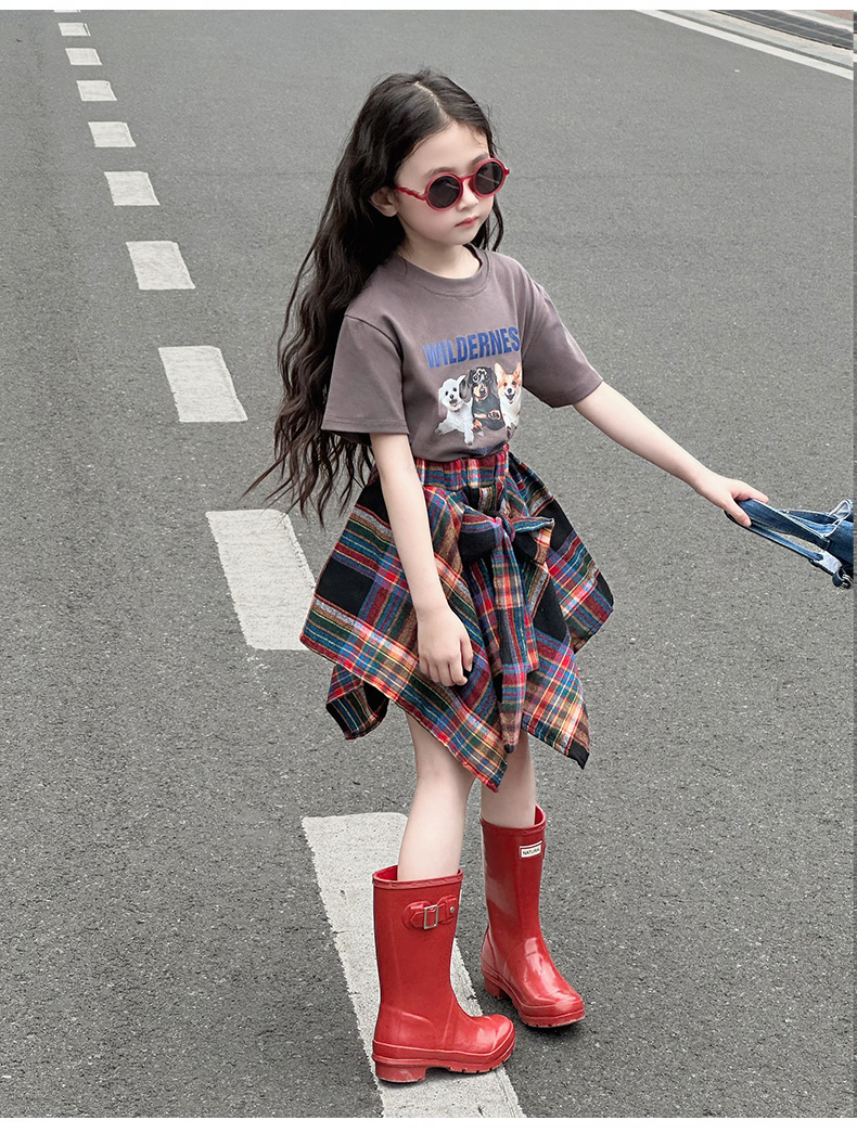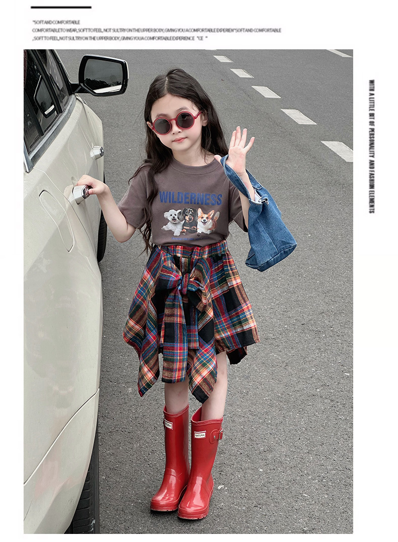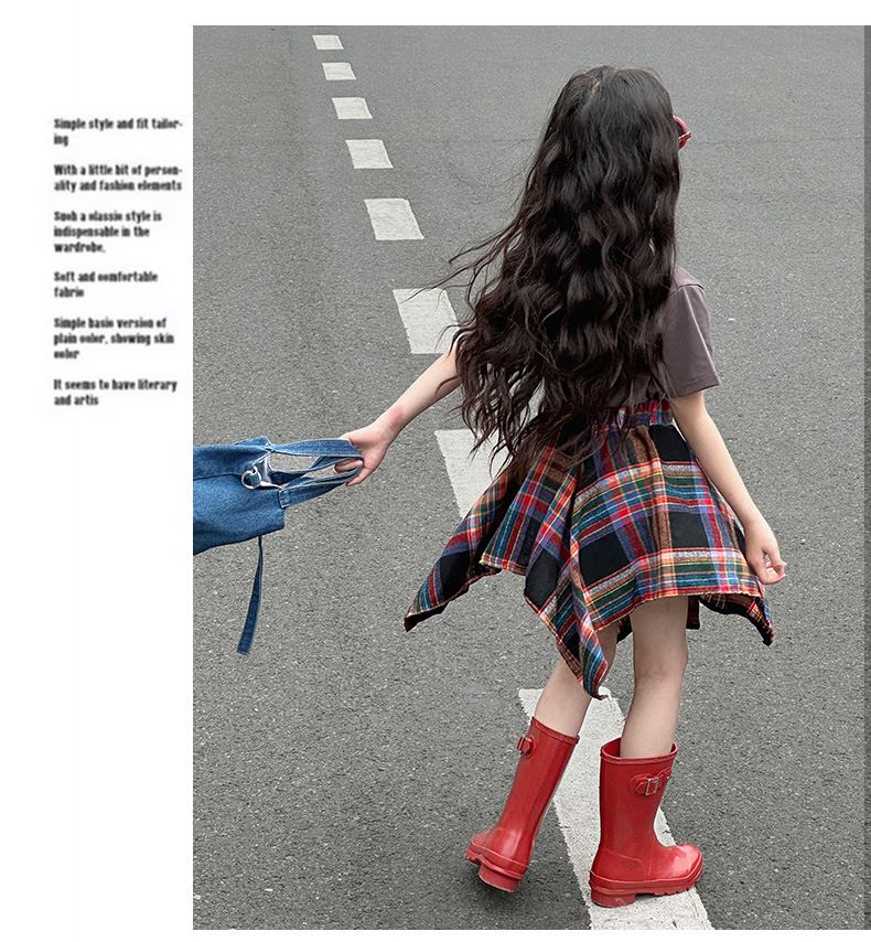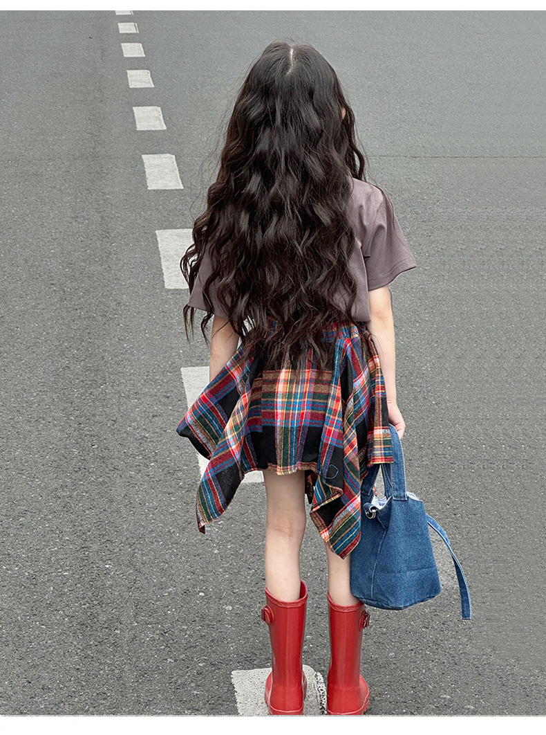 法國女童半身裙夏季2025新款女孩薄款裙子大童洋氣不規則裙格子裙