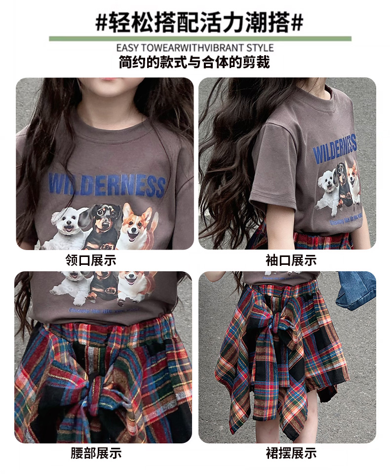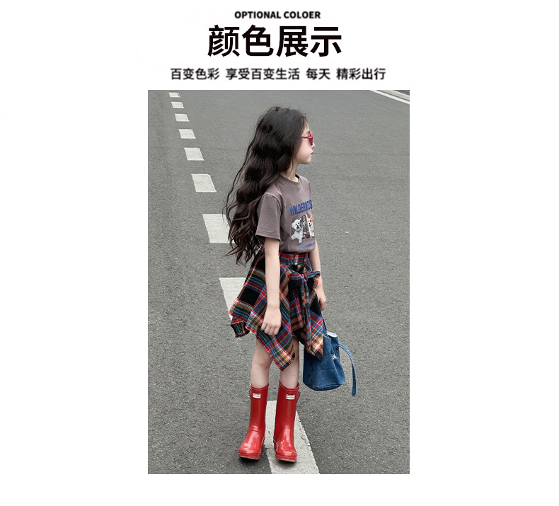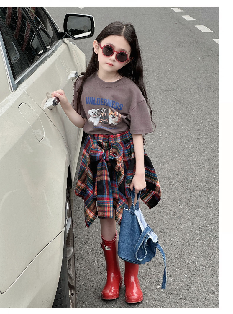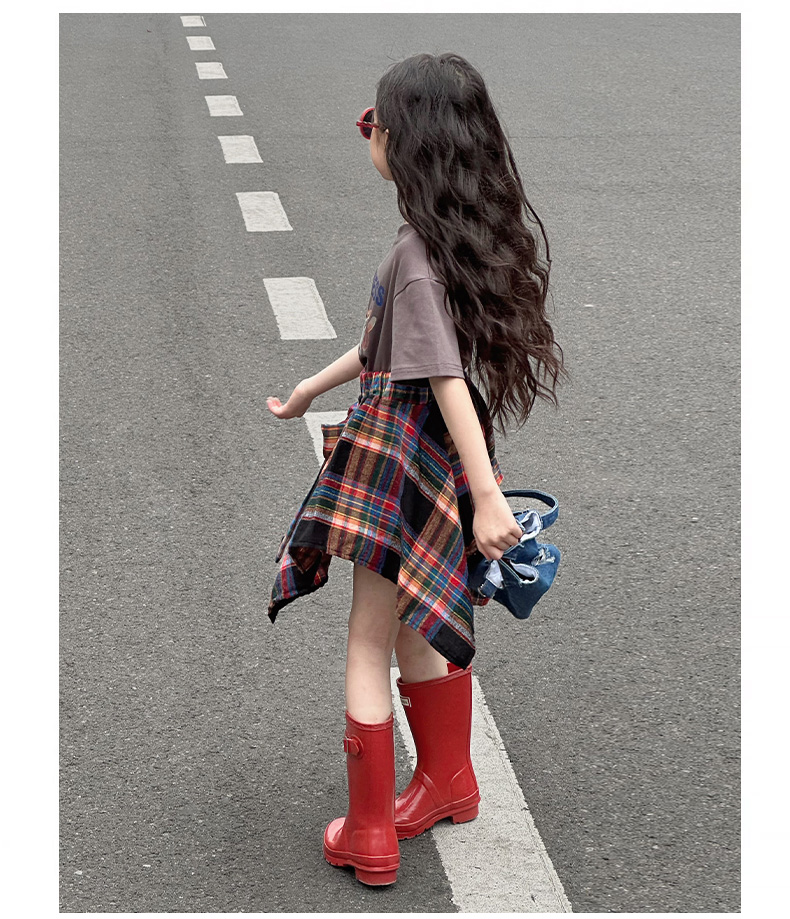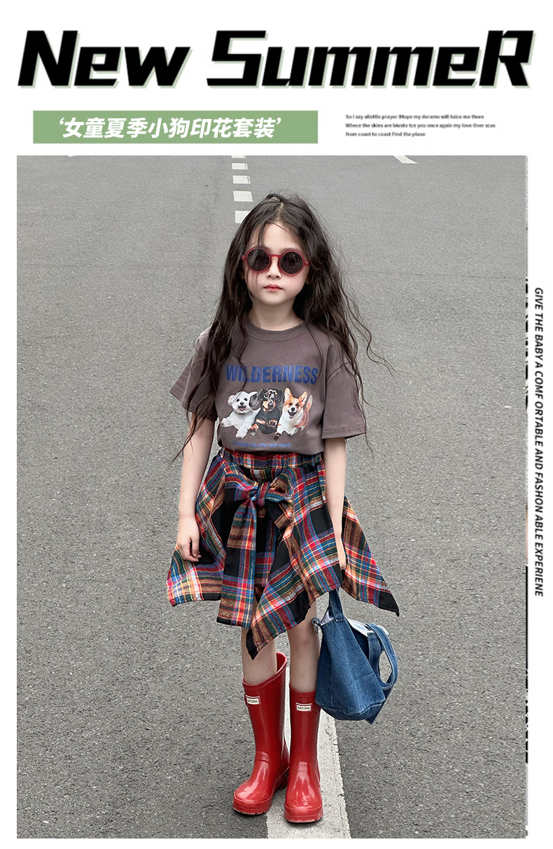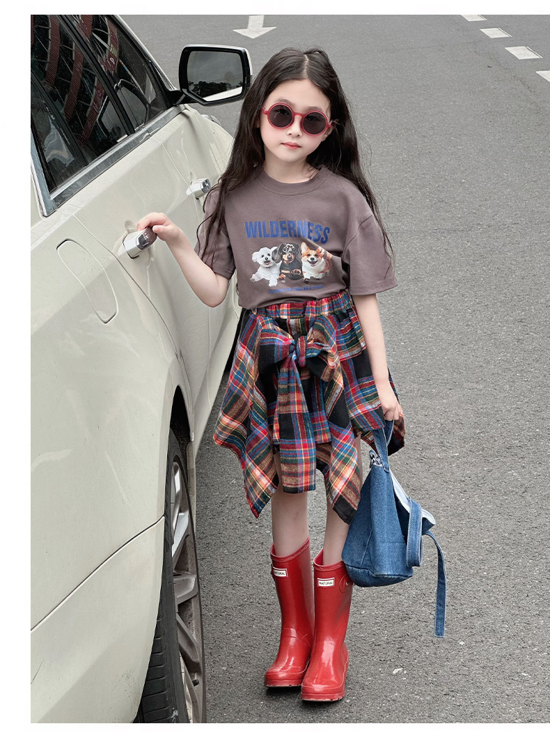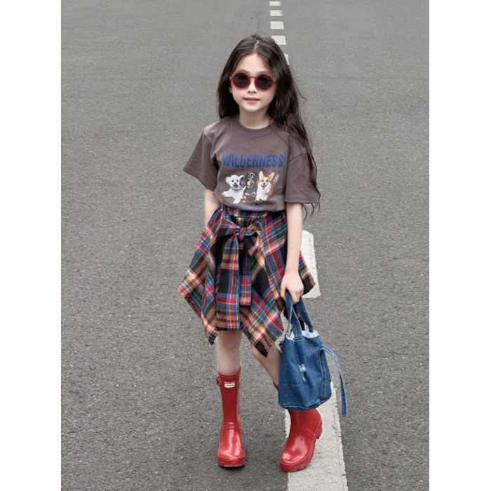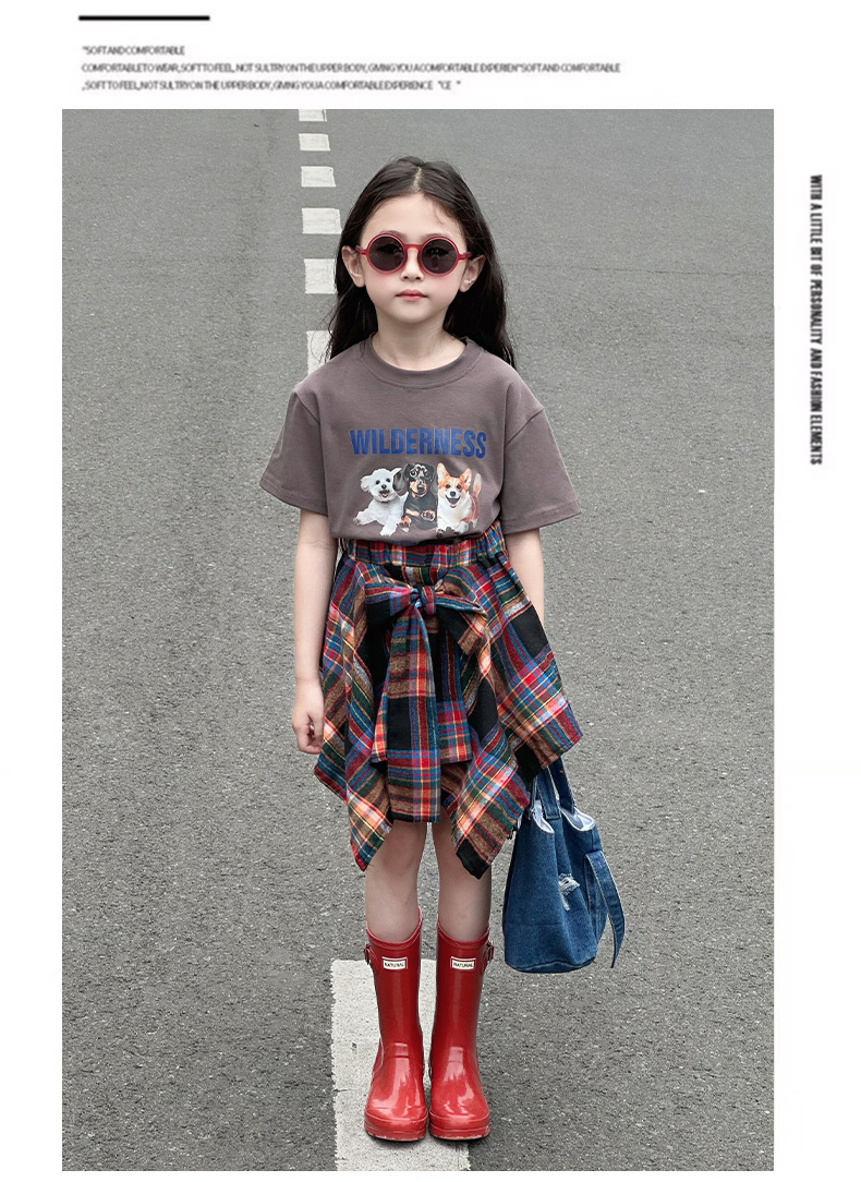 法國女童半身裙夏季2025新款女孩薄款裙子大童洋氣不規則裙格子裙