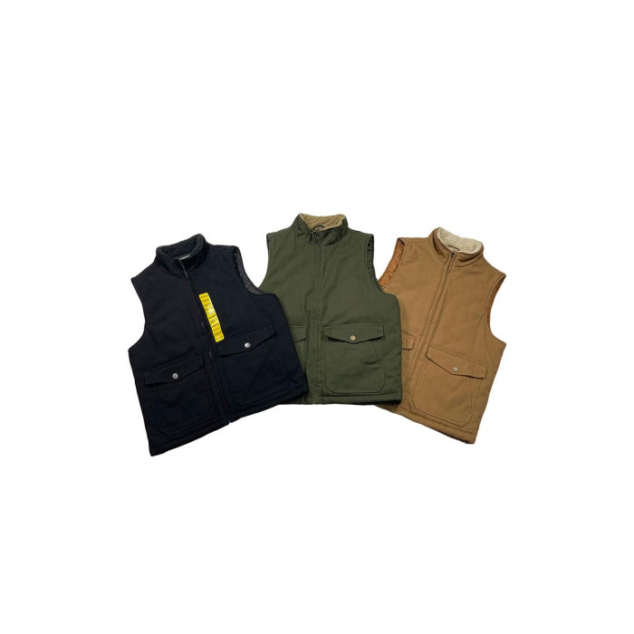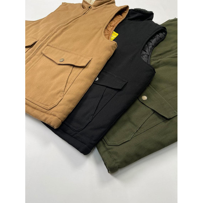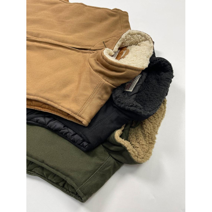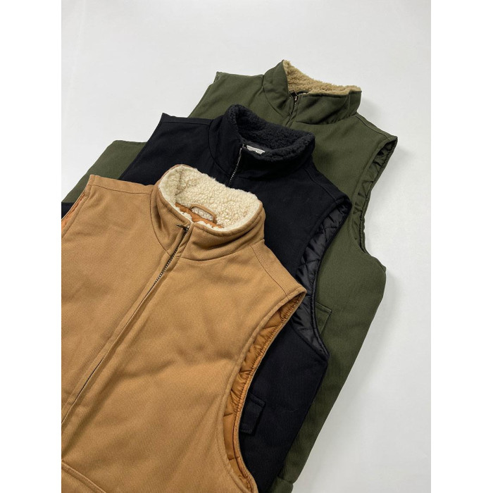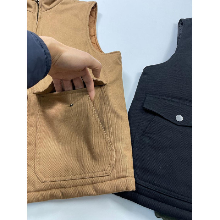 美式經典 復古立領衍棉多袋哢嘰工裝斜紋帆布秋冬保暖夾棉馬甲男