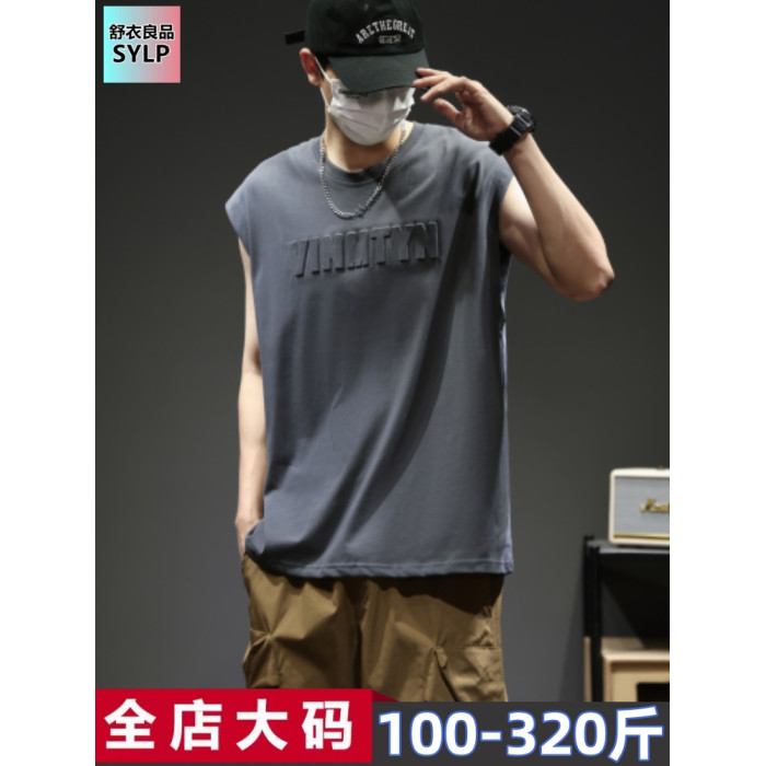 大碼320斤美式背心男士夏季潮牌高街跨欄無袖t恤跑步健身運動坎肩