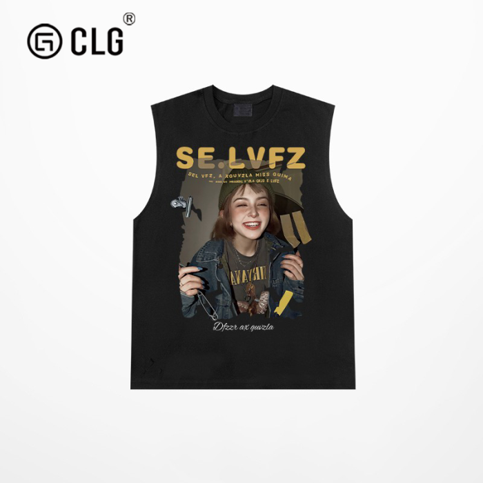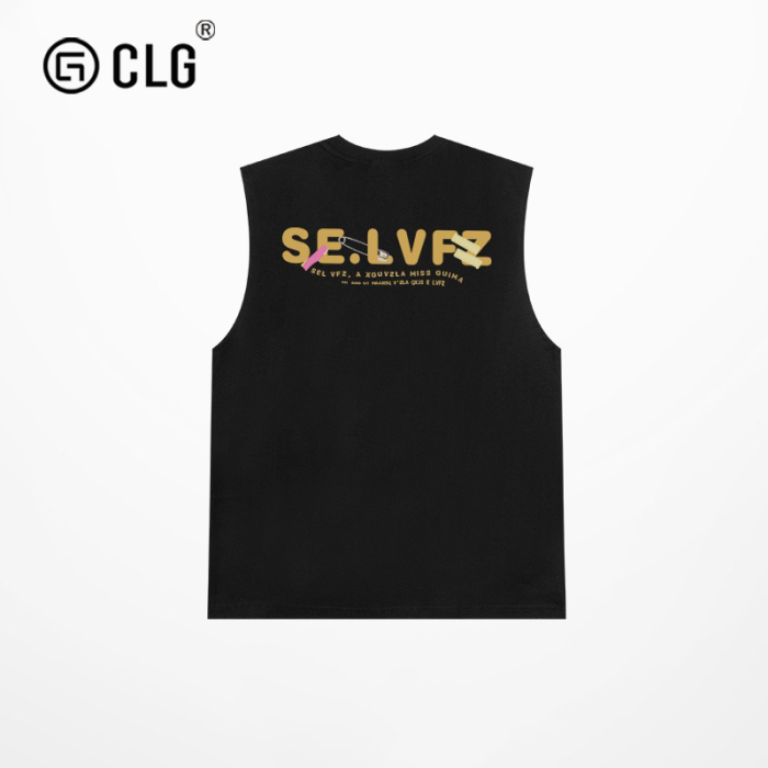香港CLG潮牌字母印花背心美式夏季潮流嘻哈重磅無袖T恤坎肩打底衫