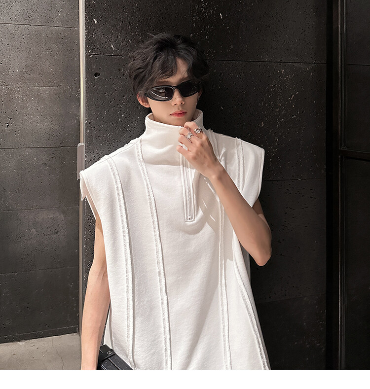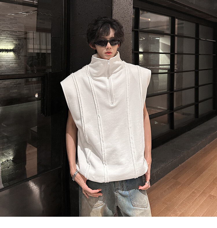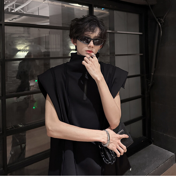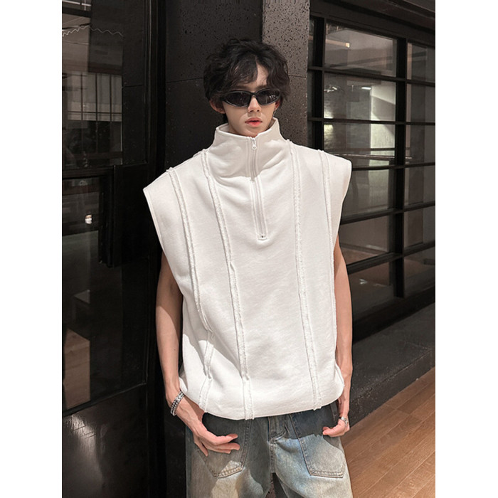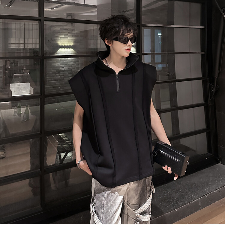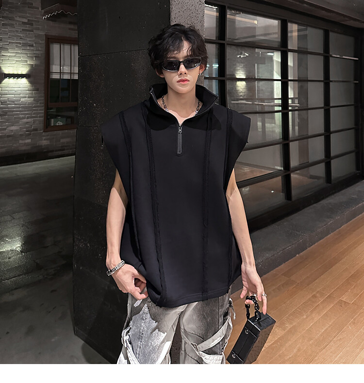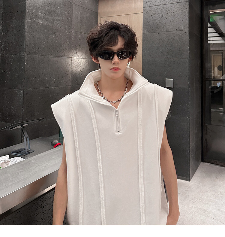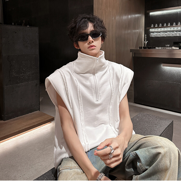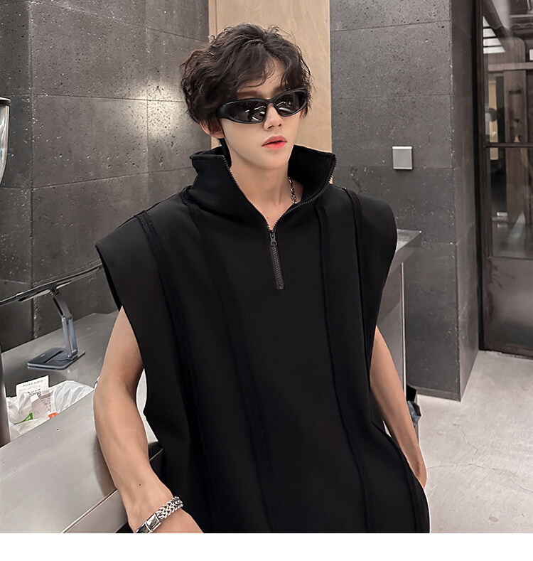 半拉鍊墊肩立領無袖t恤男夏季潮牌cleanfit痞帥寬松運動坎肩背心
