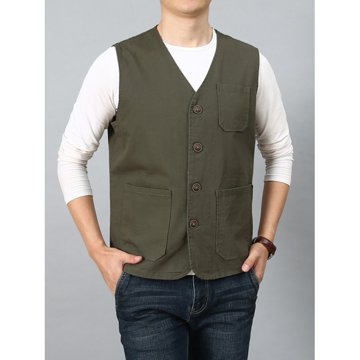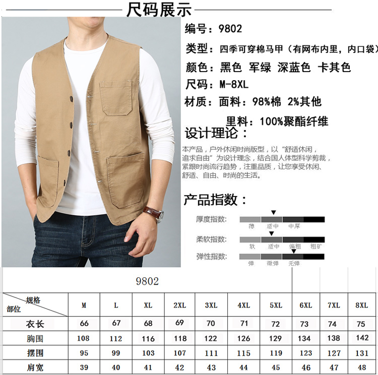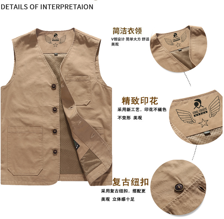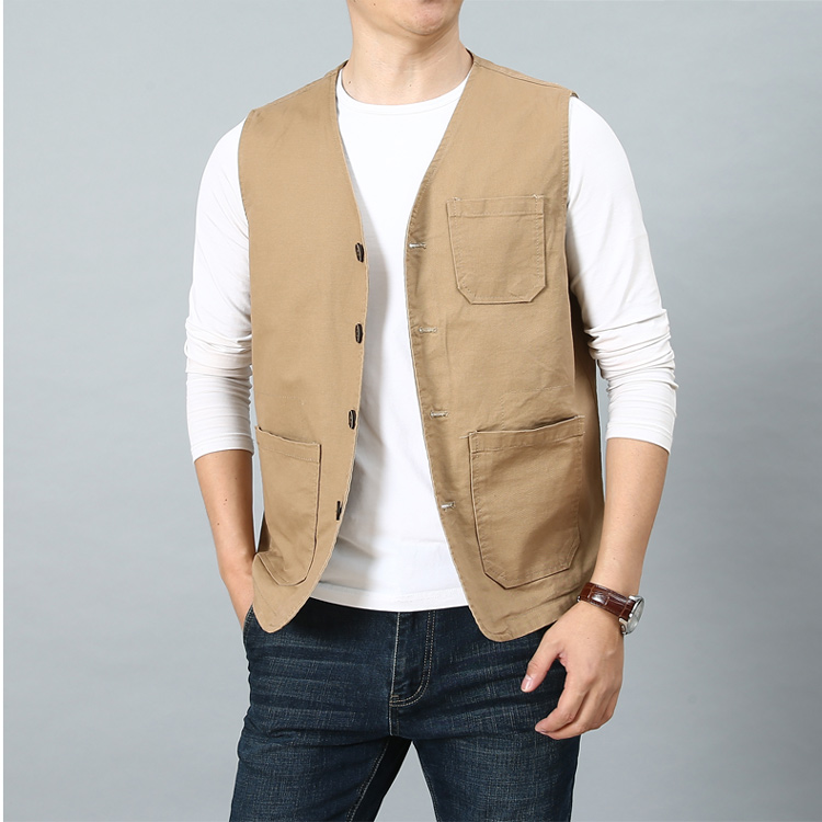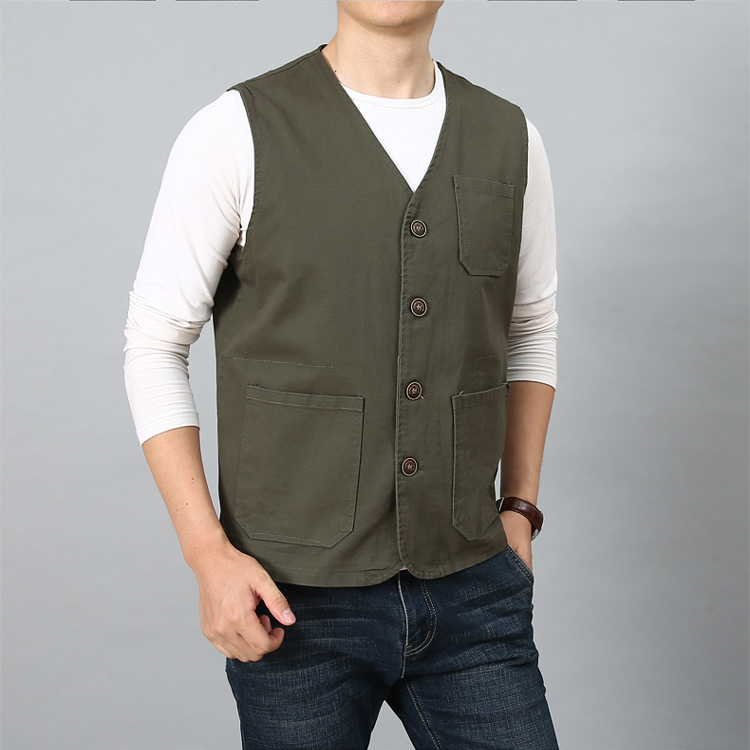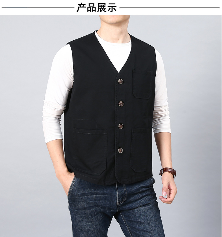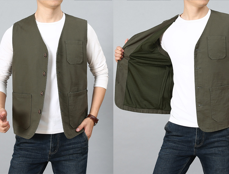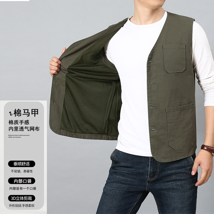馬甲男中老年春秋款純棉加大碼坎肩老年人系釦寬松爸爸裝馬夾上衣