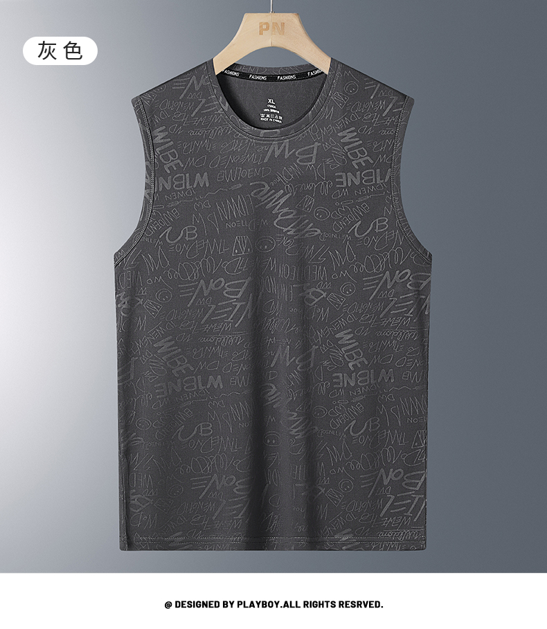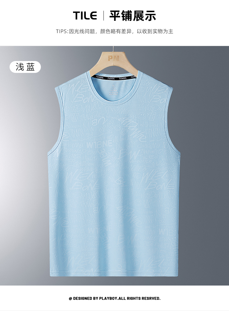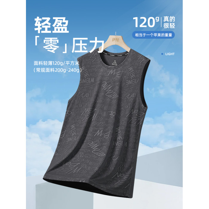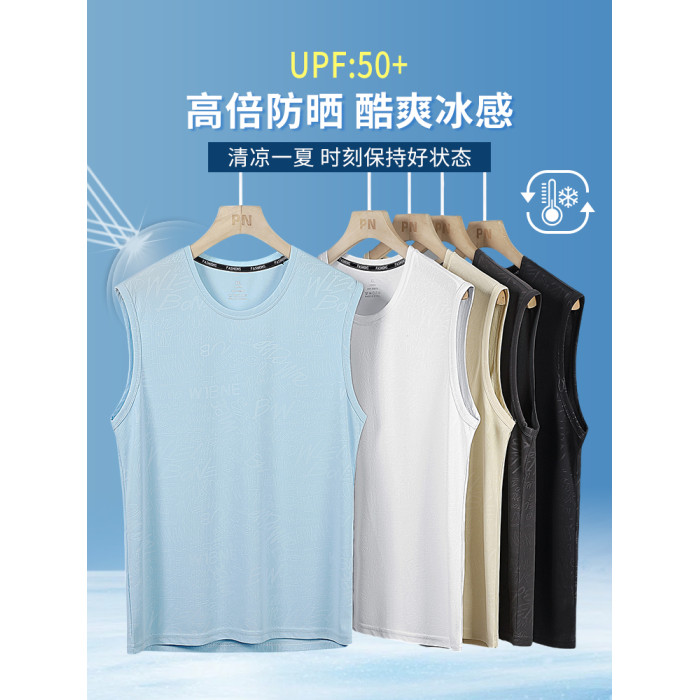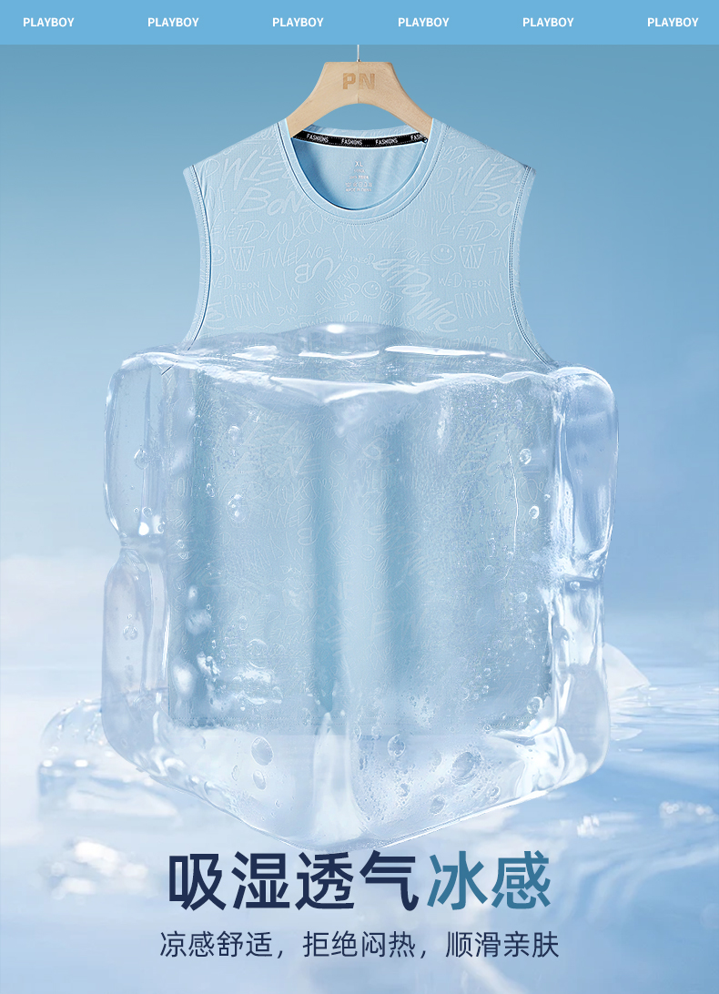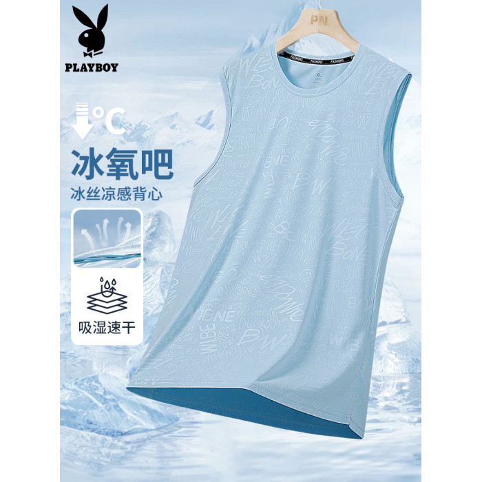花花公子冰絲涼感背心男夏季薄款速乾運動男士無袖t恤衫2025新款