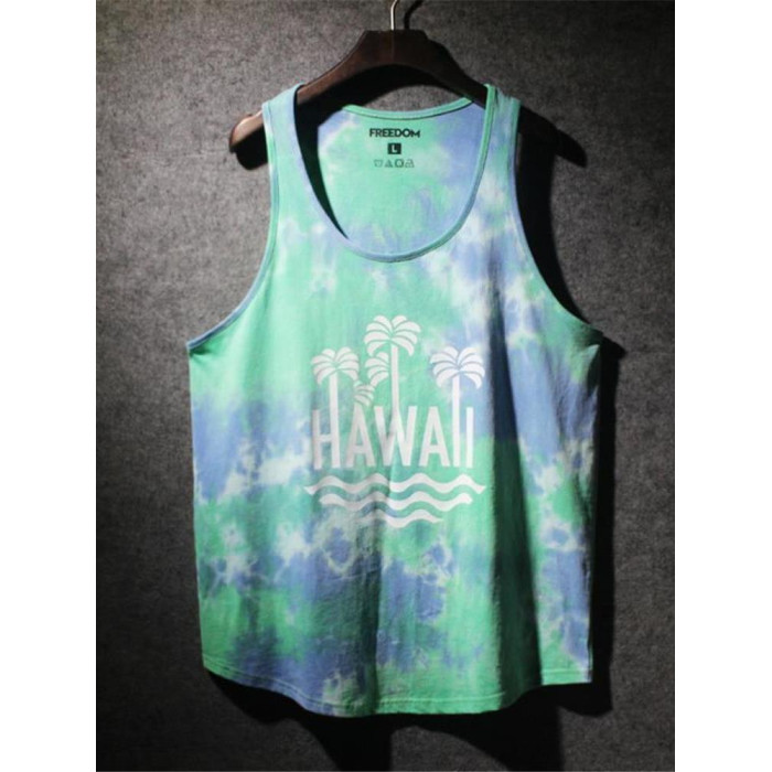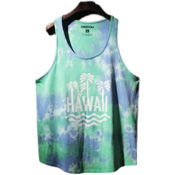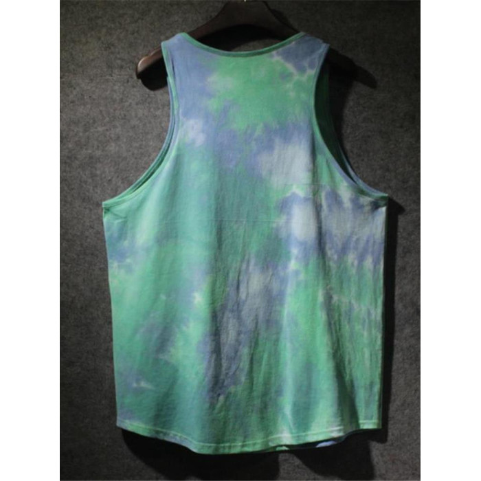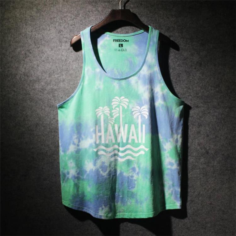 特大碼300斤紥染背心男健身運動夏季寬松美式復古印花無袖t恤坎肩