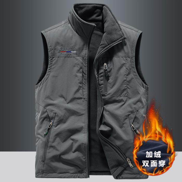 雙面穿中老年多口袋馬甲男爸爸裝運動薄款坎肩春夏秋寬松馬夾外套