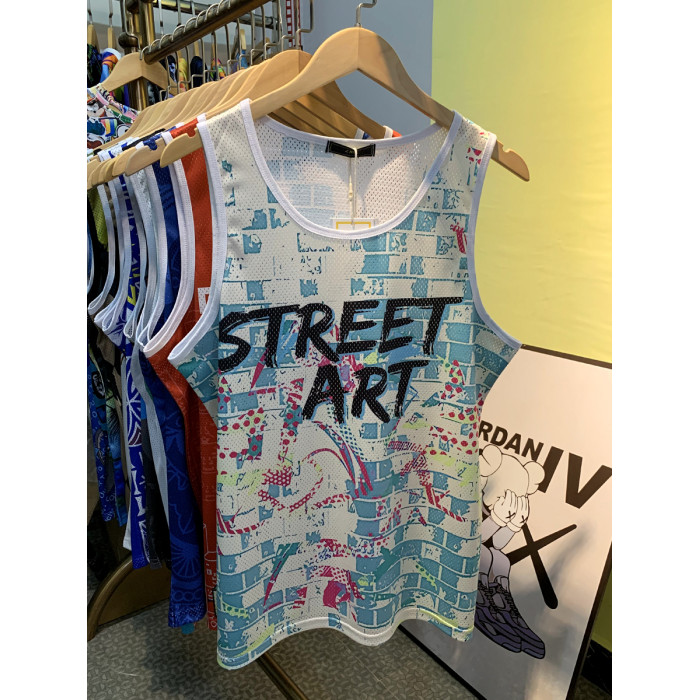 美式運動背心男街潮風籃球訓練服運動健身球衣背心速乾復古風球衣
