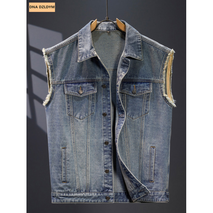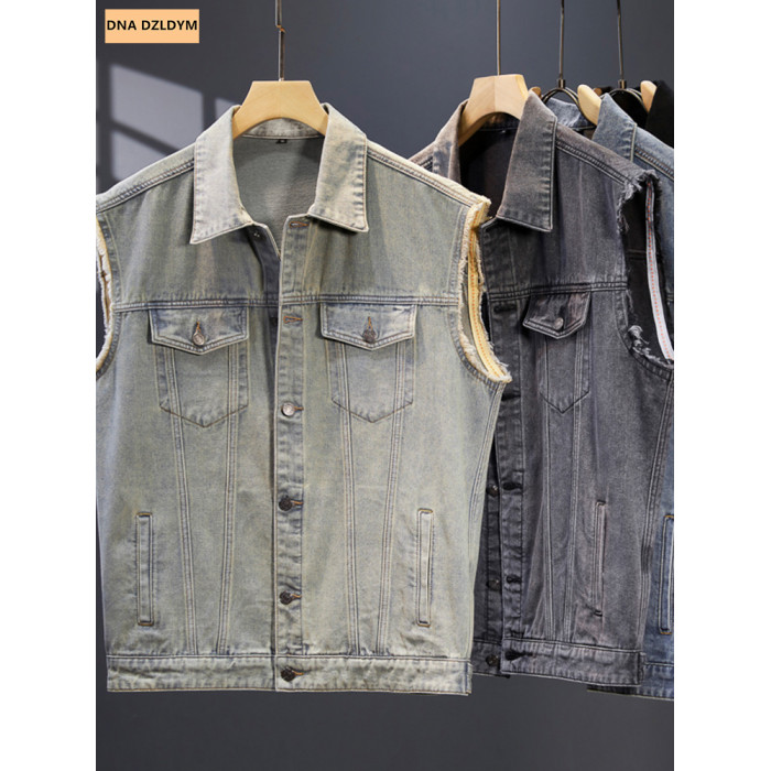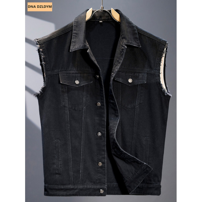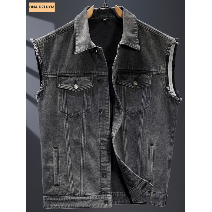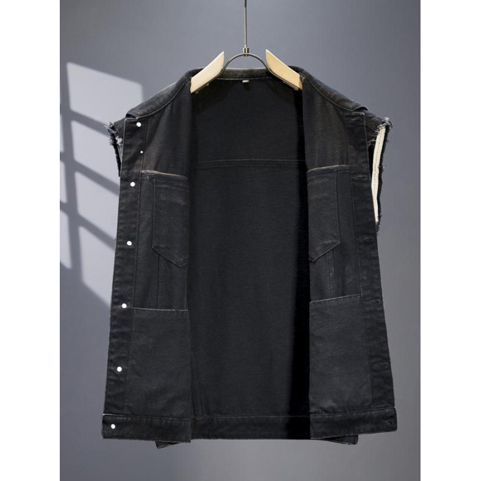 休閒牛仔馬甲男青年潮流美式復古戶外寬松黑色男馬夾機車坎肩褂子