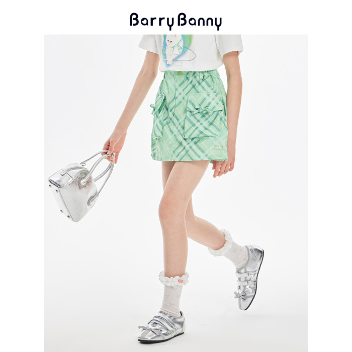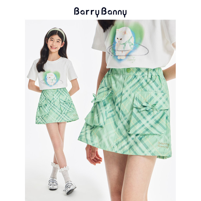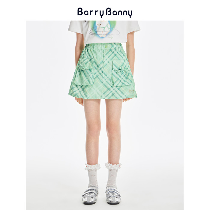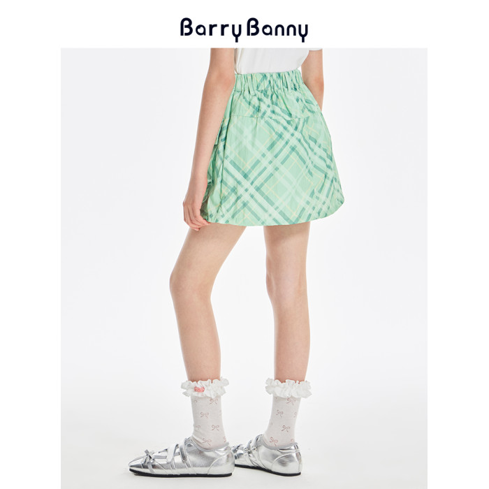 BarryBanny女童格紋半身裙2025夏季新款兒童短裙女孩百搭A字裙褲