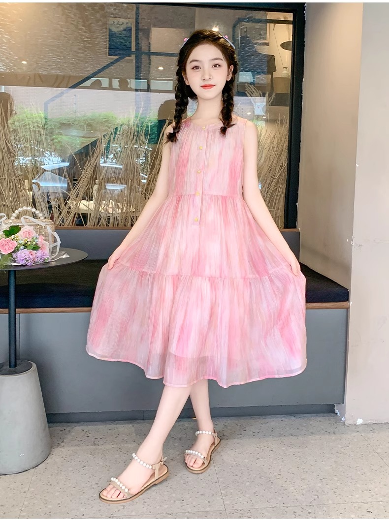 英國Next Kiss女童連衣裙夏季2025新款兒童雪紡公主裙大童背心裙