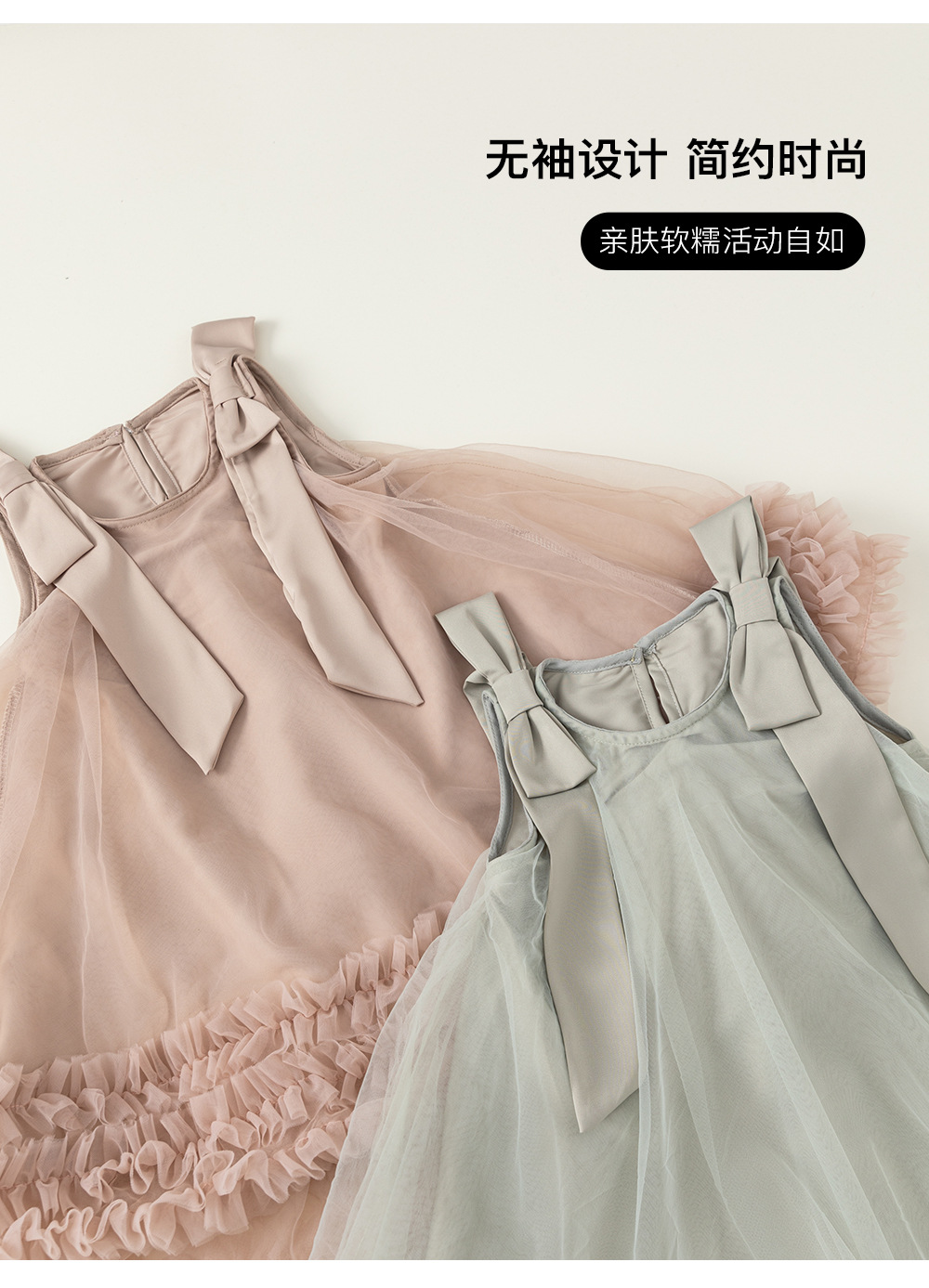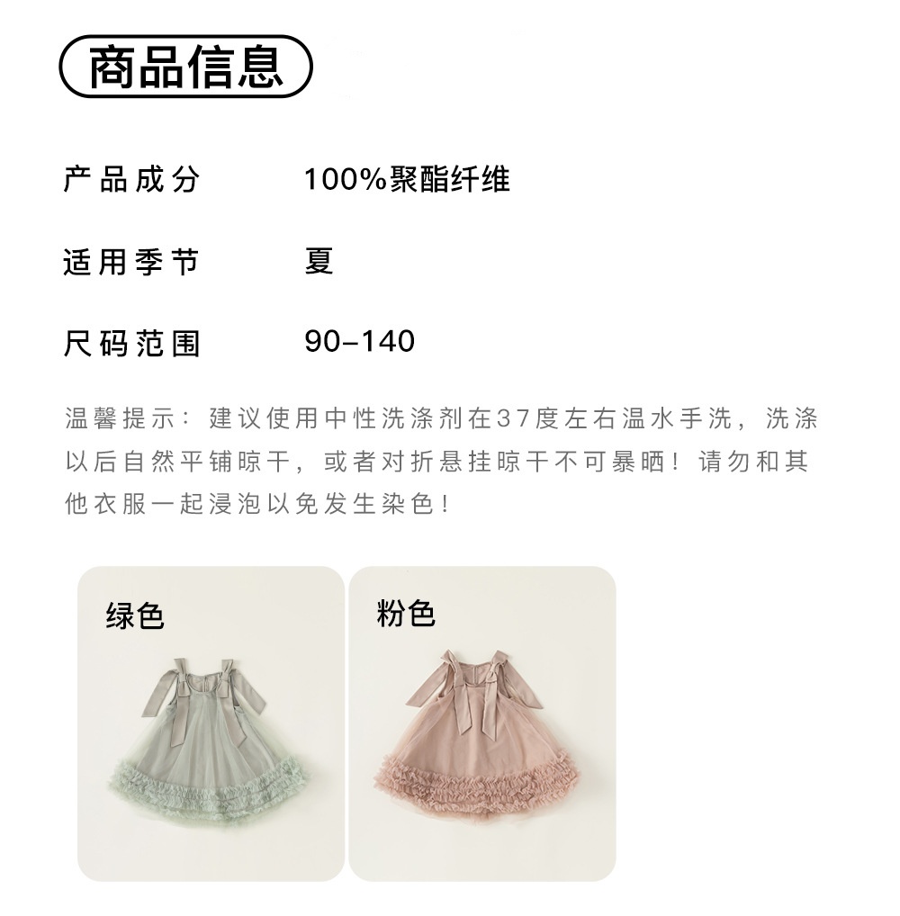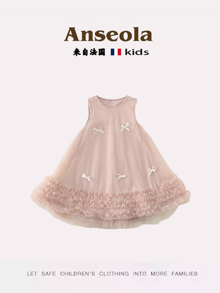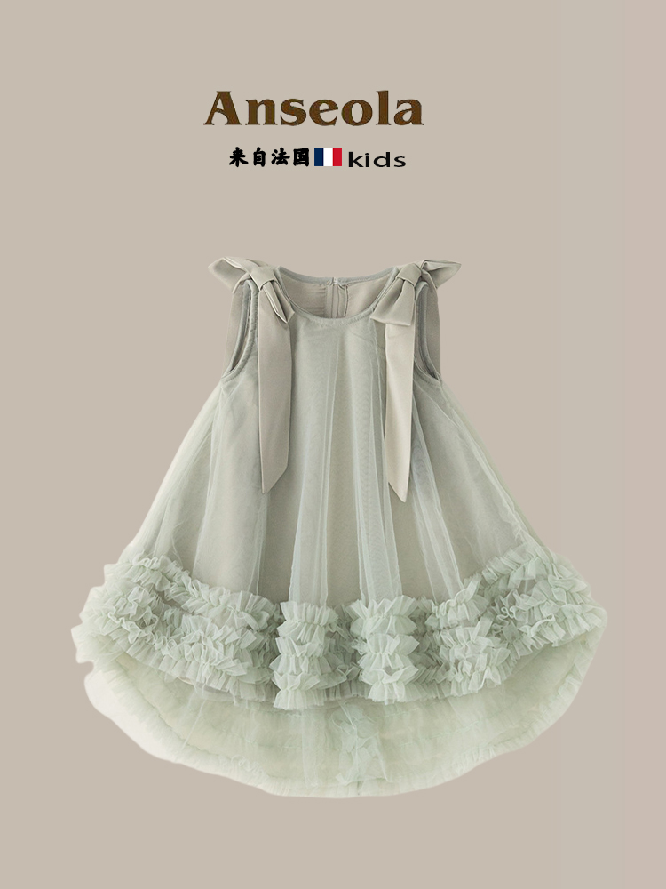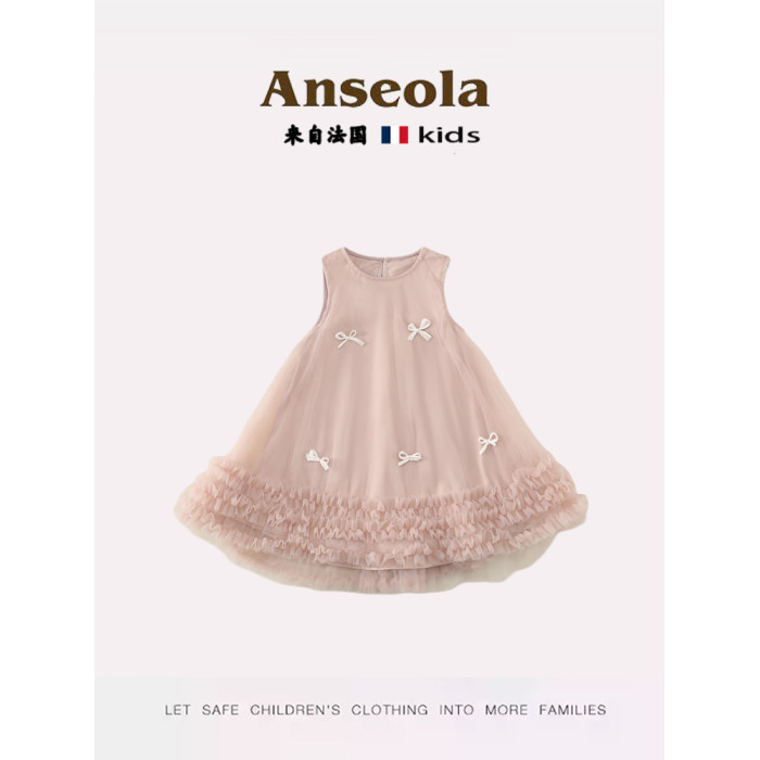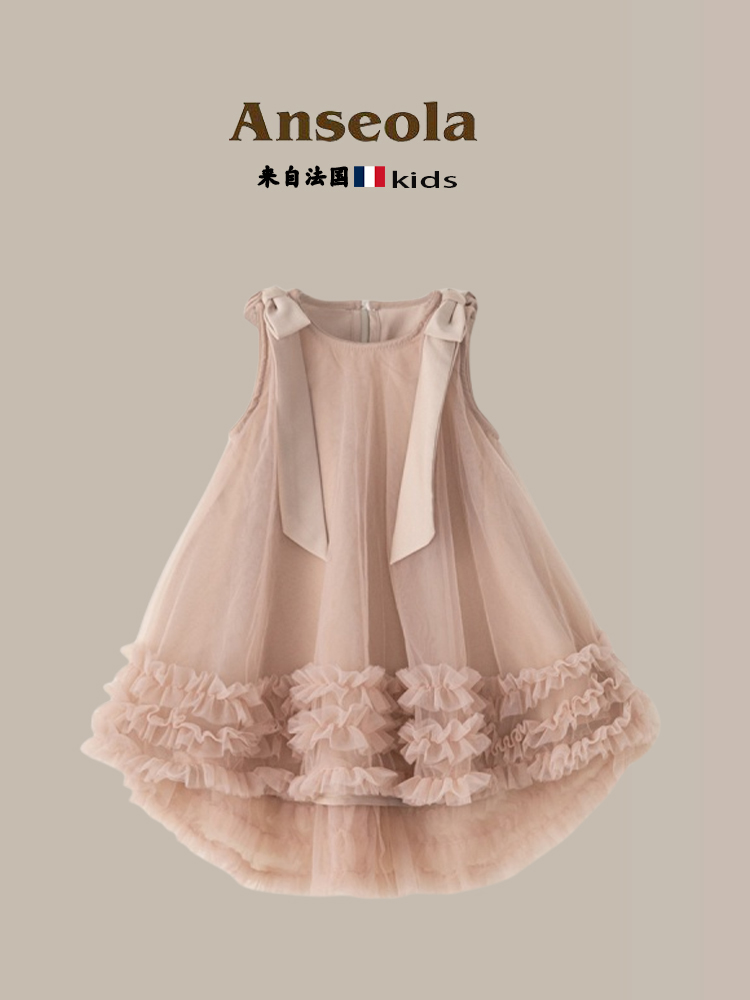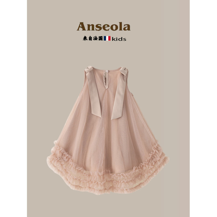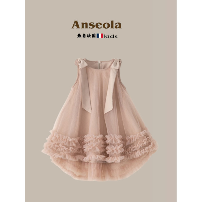 法國Anseola童裝女童蝴蝶結吊帶網紗公主裙子女孩禮服連衣裙夏季