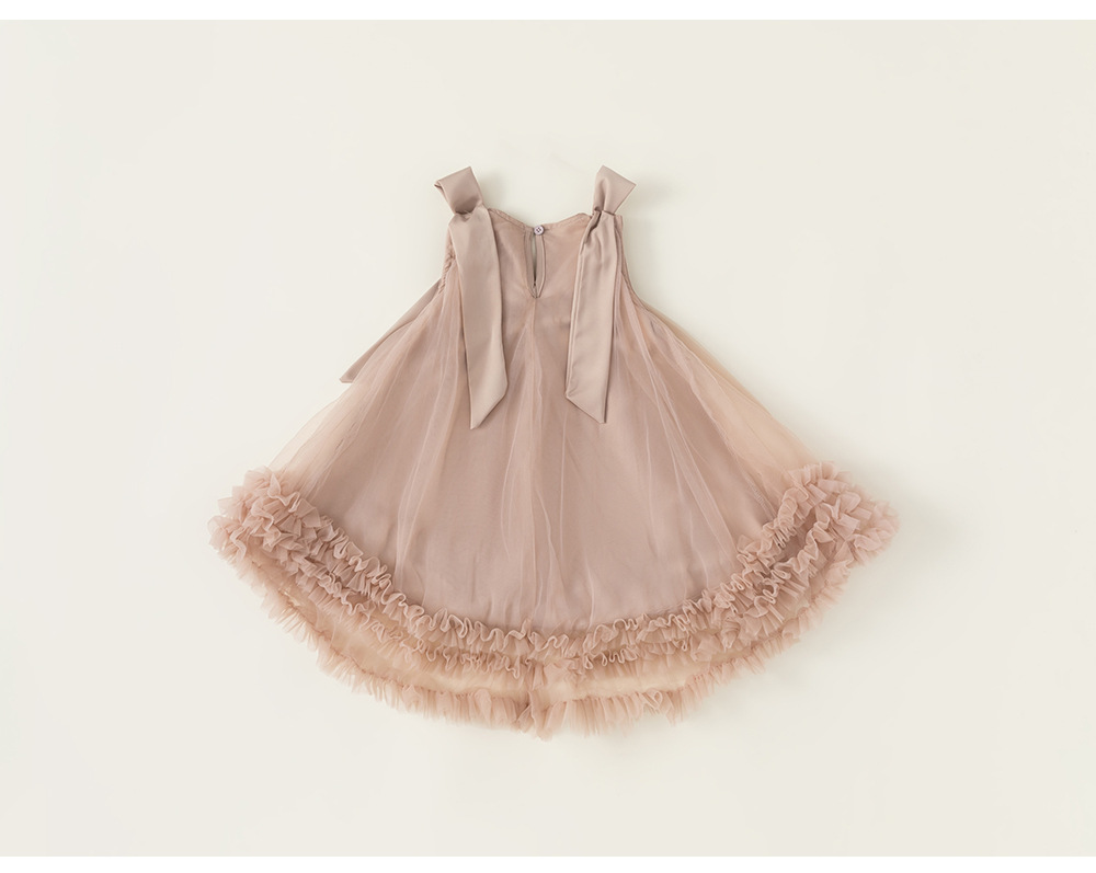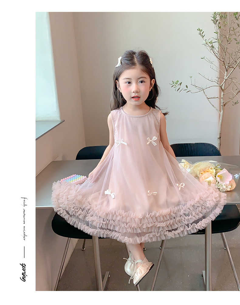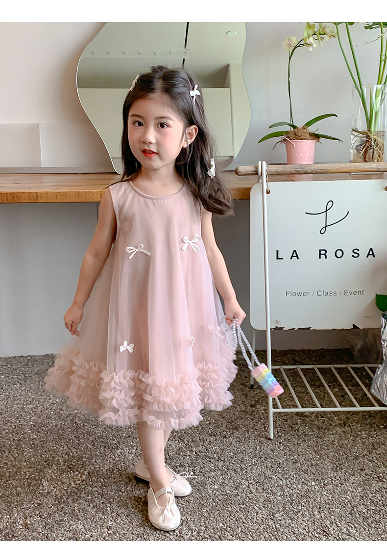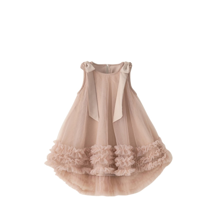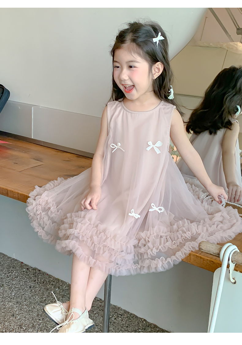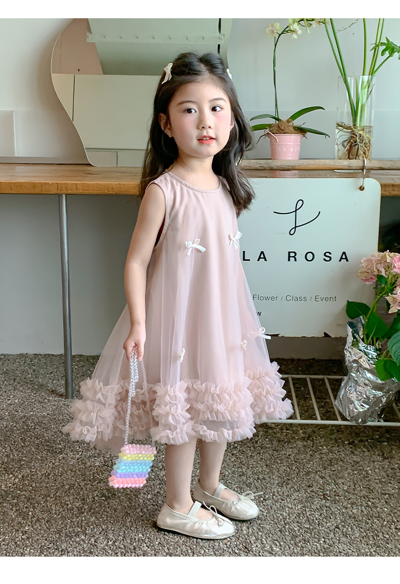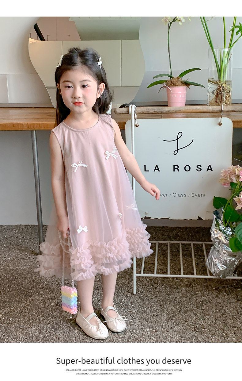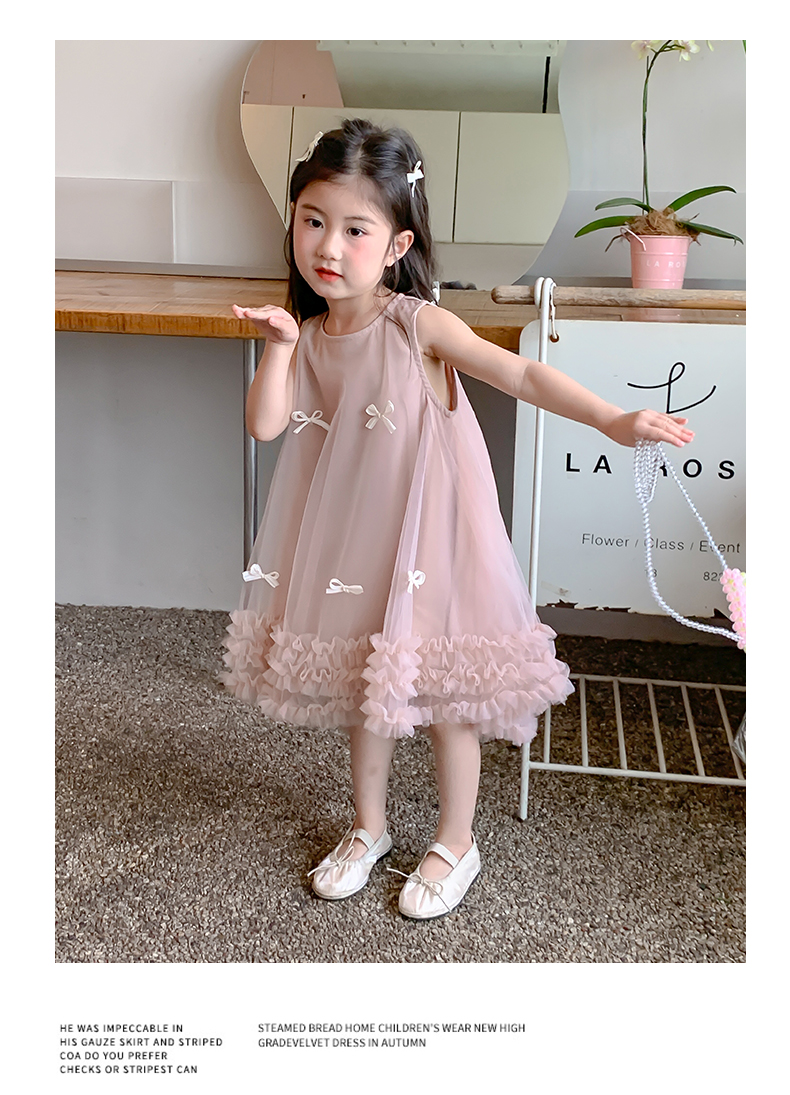 法國Anseola童裝女童蝴蝶結吊帶網紗公主裙子女孩禮服連衣裙夏季