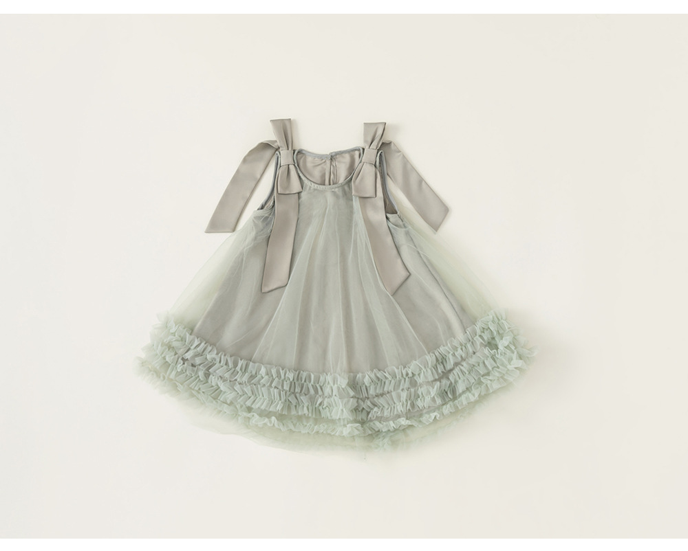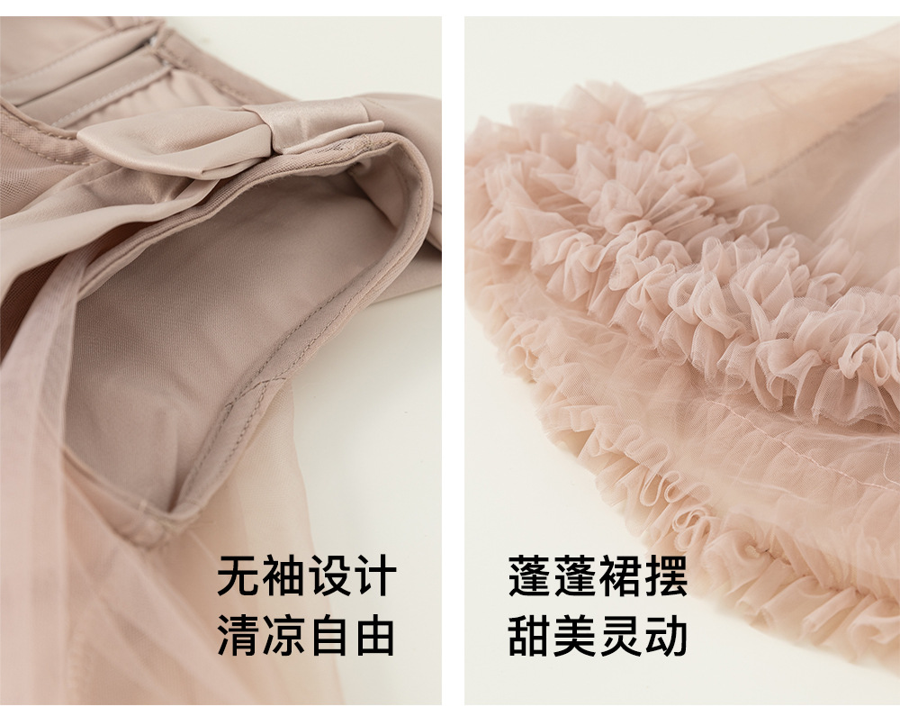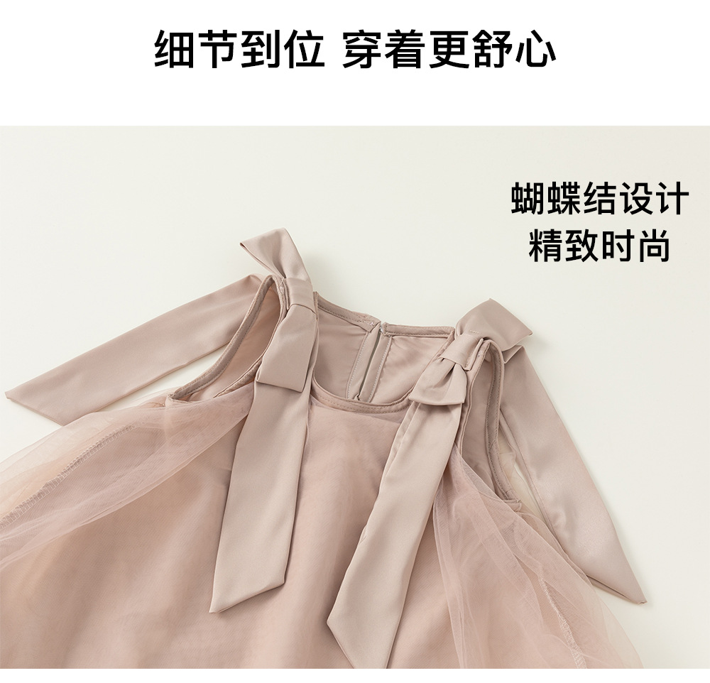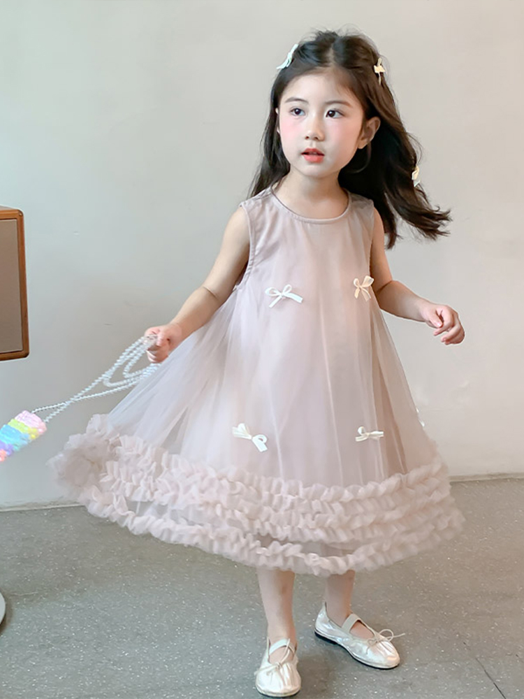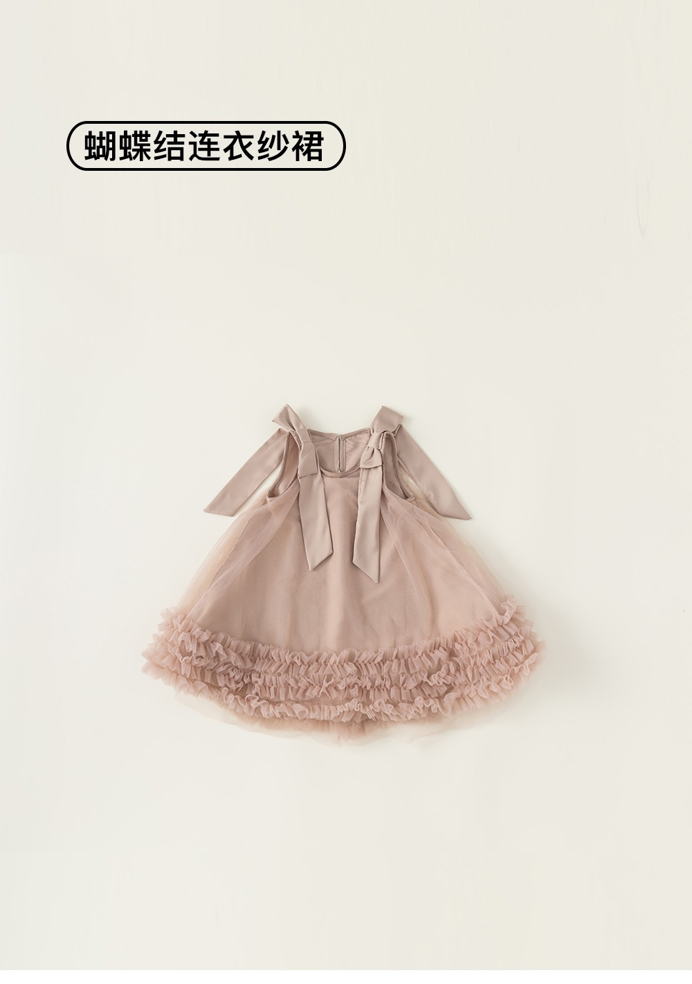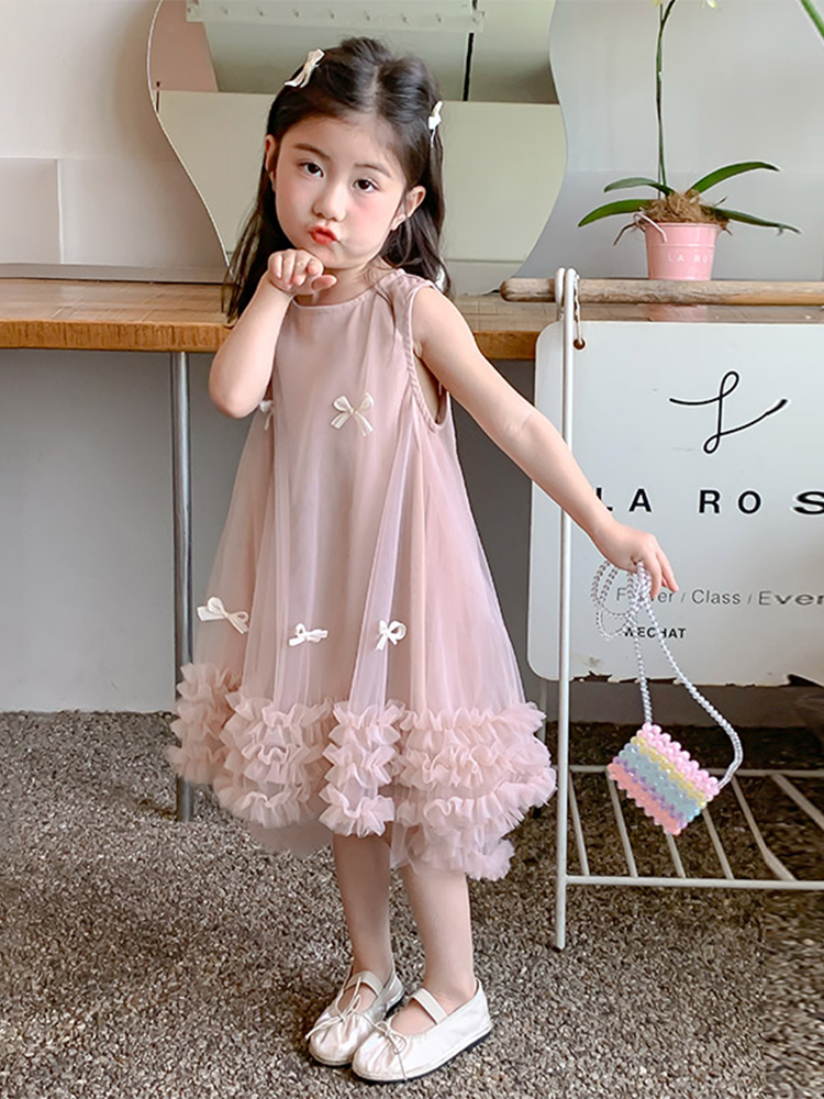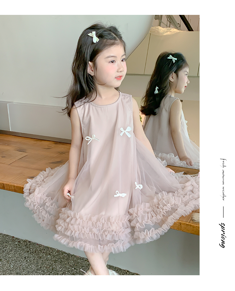 法國Anseola童裝女童蝴蝶結吊帶網紗公主裙子女孩禮服連衣裙夏季
