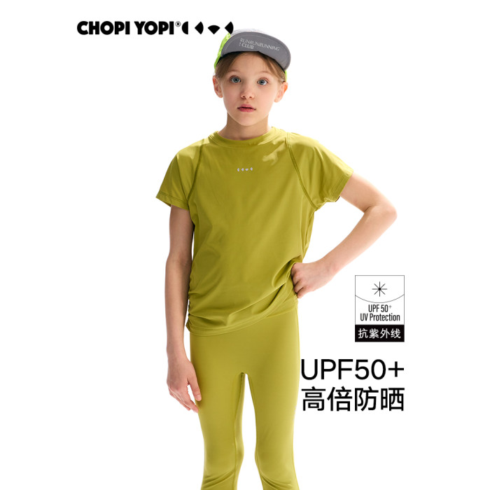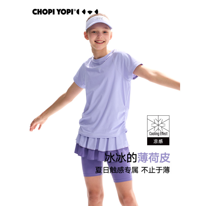 chopiyopi【薄荷皮】女童挖肩袖防曬短袖T恤夏季新款涼感速乾衣