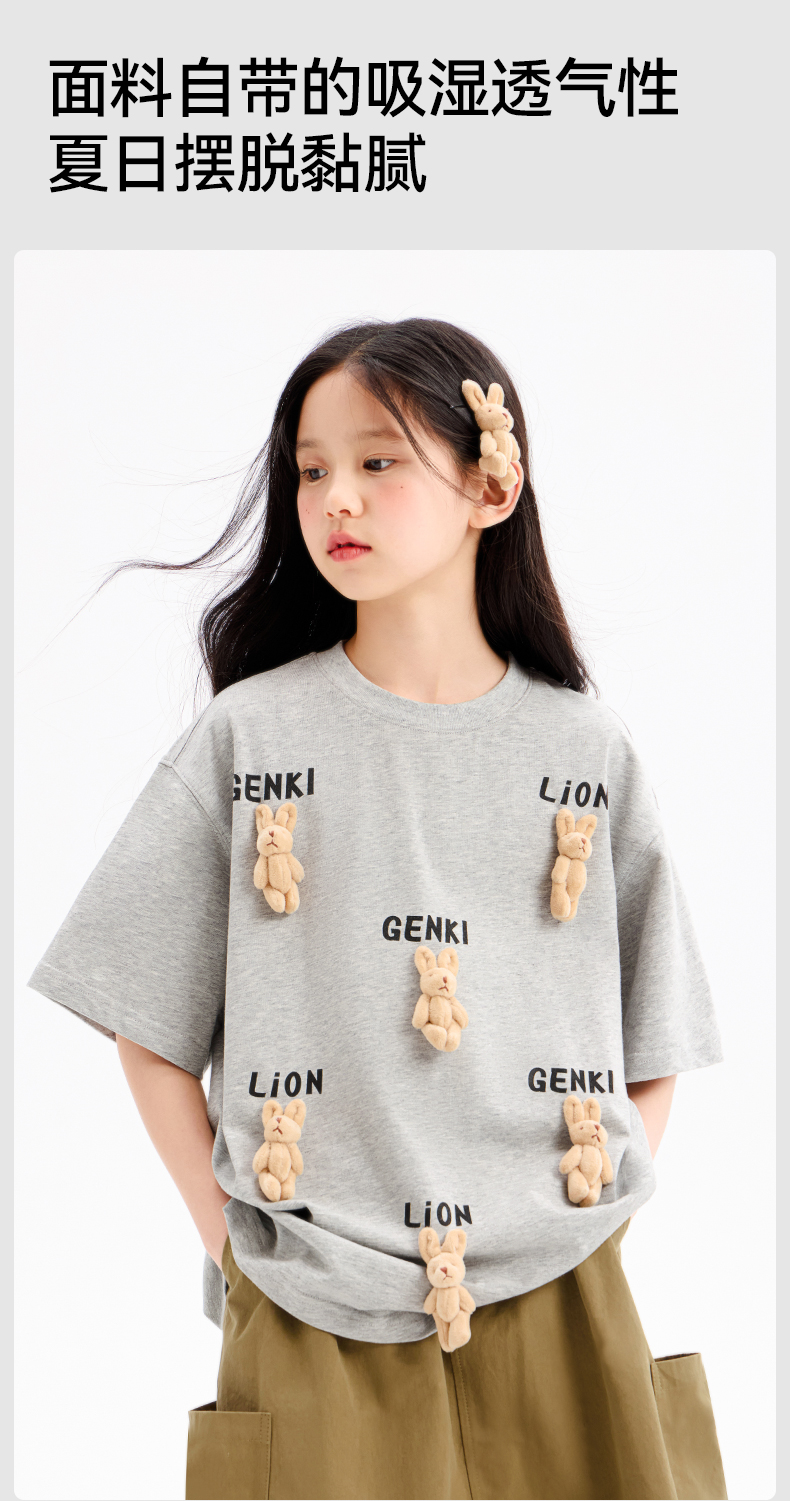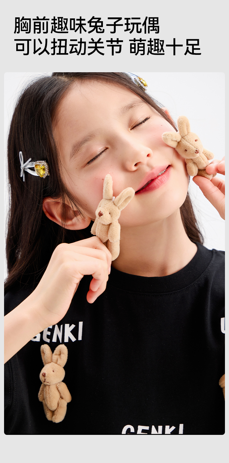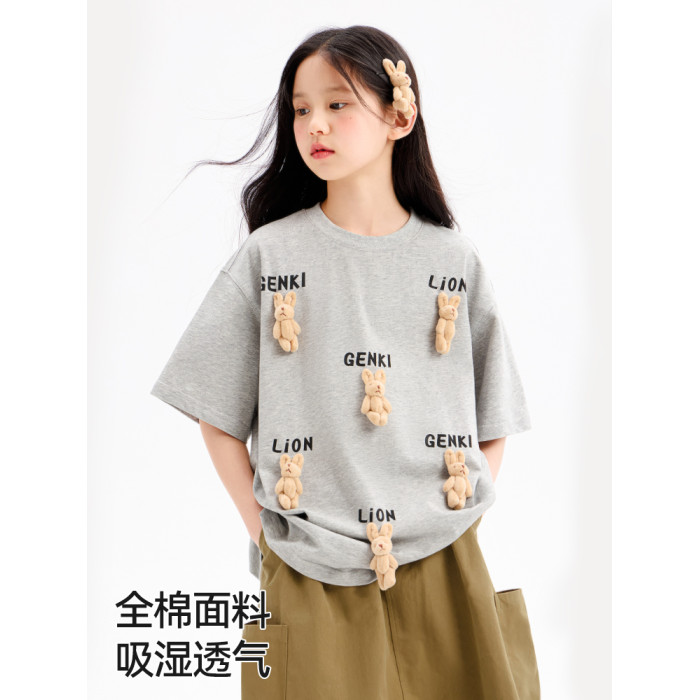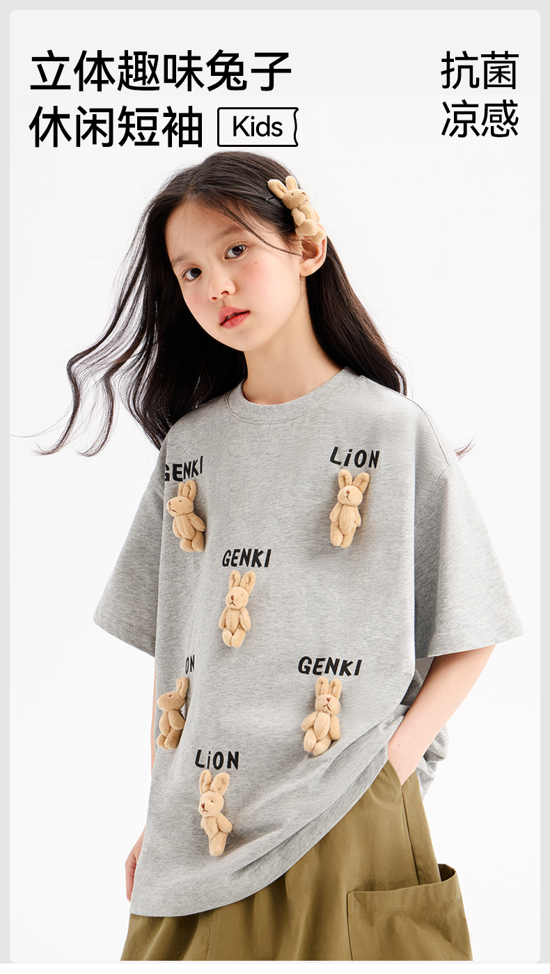 女童短袖T恤2025夏季兒童薄款涼感立體兔子中大童休閒百搭上衣潮