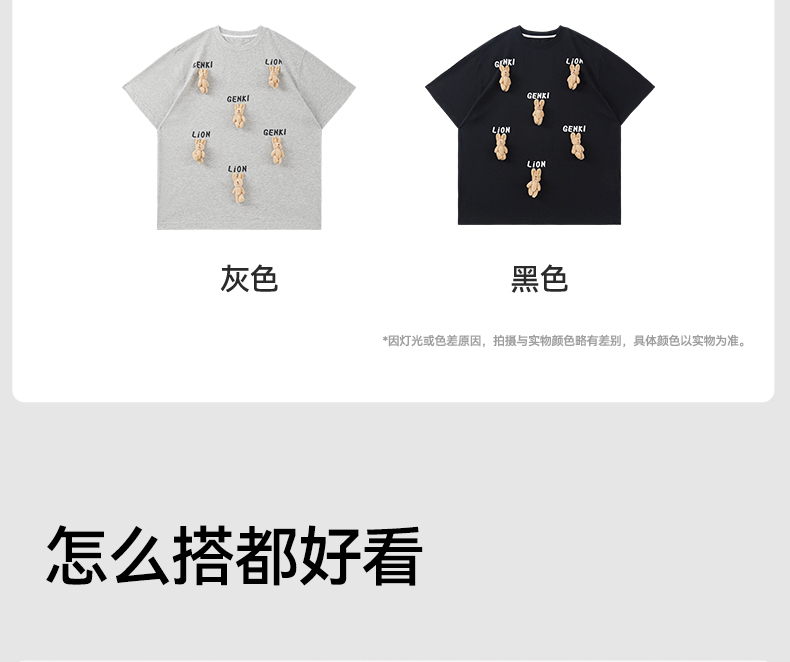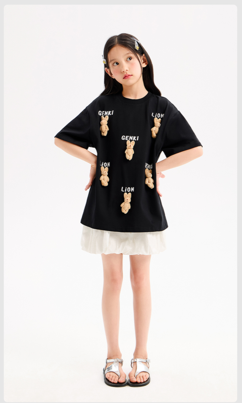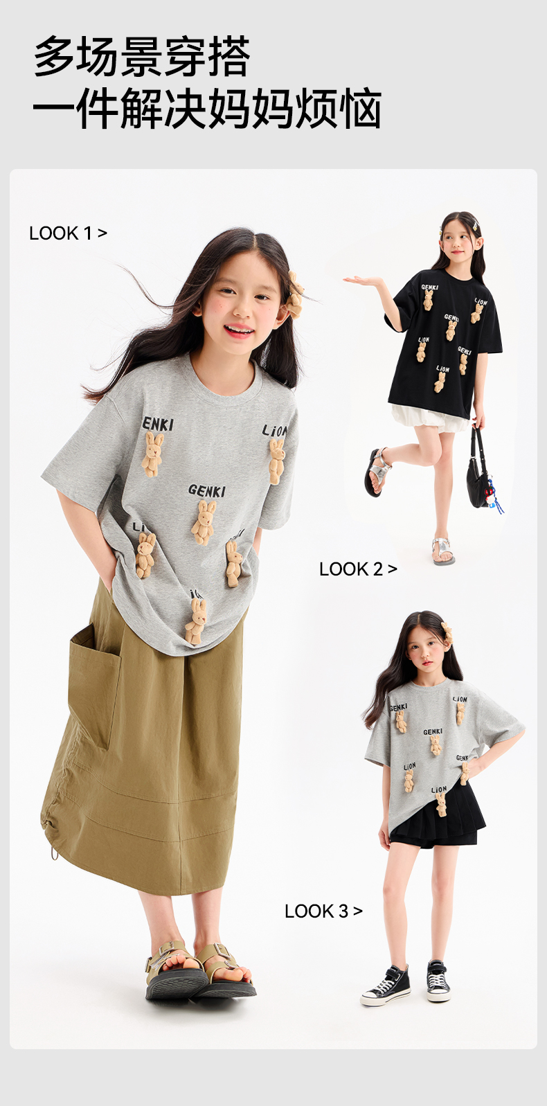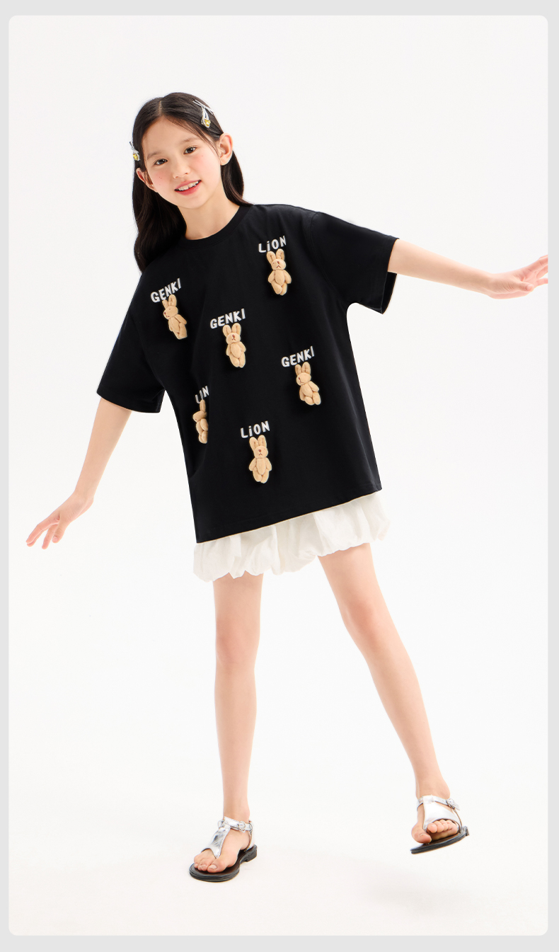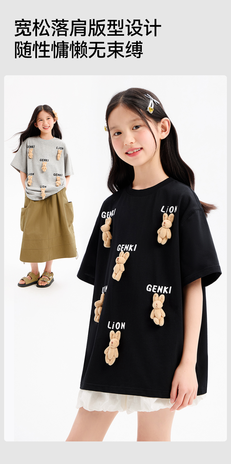 女童短袖T恤2025夏季兒童薄款涼感立體兔子中大童休閒百搭上衣潮