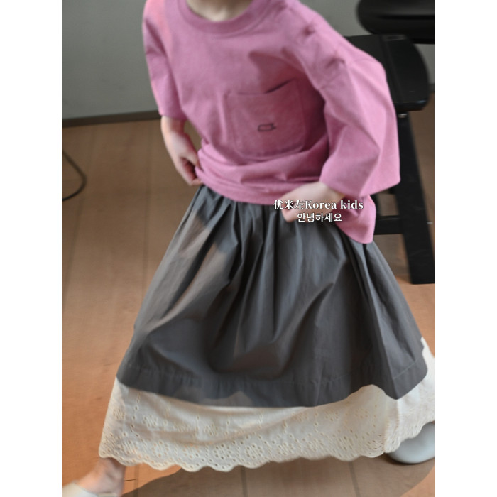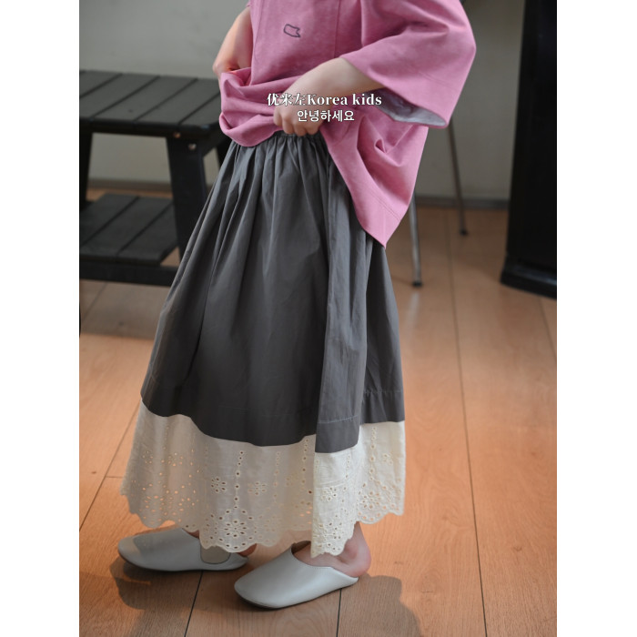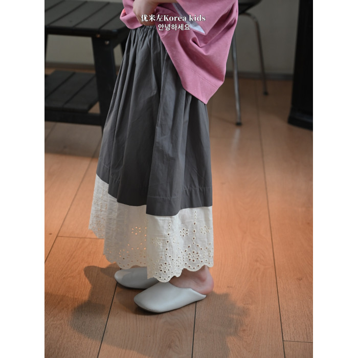 女童半身裙2025夏季新款兒童洋氣拼接中長款裙子時髦蕾絲高級童裝