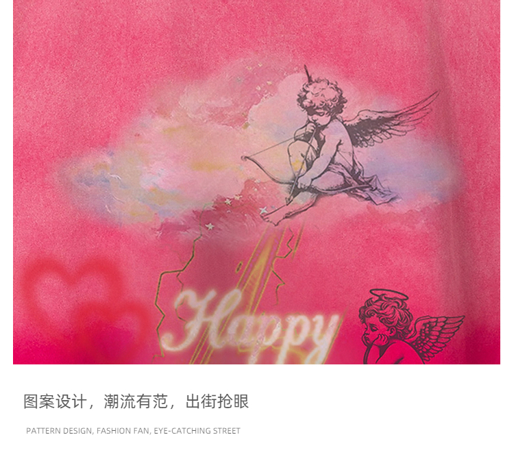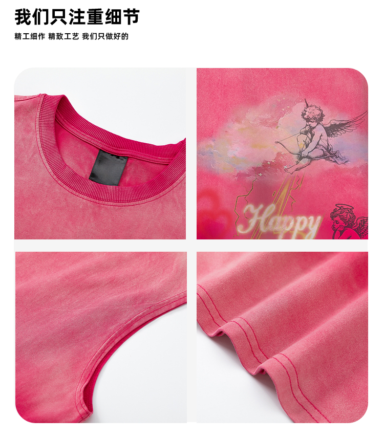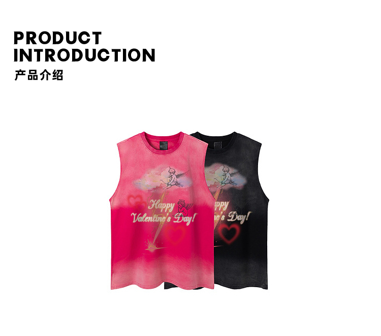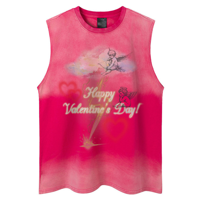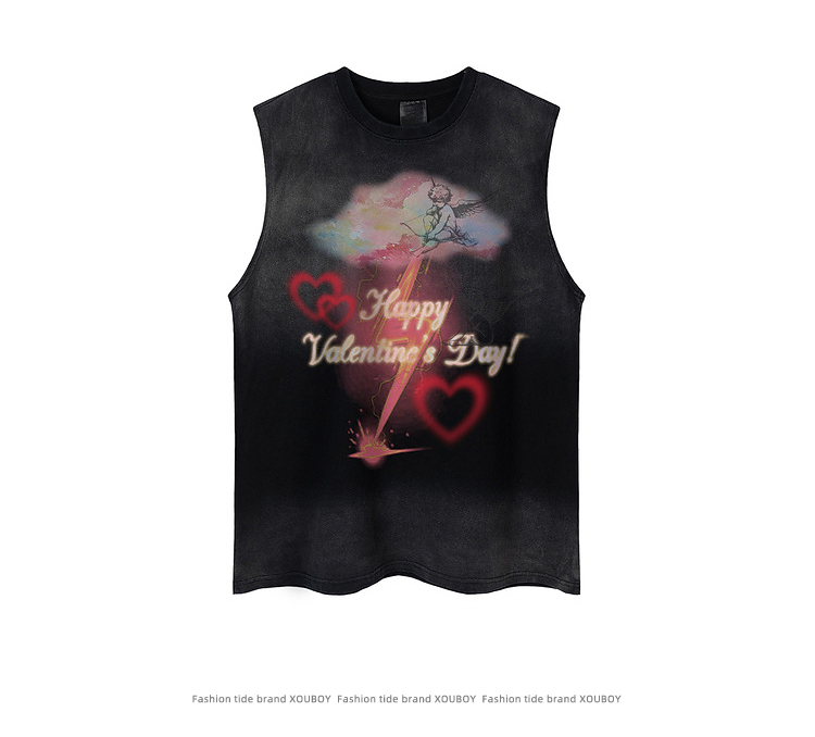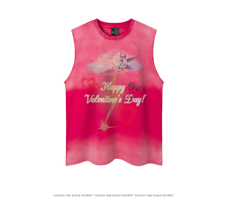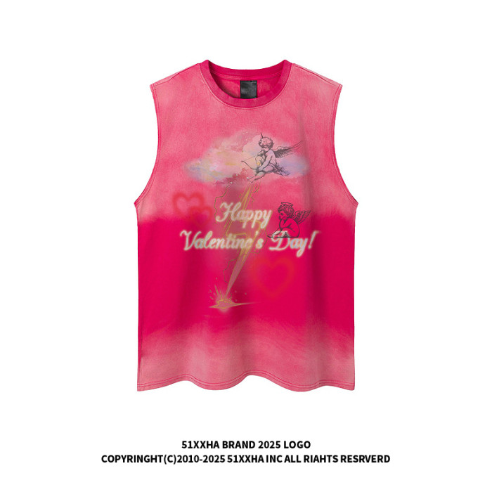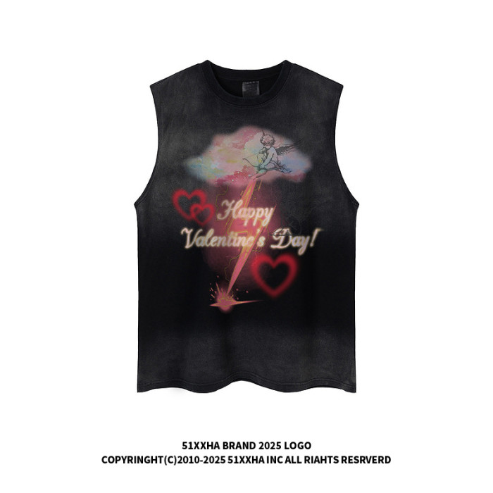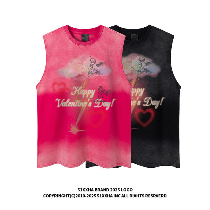 51嘻哈美式復古丘比特印花無袖T恤男女夏季寬松休閒情侶坎肩背心