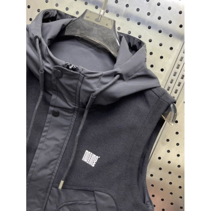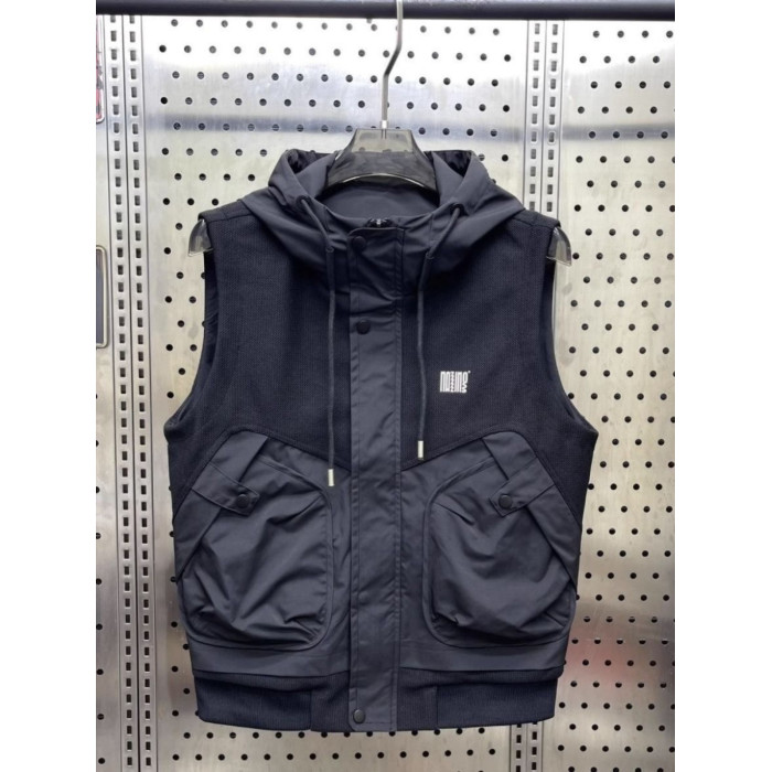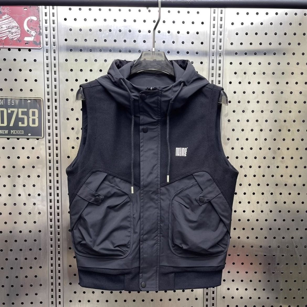 夏季拼接男士連帽馬甲簡約修身百搭青年帥氣立體口袋休閒馬甲外套