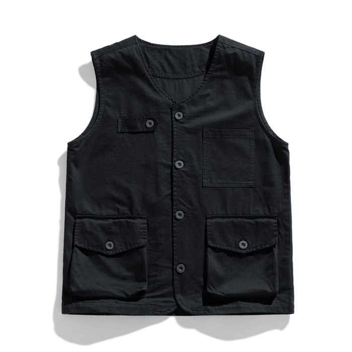 夏季純棉美式工裝馬甲多口袋男士戶外釣魚路亞夾無袖復古休閒坎肩