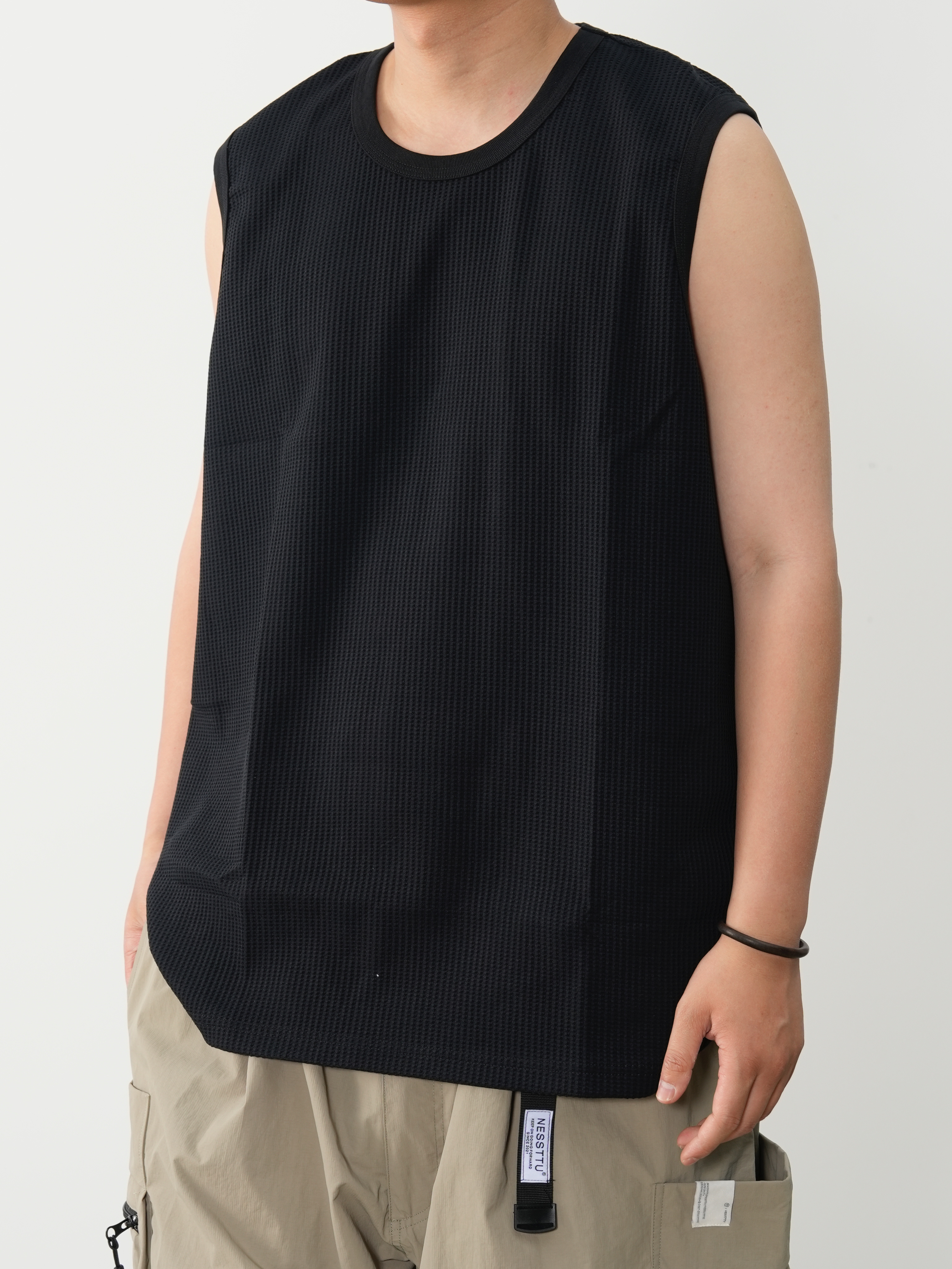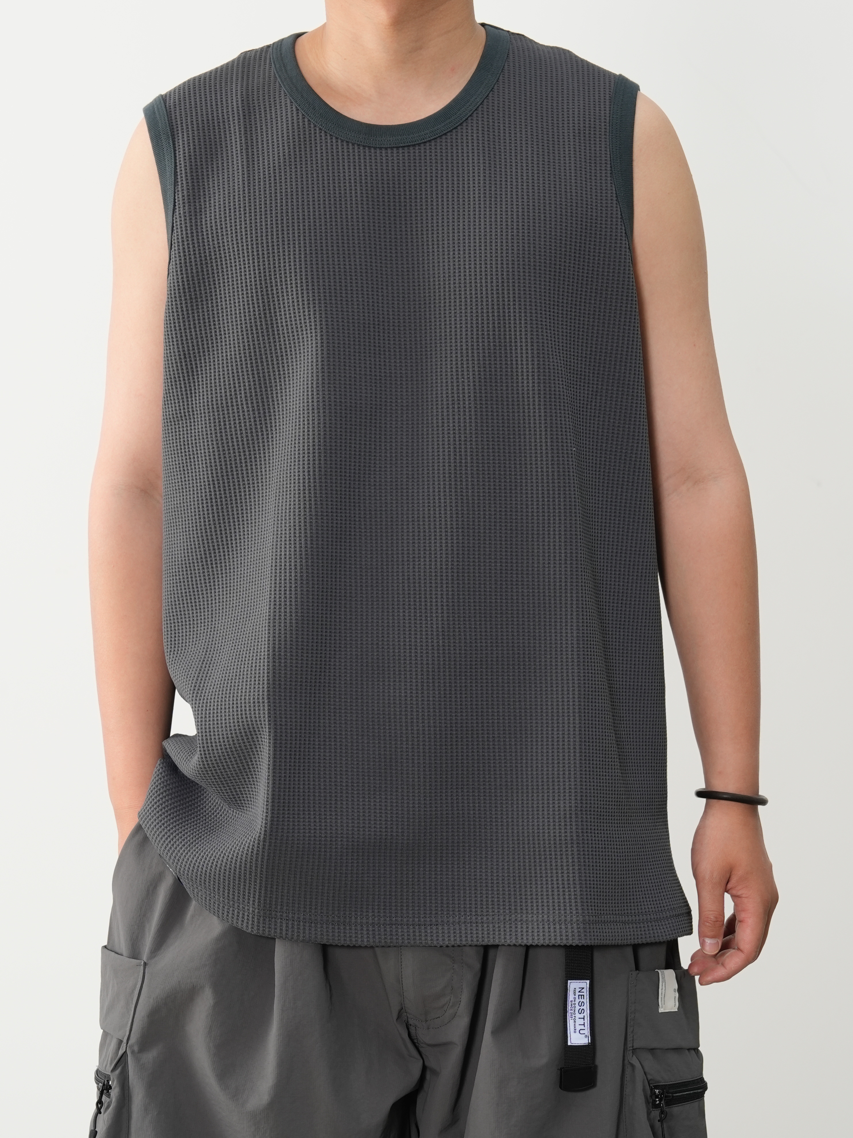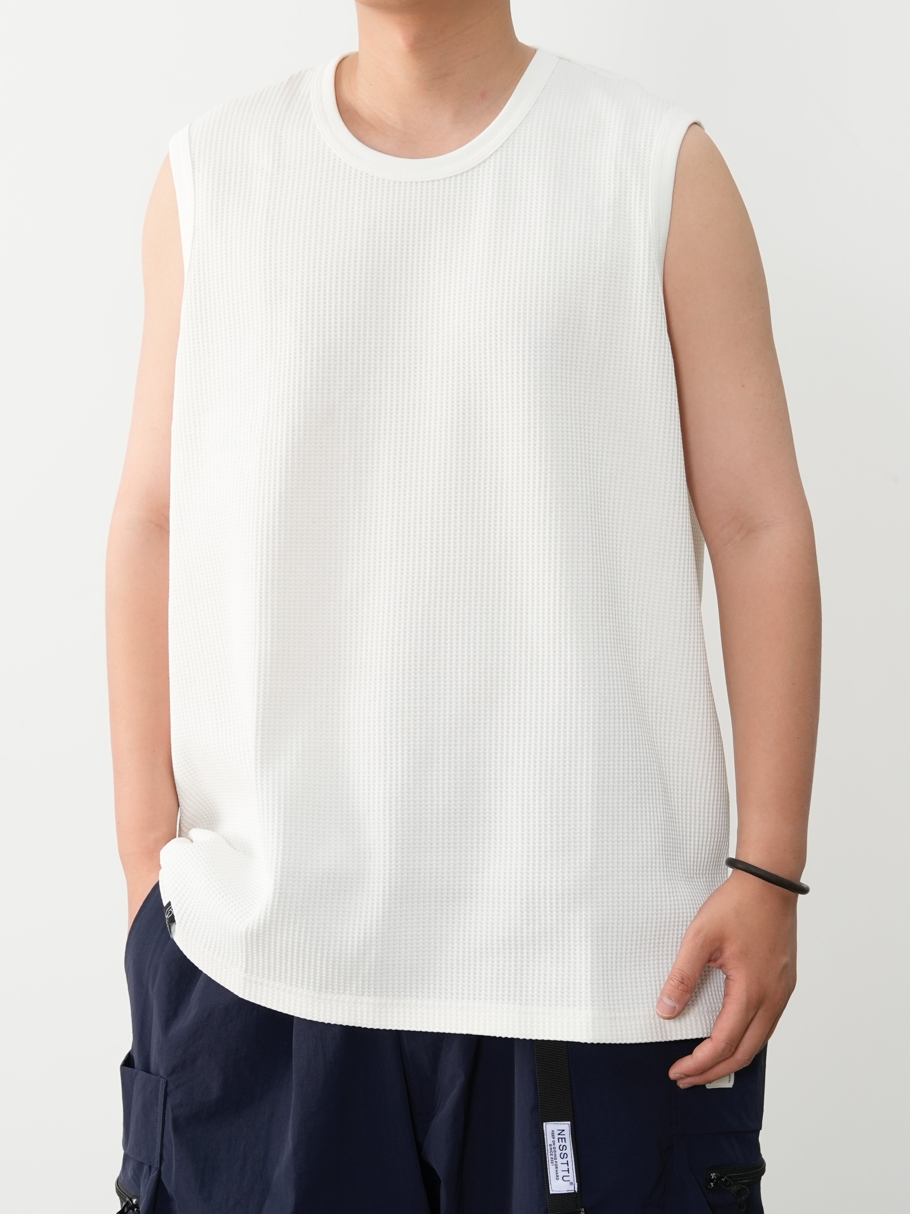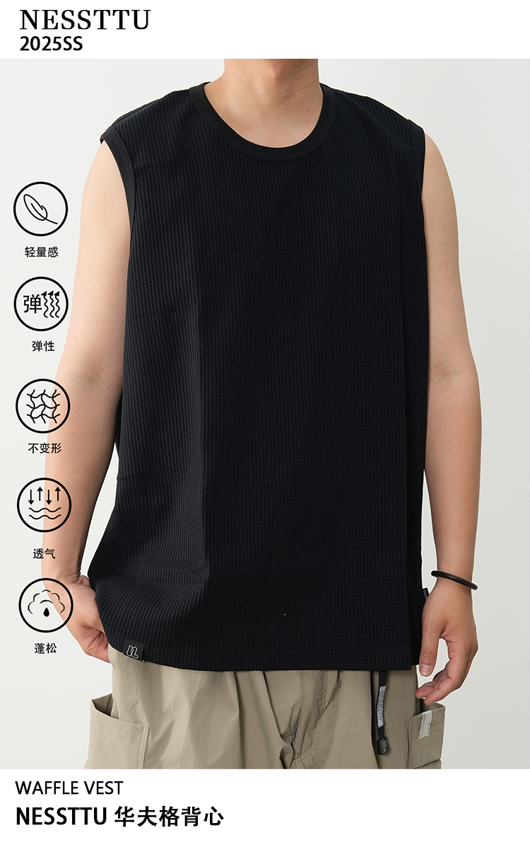NESSTTU 25新品日系休閒復古百搭寬松透氣華夫格純色運動背心