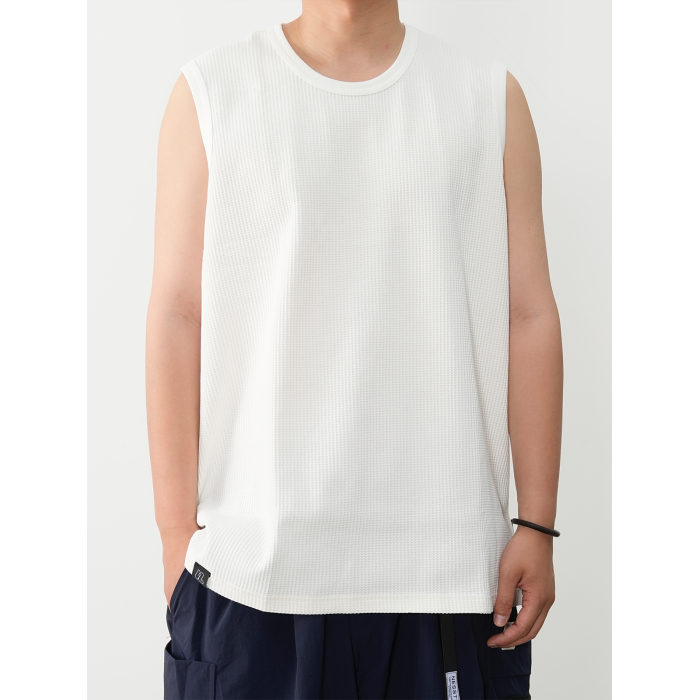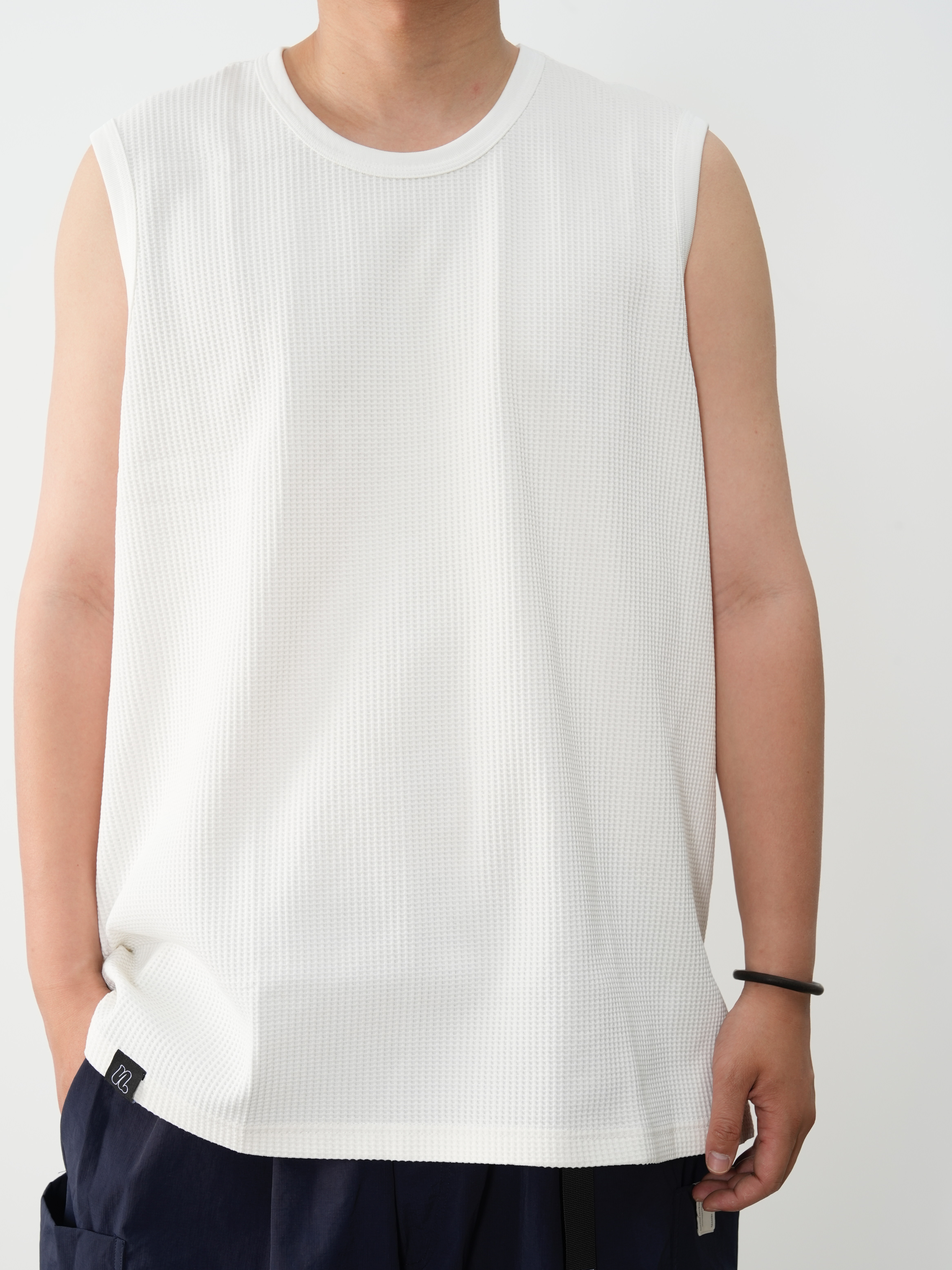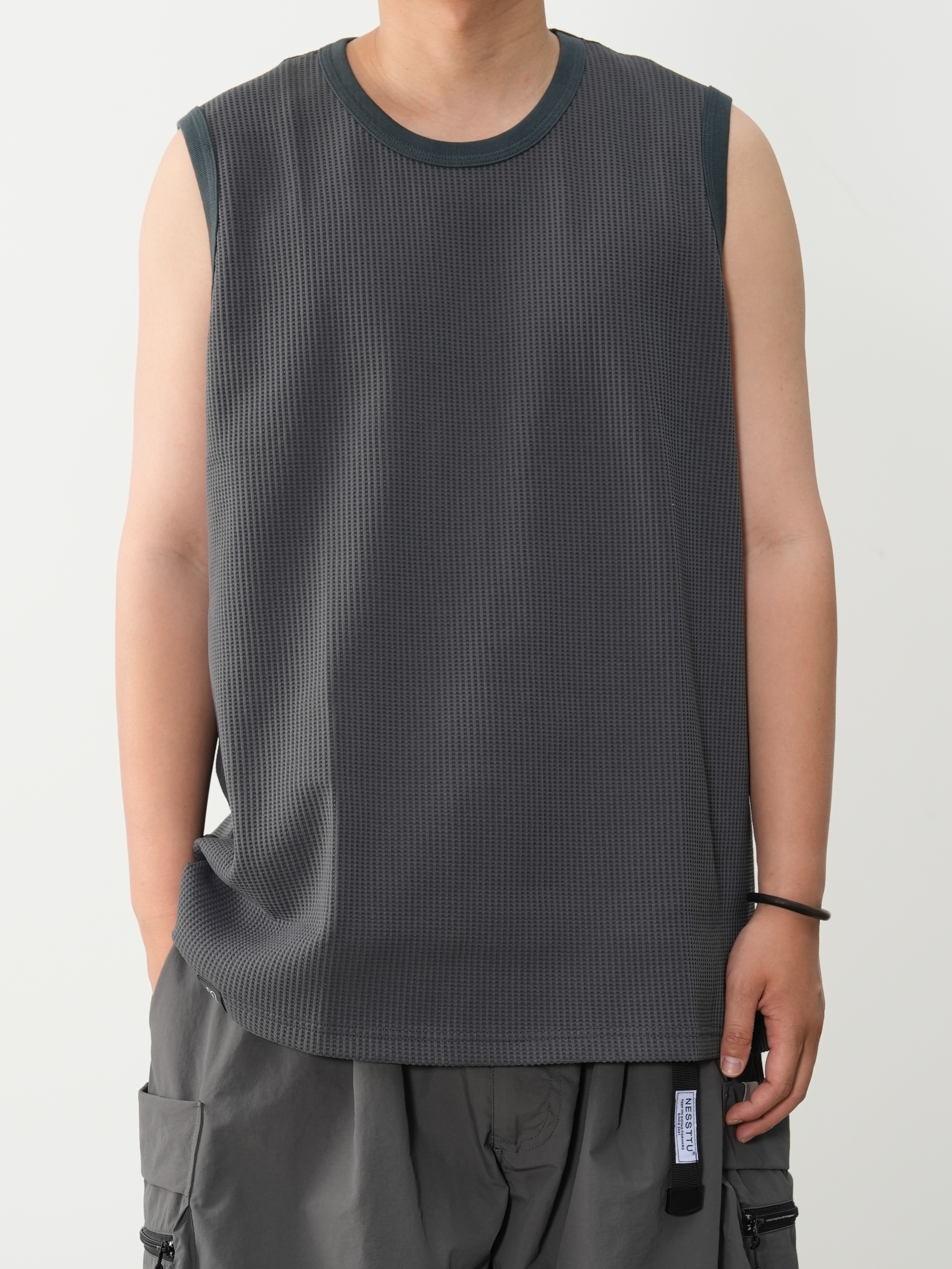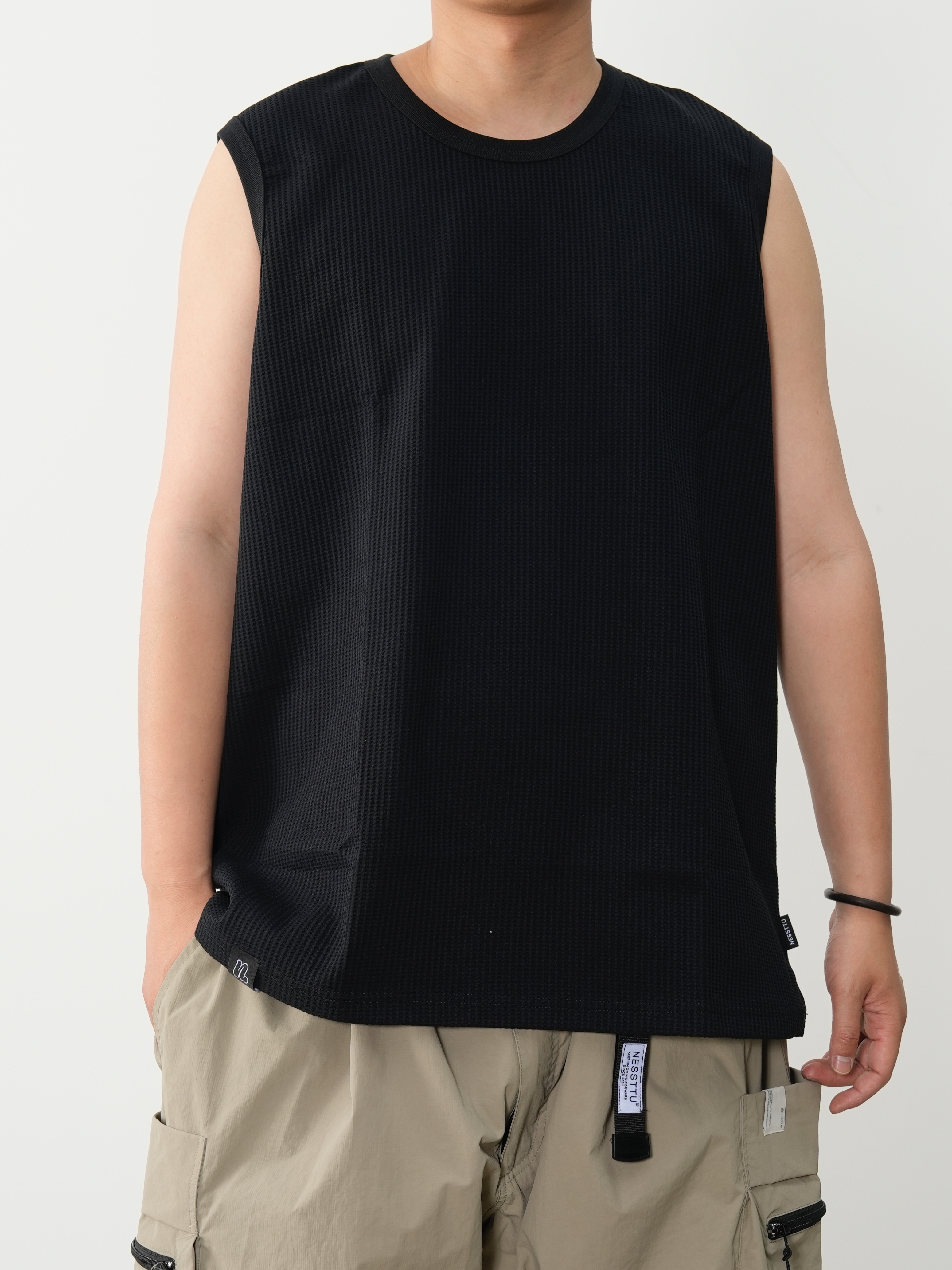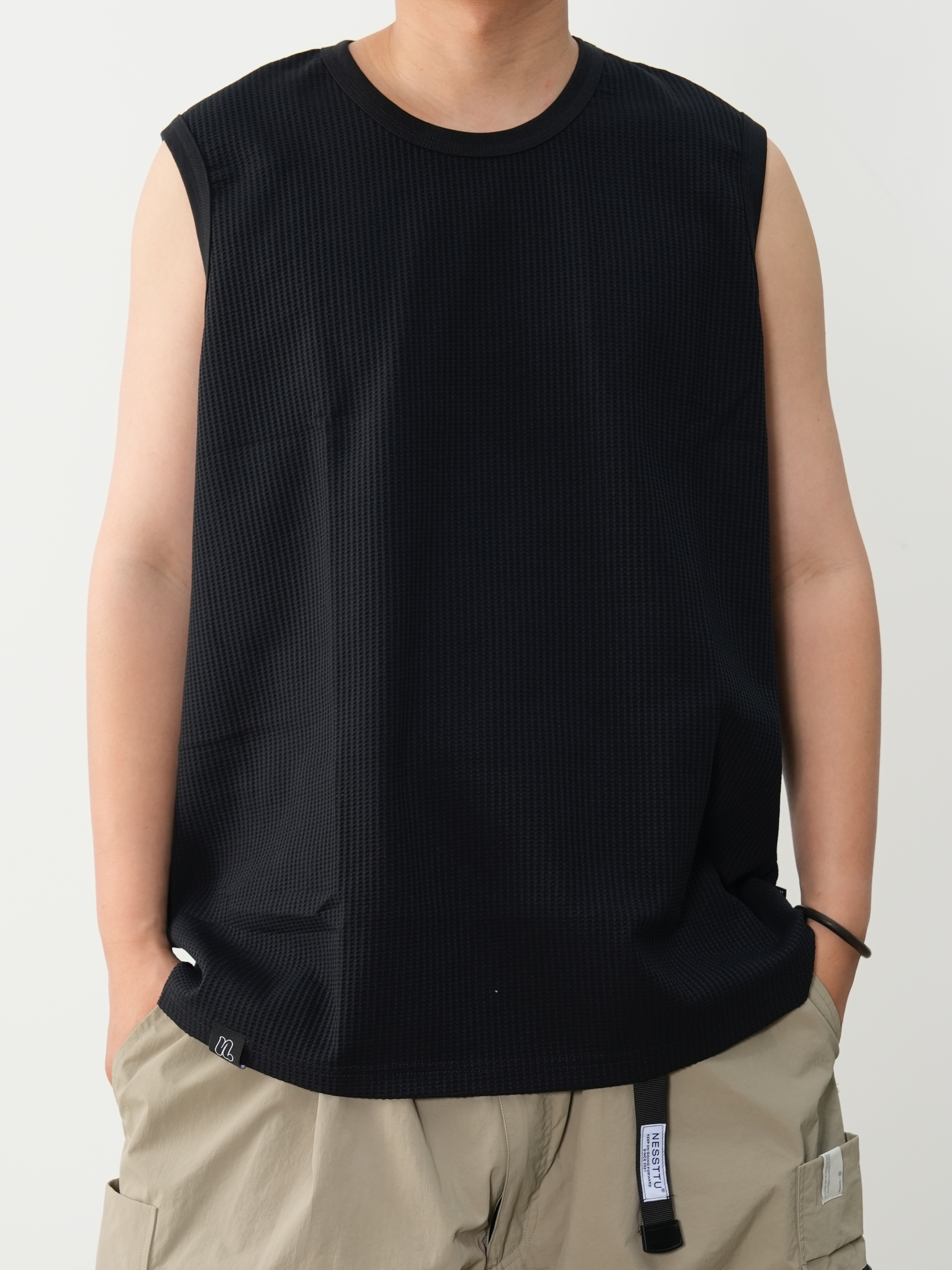NESSTTU 25新品日系休閒復古百搭寬松透氣華夫格純色運動背心