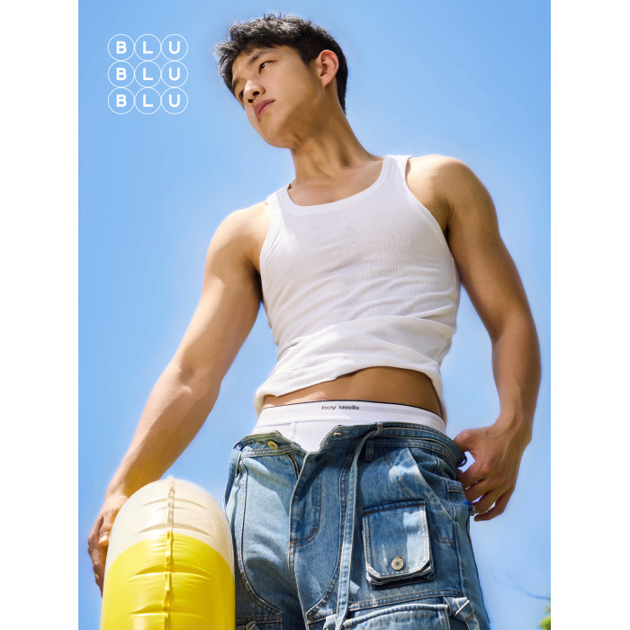 BluBluBlu美式運動健身背心夏季青年男士白色螺紋打底無袖坎肩T恤