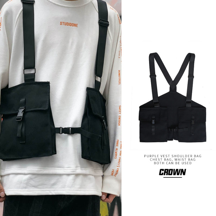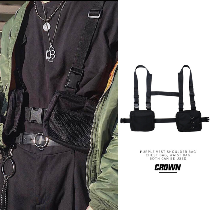 ins港風戰術馬甲男機能工裝馬甲包情侶胸包女國潮蹦迪包多口袋潮