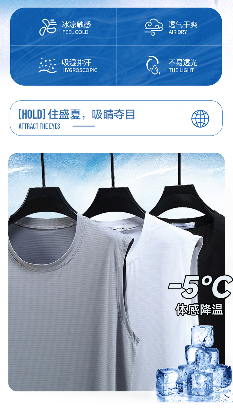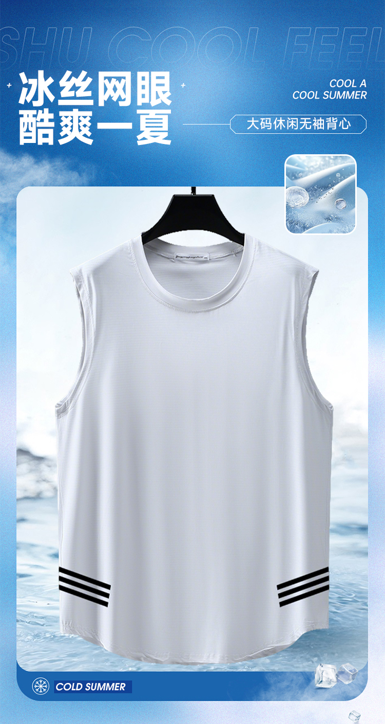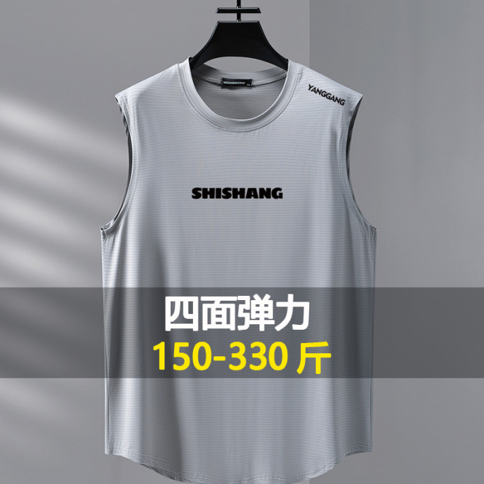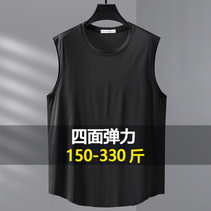 輕奢大碼冰絲背心男運動速乾無袖T恤輕薄款胖子加肥加大汗衫300斤