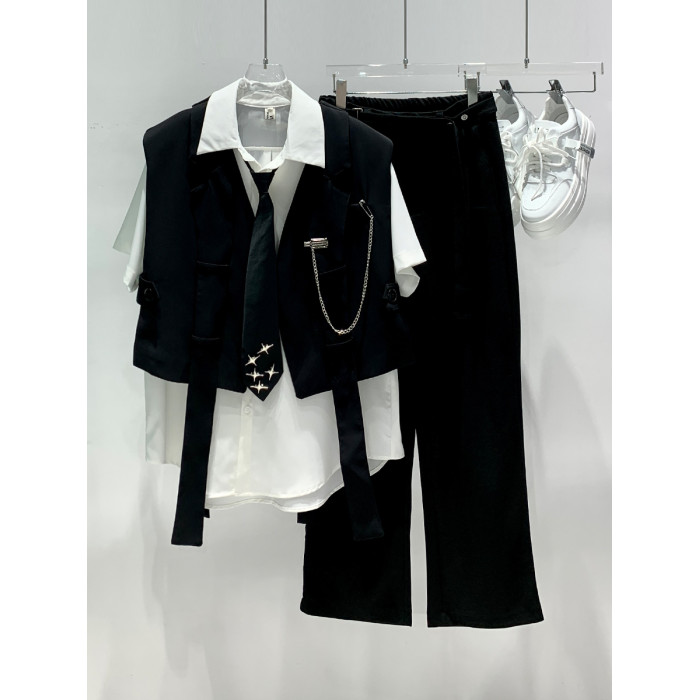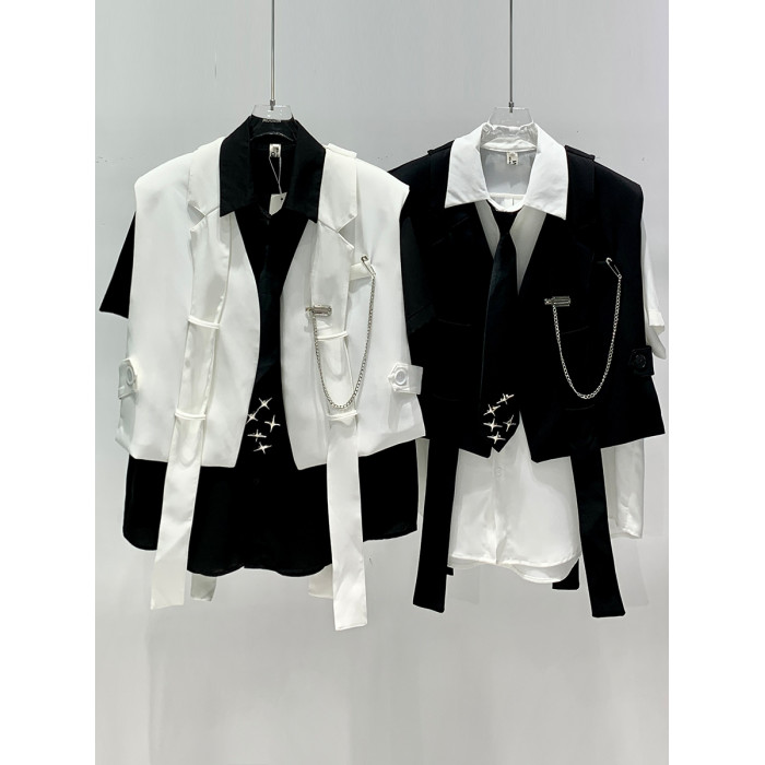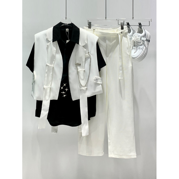 YIFAN設計感西裝馬甲男新款韓版潮牌網紅髮型師背帶時尚坎肩夾克