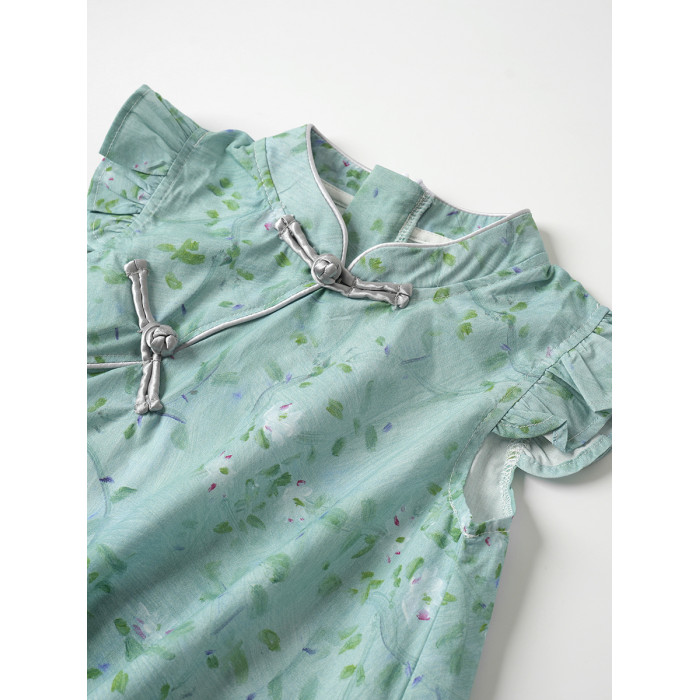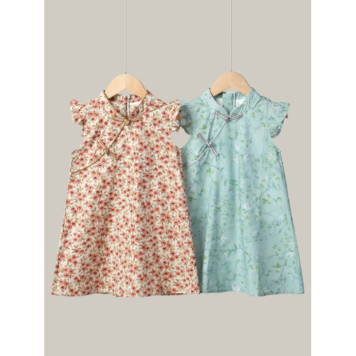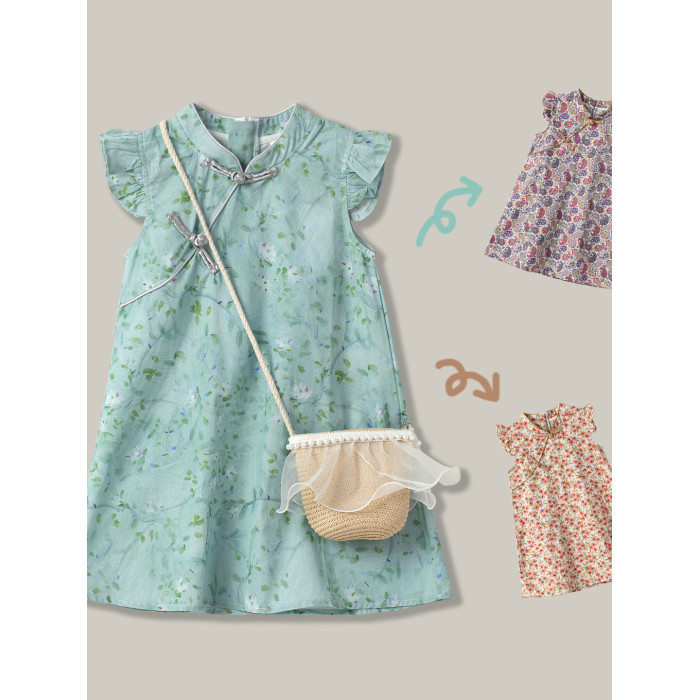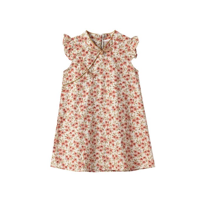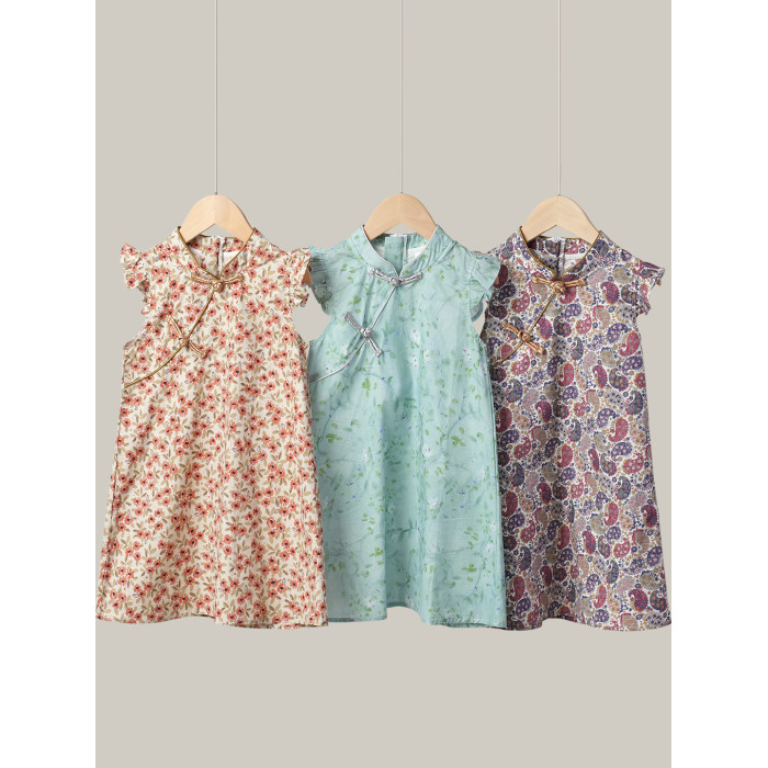 薄款 女童純棉旗袍裙 兒童立領飛袖連衣裙 中童裙子 夏季款 童裝