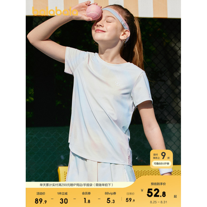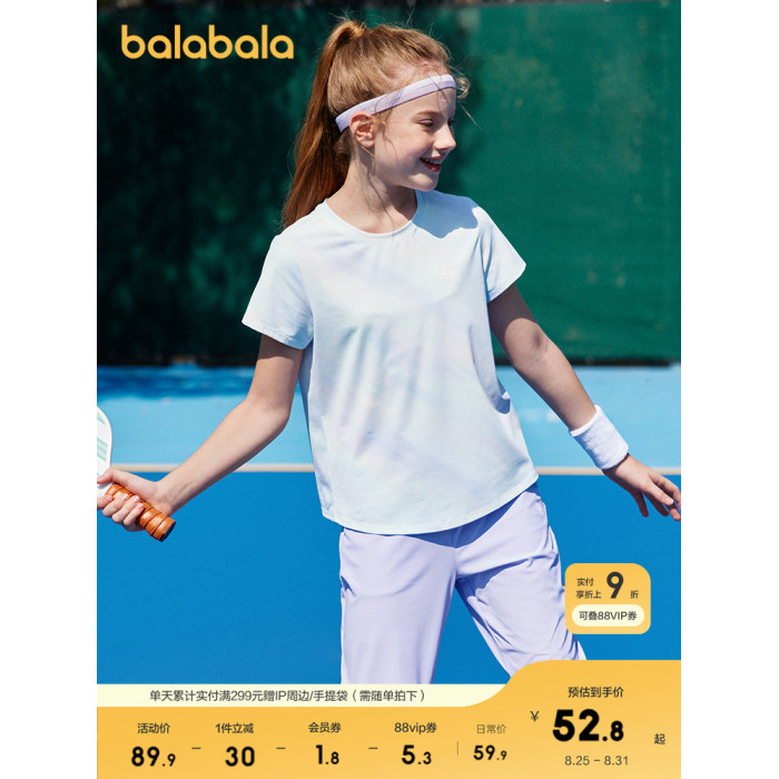 巴拉巴拉童裝兒童短袖女童t恤夏裝2025新款大童防曬上衣涼感速乾