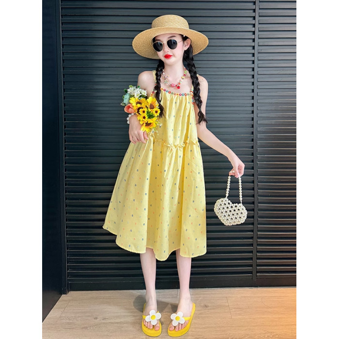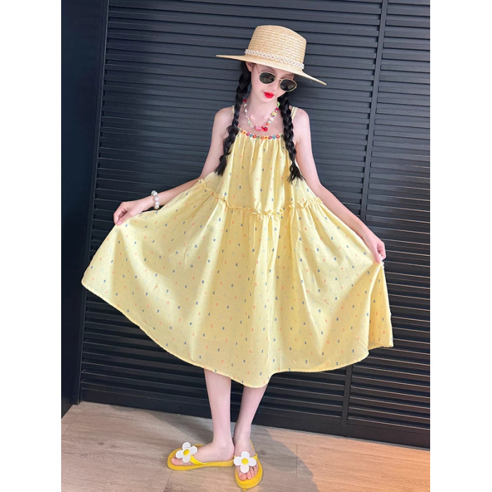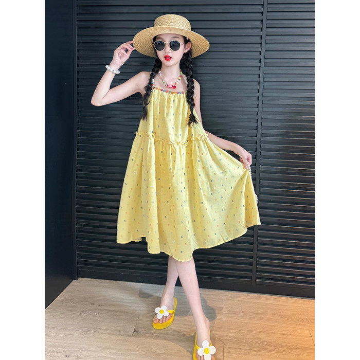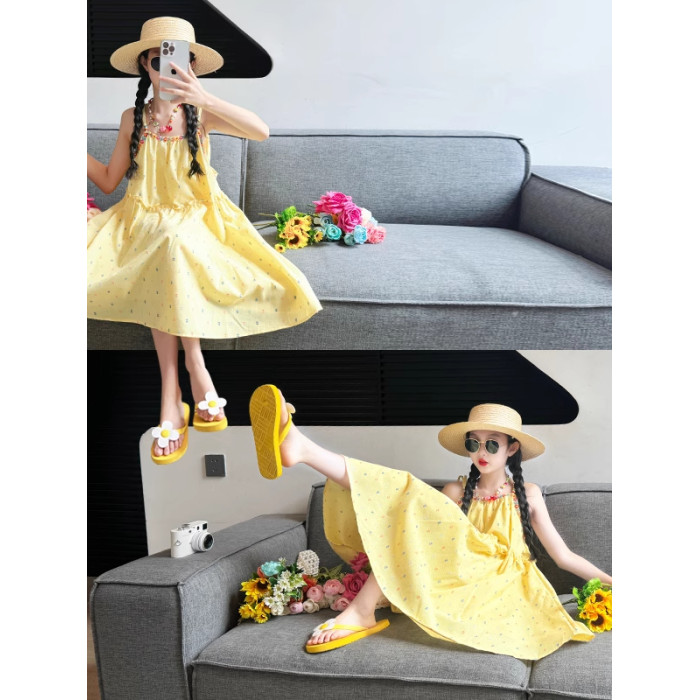 女童裙子薄款2025新款大童女孩度假沙灘吊帶裙兒童夏裝韓版連衣裙