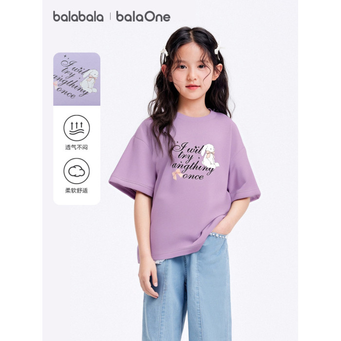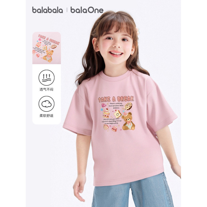 巴拉巴拉兒童短袖t恤女童甜美百搭上衣大童半袖2025夏裝新款童裝5