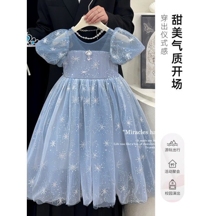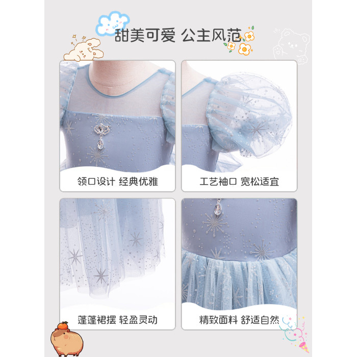 艾莎公主裙女童夏季連衣裙兒童冰雪奇緣愛莎裙子小女孩生日禮服