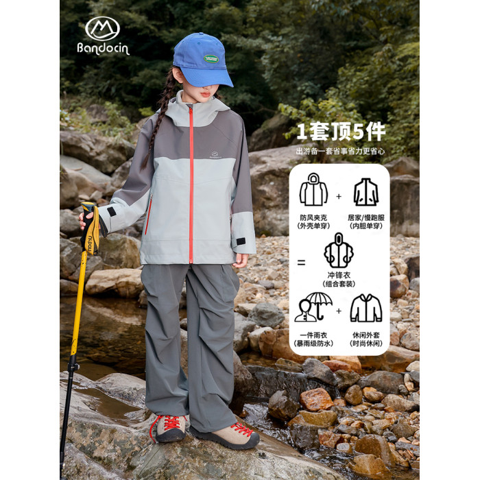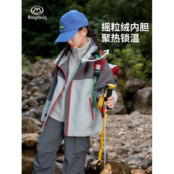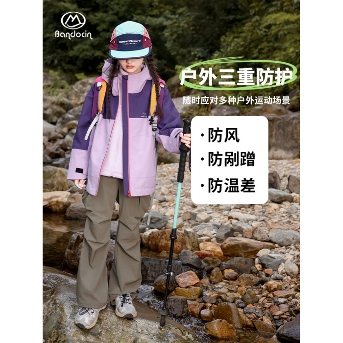 半度閒女童三合一沖鋒衣洋氣秋冬裝25新款兒童冬季加厚抓絨衣兩件