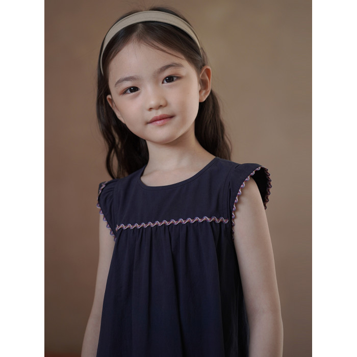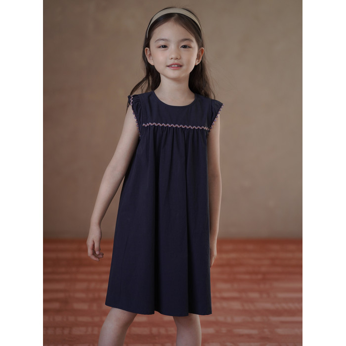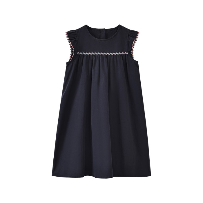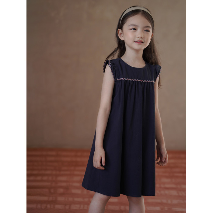 哈齒童裝夏季薄款兒童韓版裙子藏青色背心裙女童中長連衣裙中大童