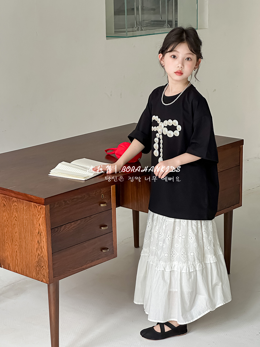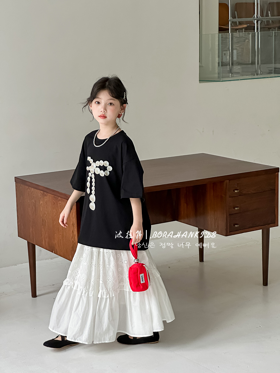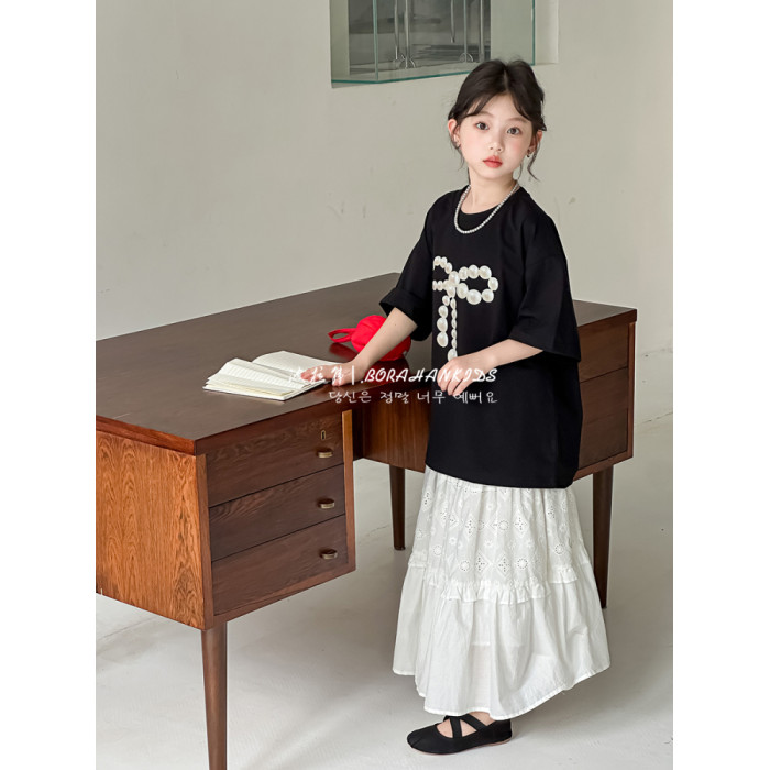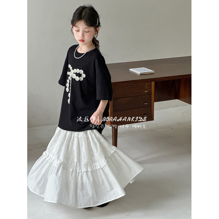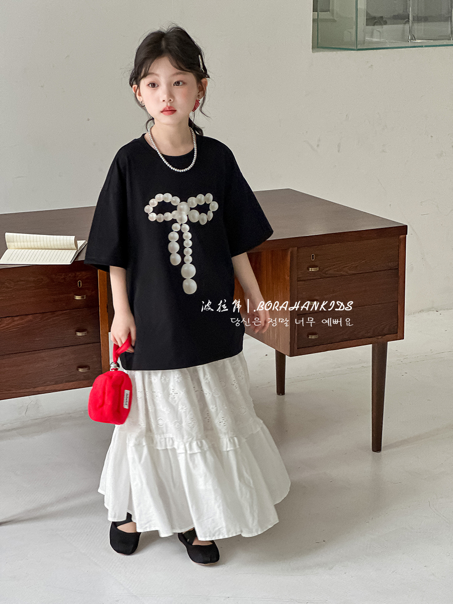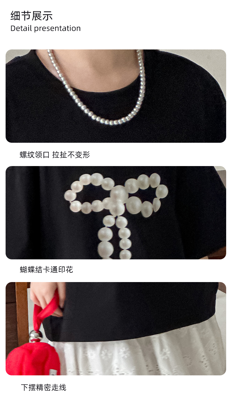 波拉韓女童短袖夏季兒童蝴蝶結T恤2025新款女孩半袖t中大童體恤