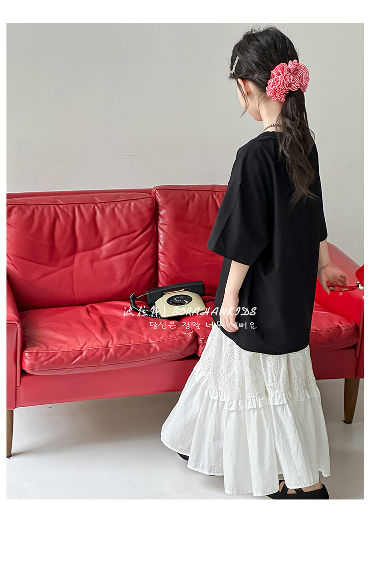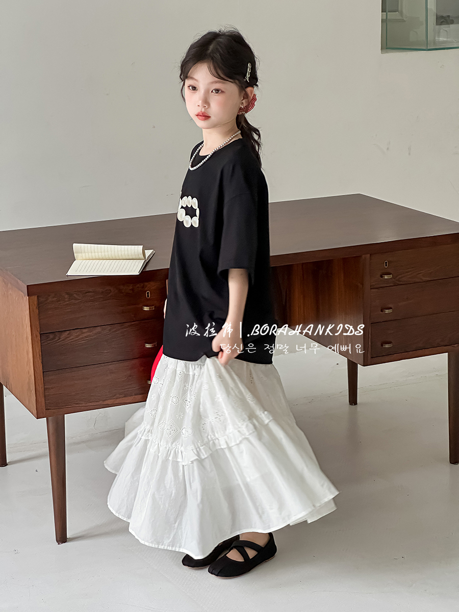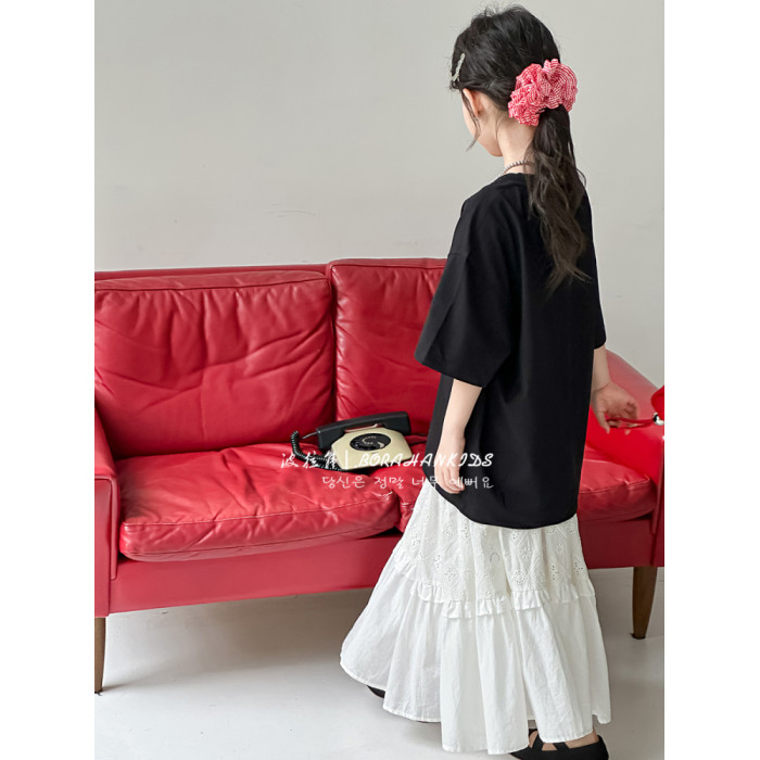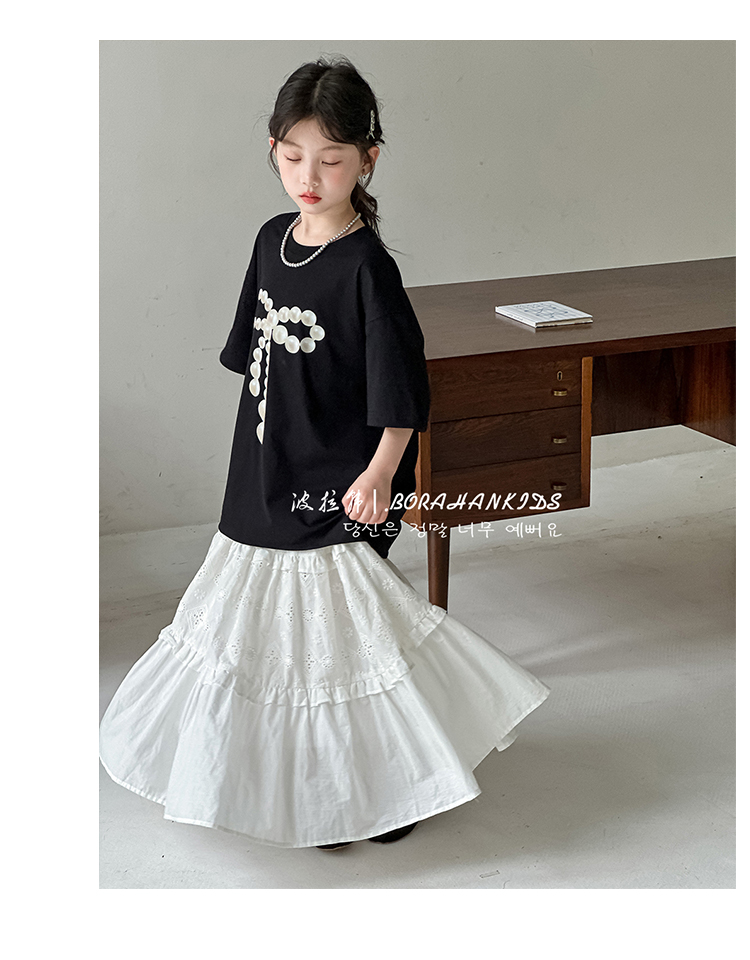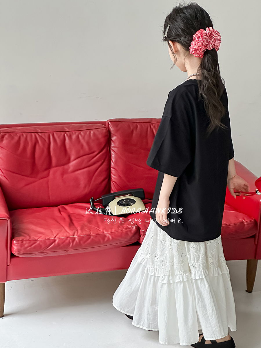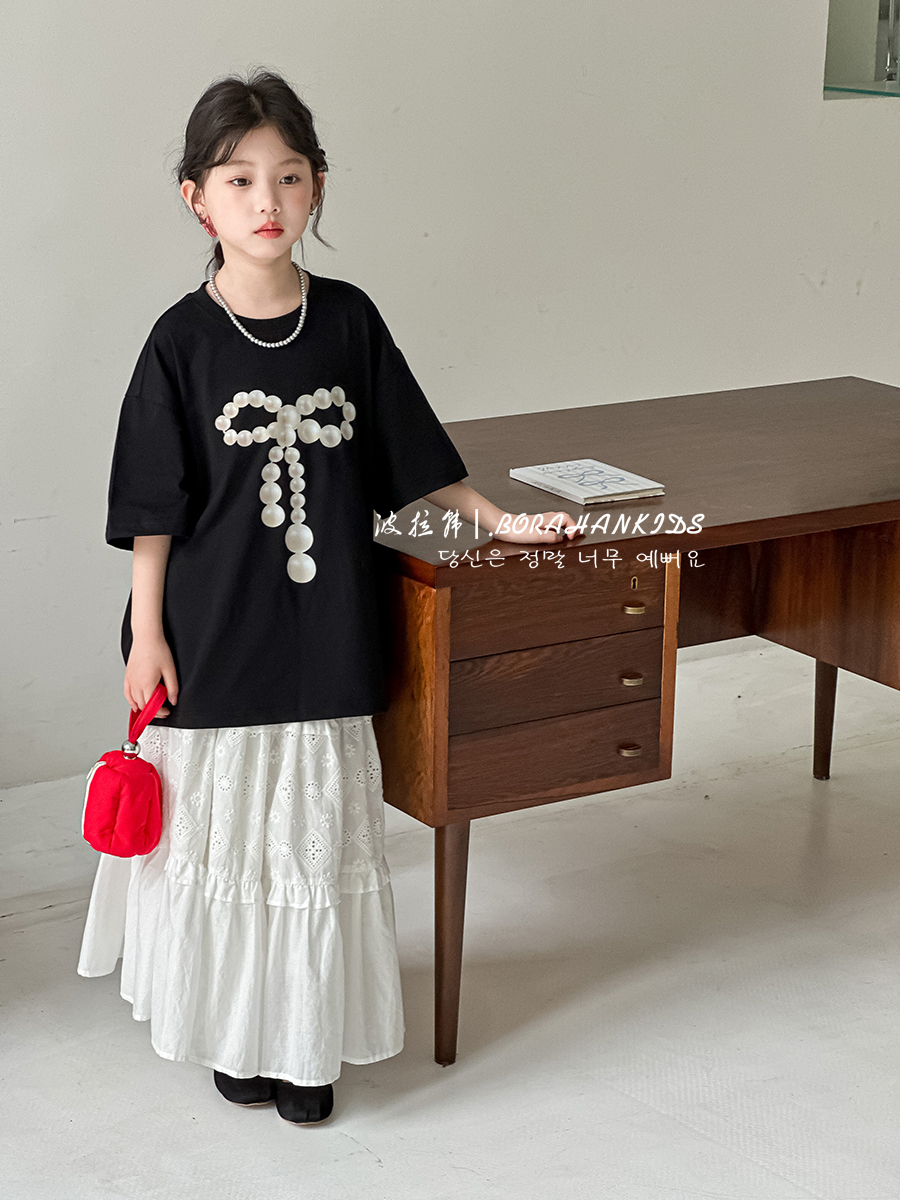 波拉韓女童短袖夏季兒童蝴蝶結T恤2025新款女孩半袖t中大童體恤