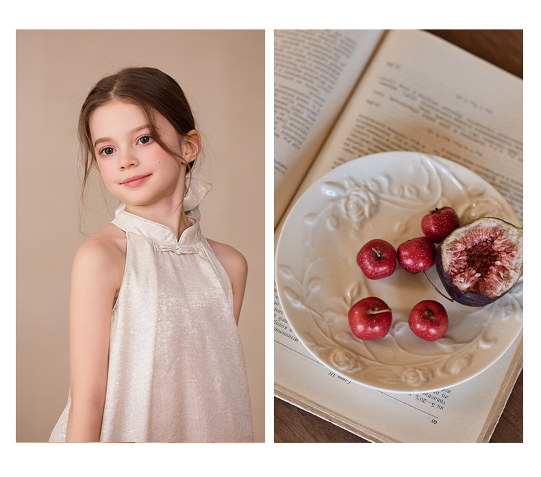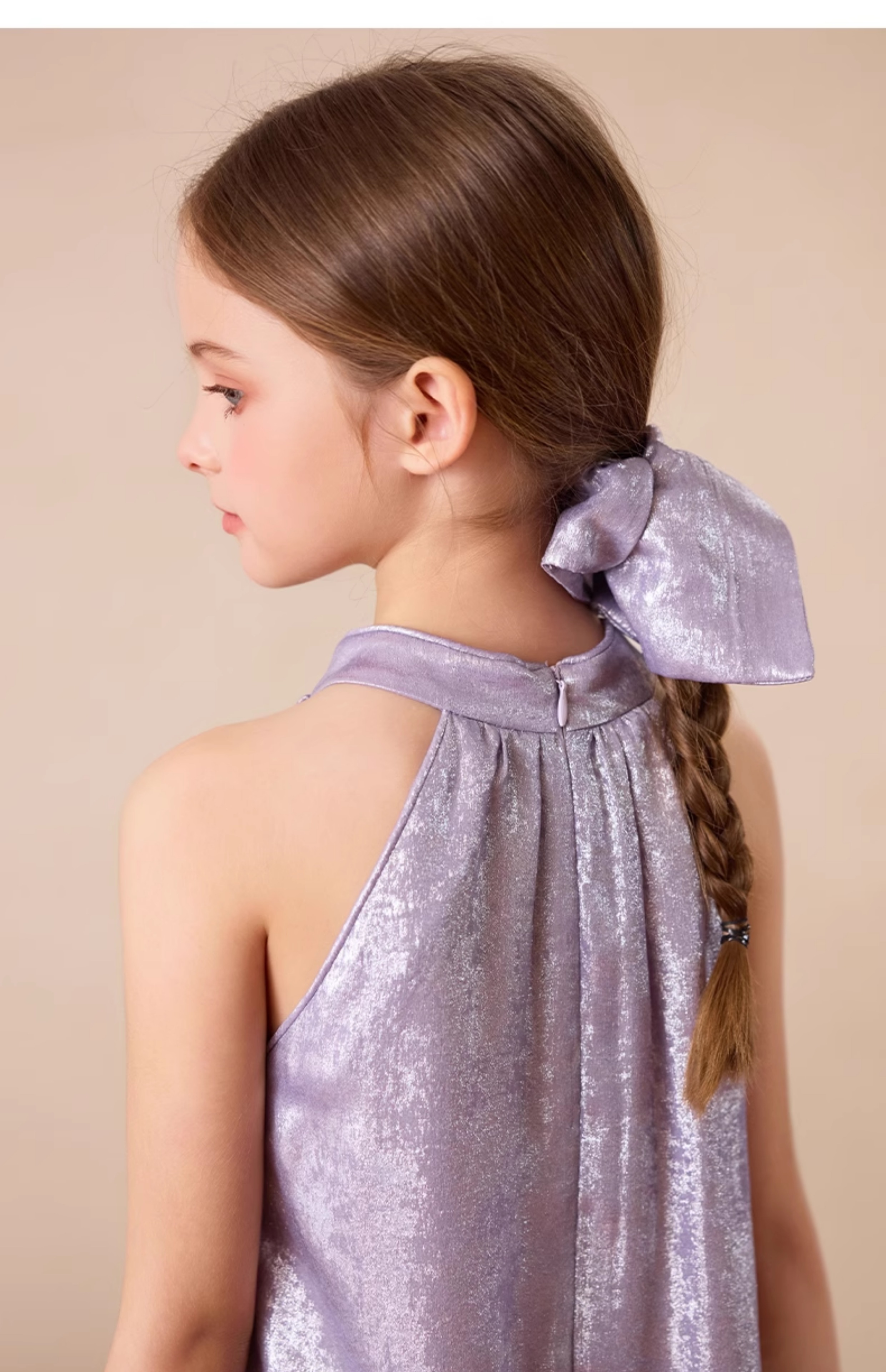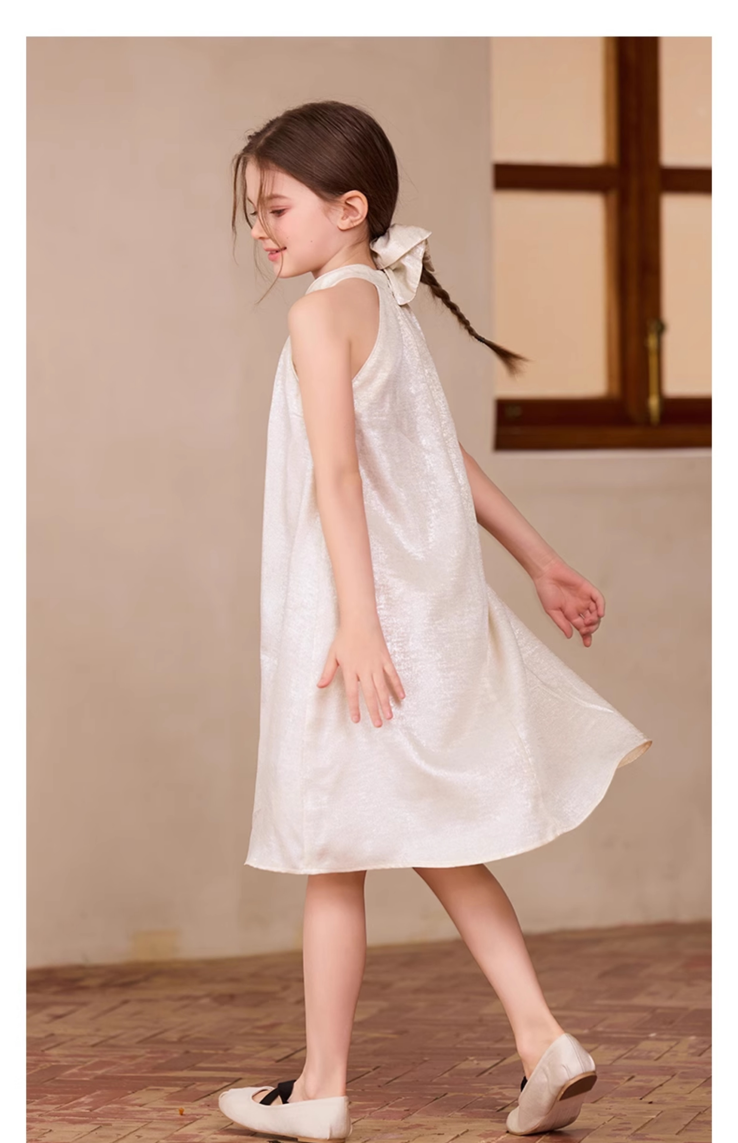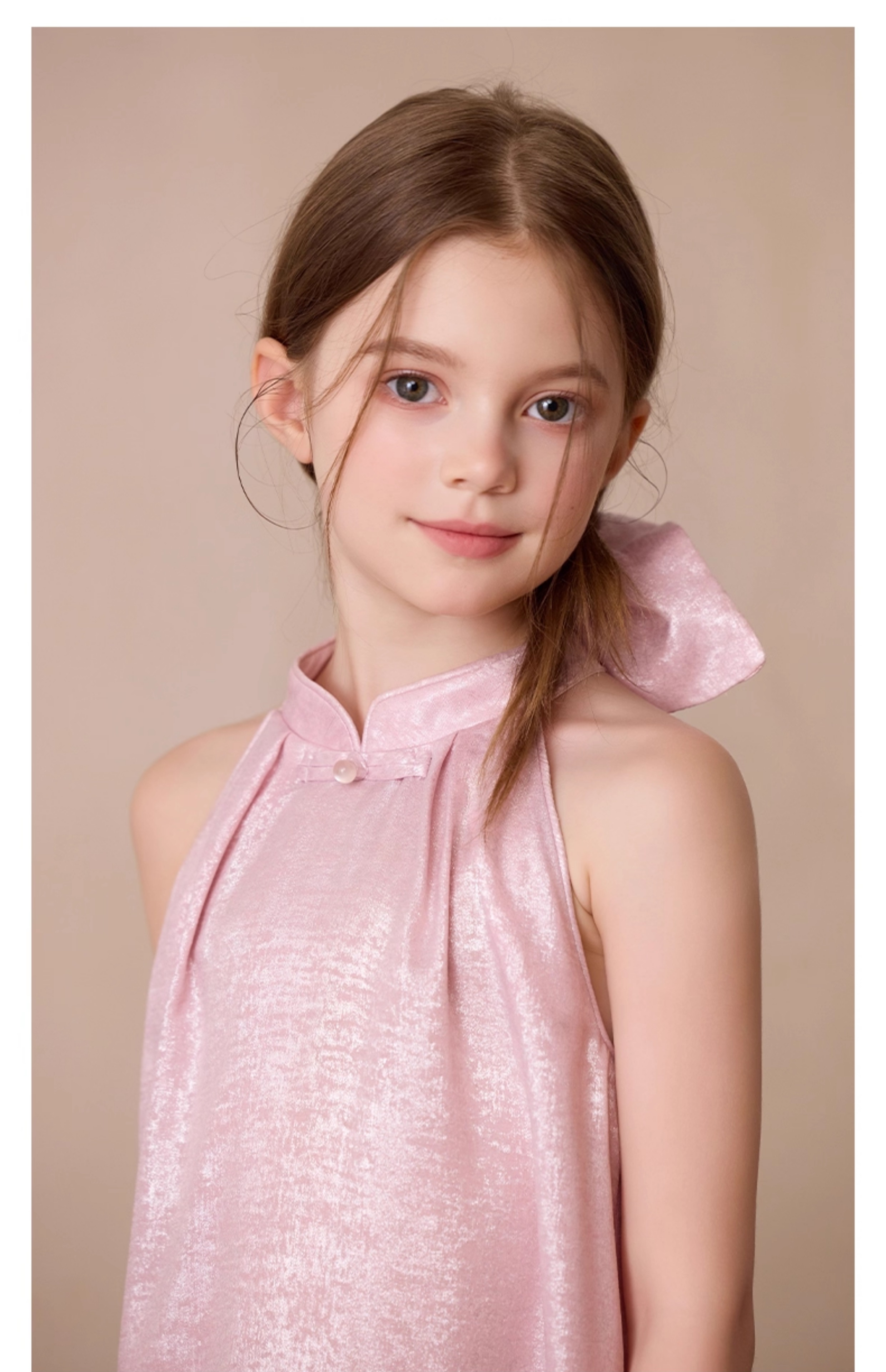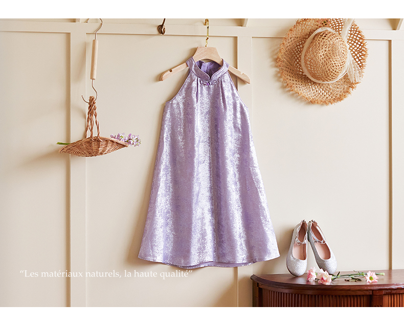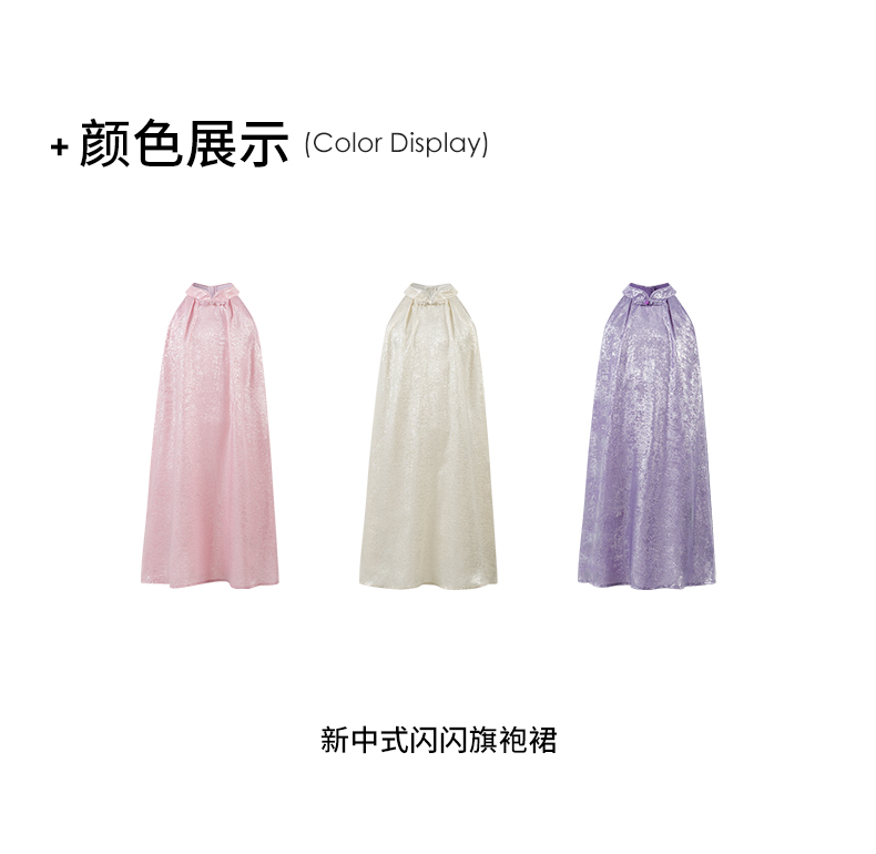 Little Naive兒童新中式連衣裙夏季新款掛脖旗袍裙女童閃閃裙子