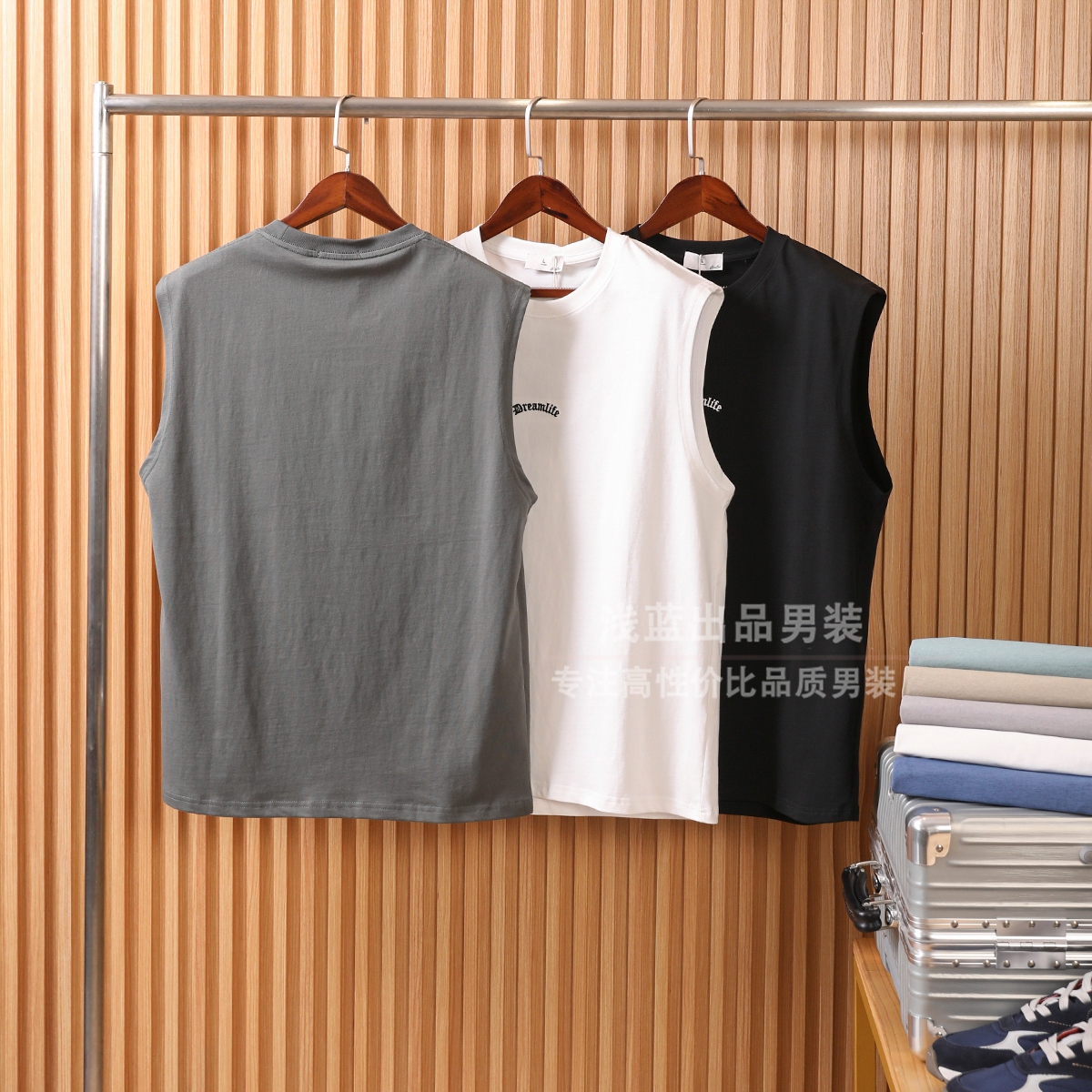 自畱三件!打底苾備!門店198!夏季男士時尚圓領無袖背心上衣潮