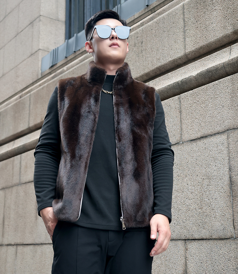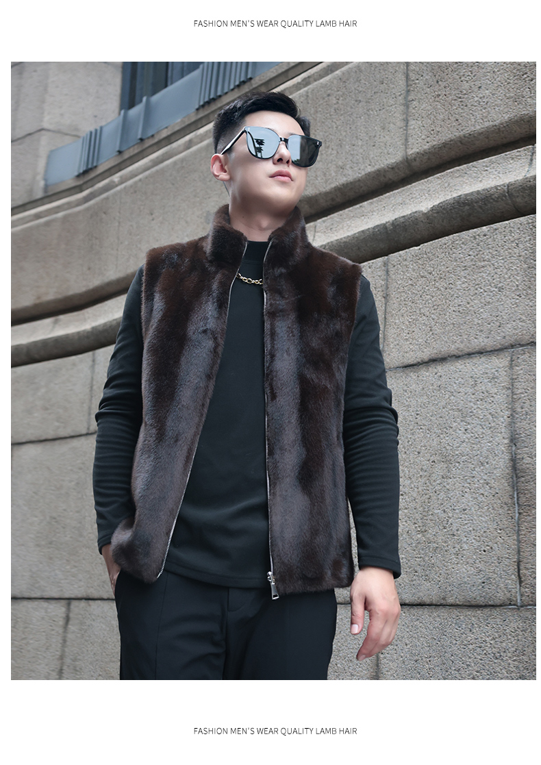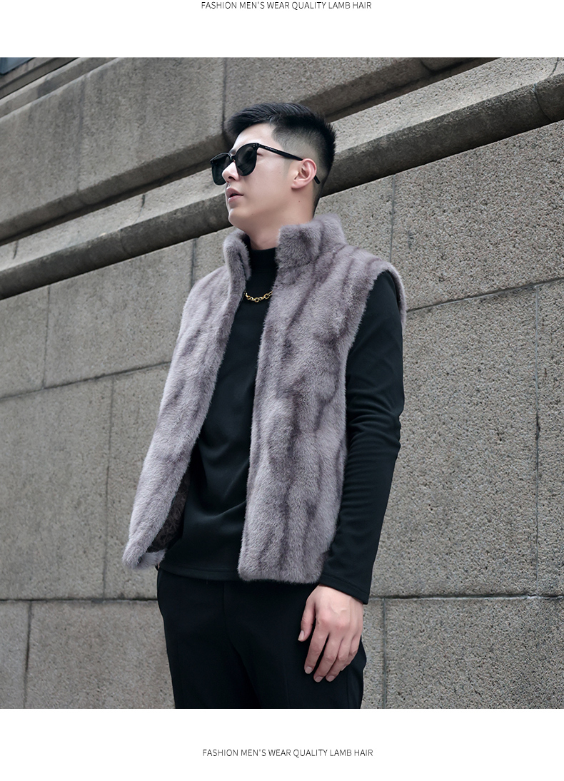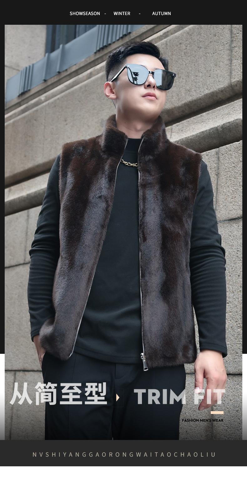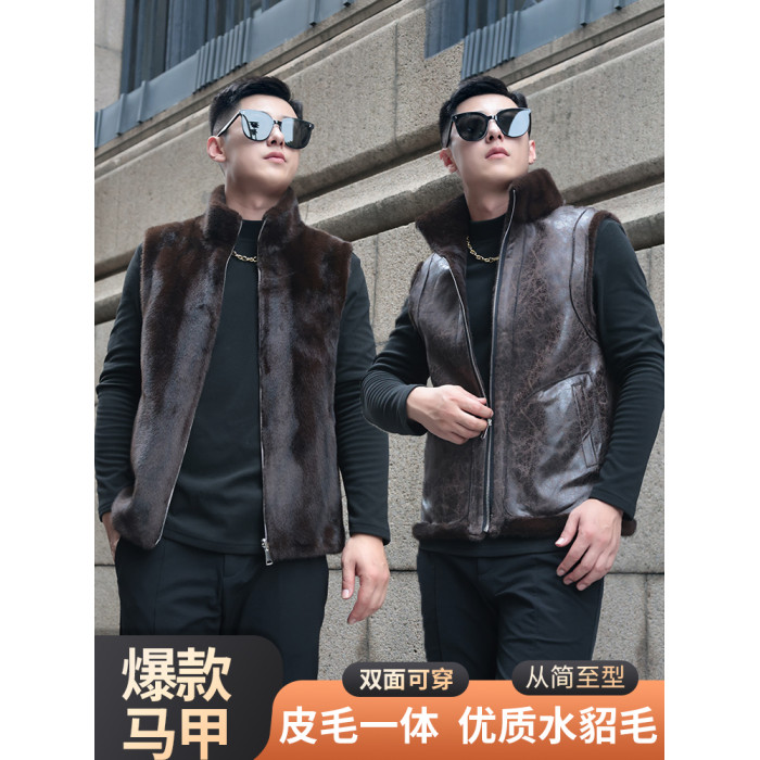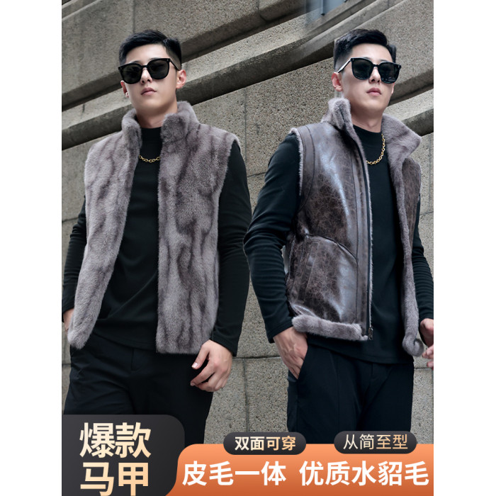 馬甲冬季男外穿立領保暖皮草仿水貂皮毛一體加厚貂絨外套倆面穿潮
