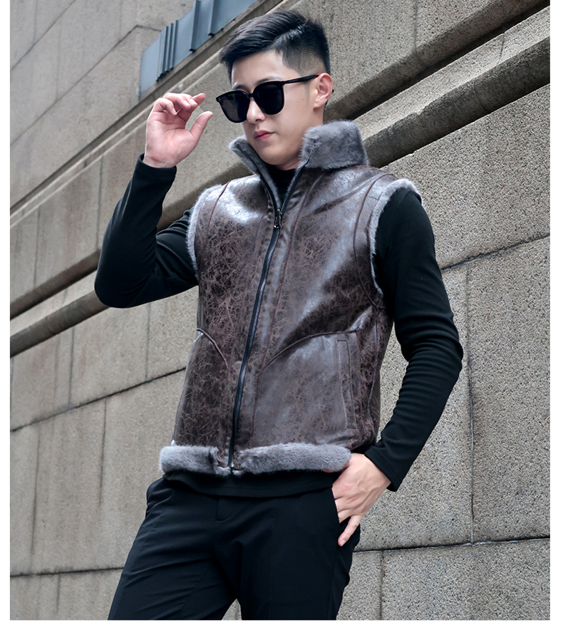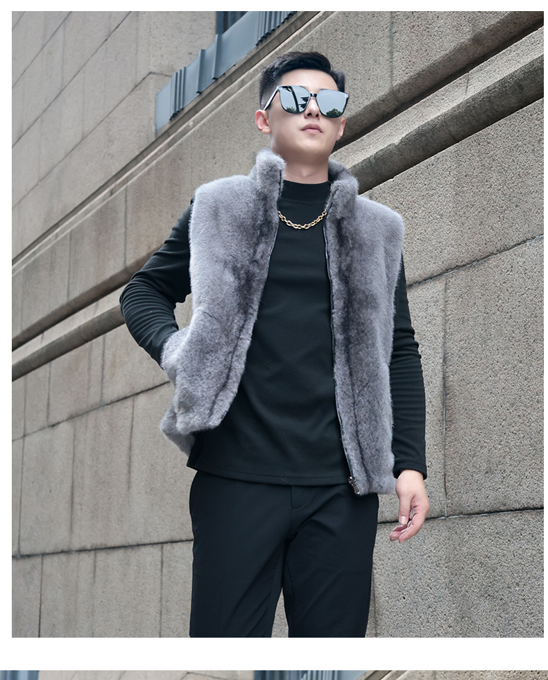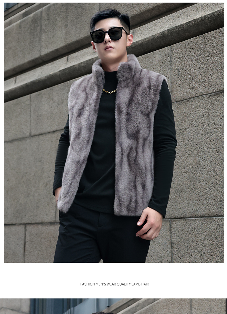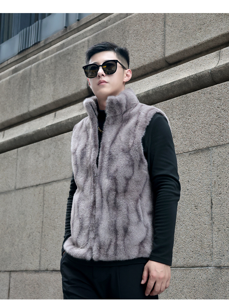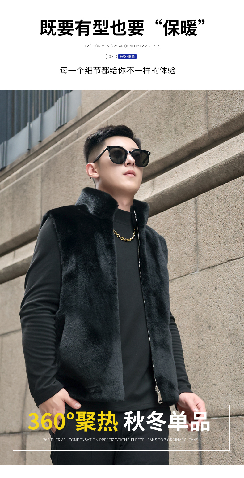 馬甲冬季男外穿立領保暖皮草仿水貂皮毛一體加厚貂絨外套倆面穿潮