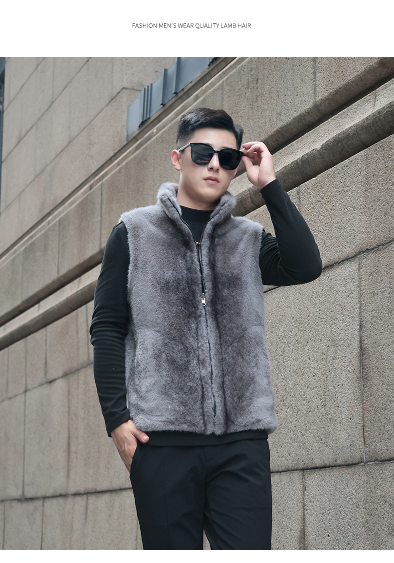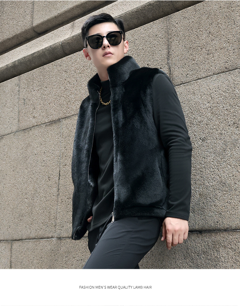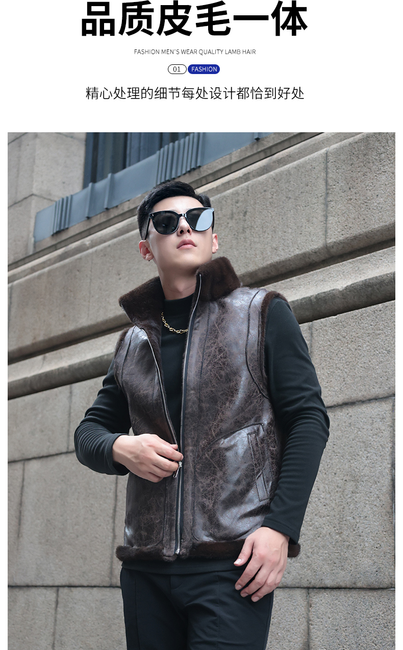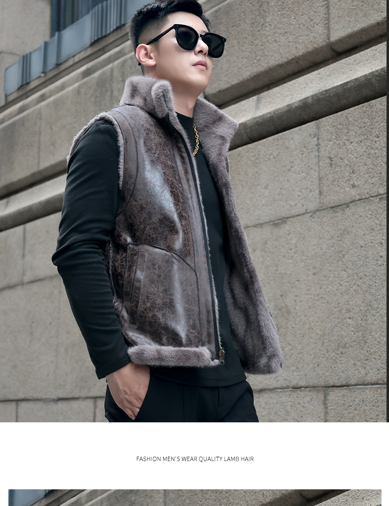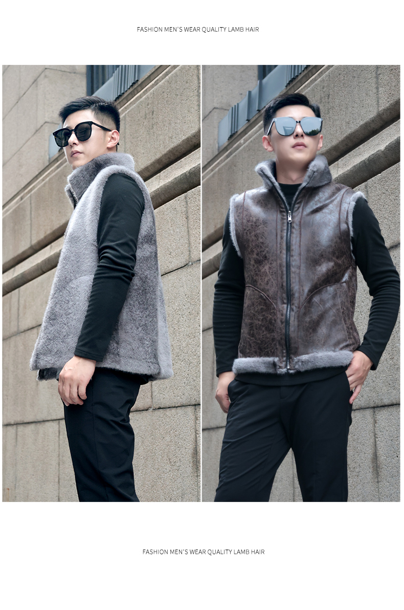馬甲冬季男外穿立領保暖皮草仿水貂皮毛一體加厚貂絨外套倆面穿潮