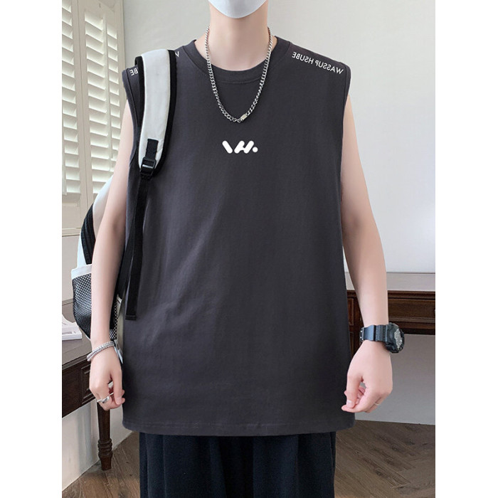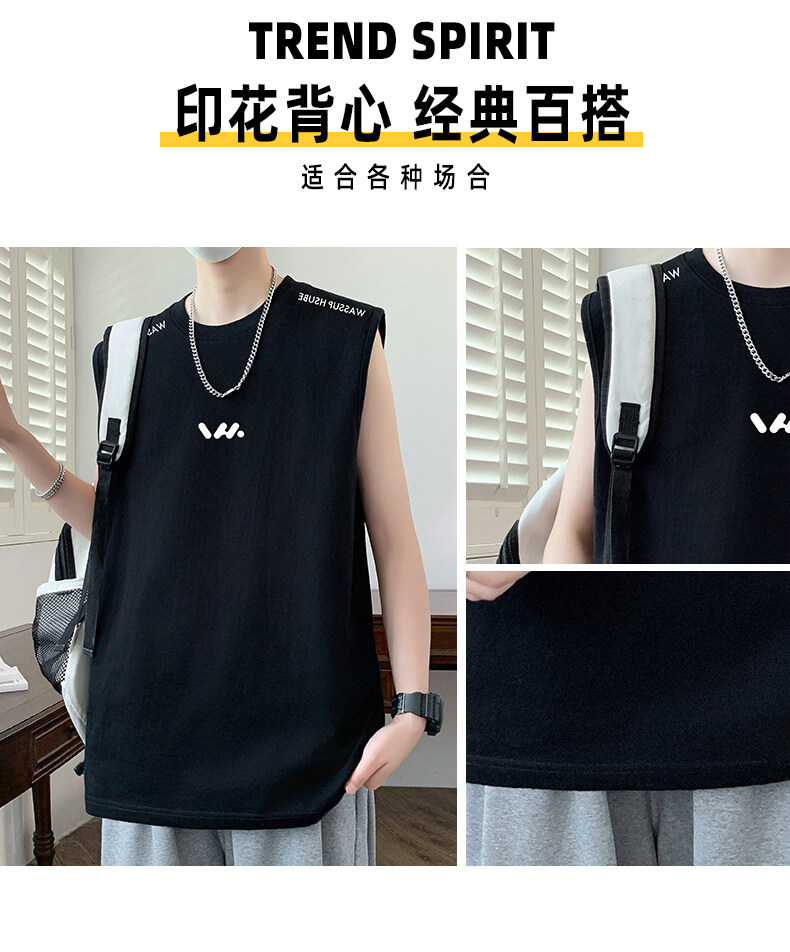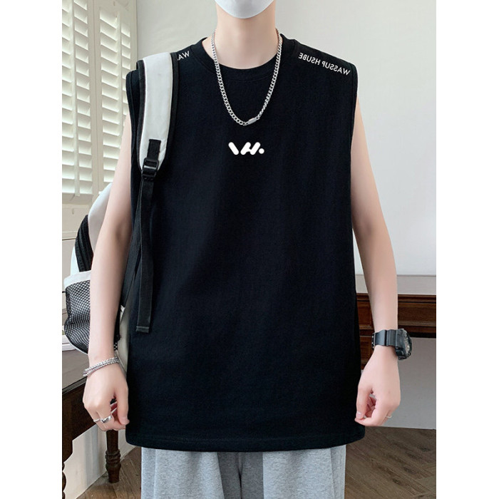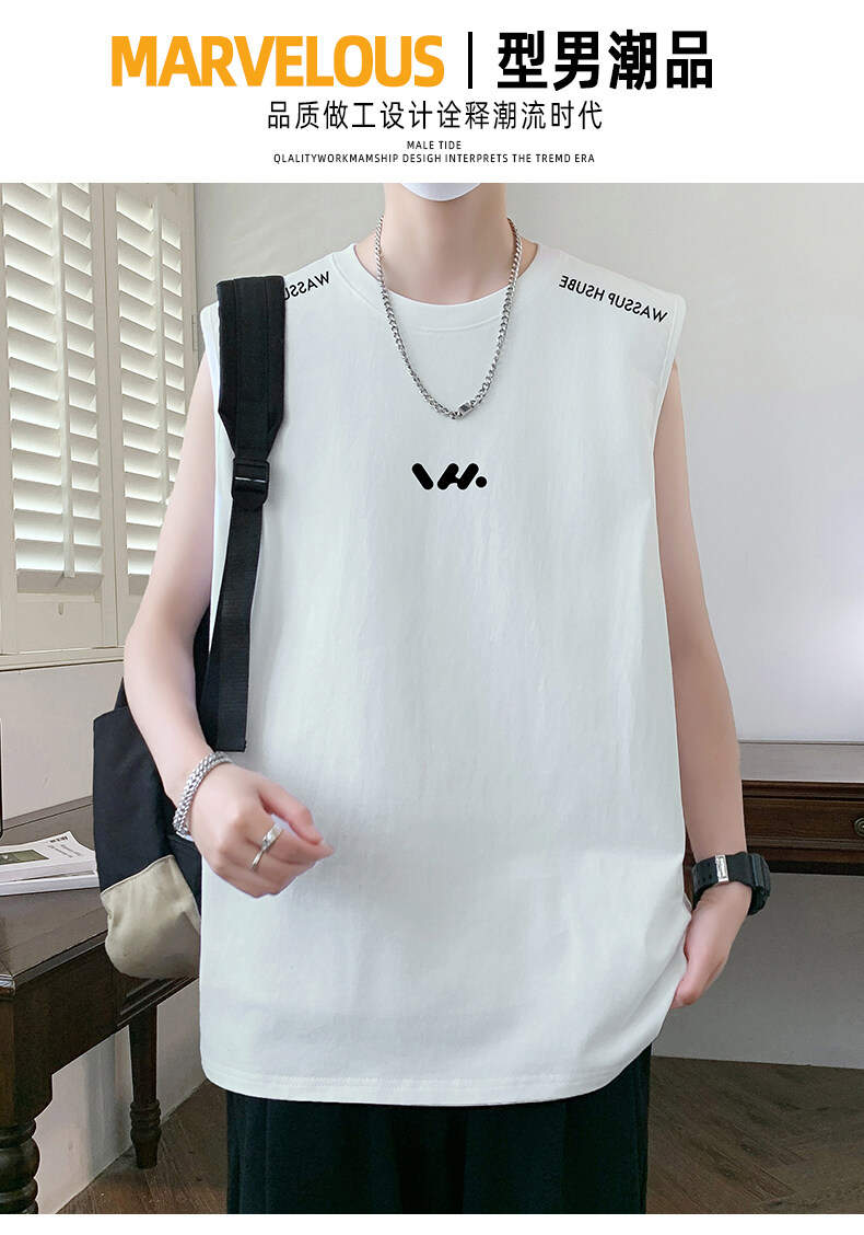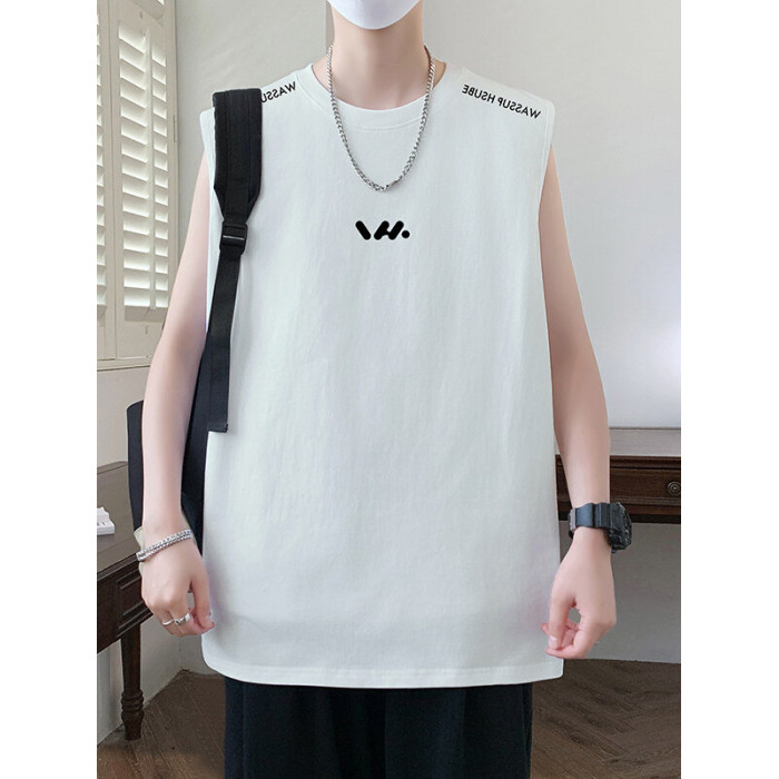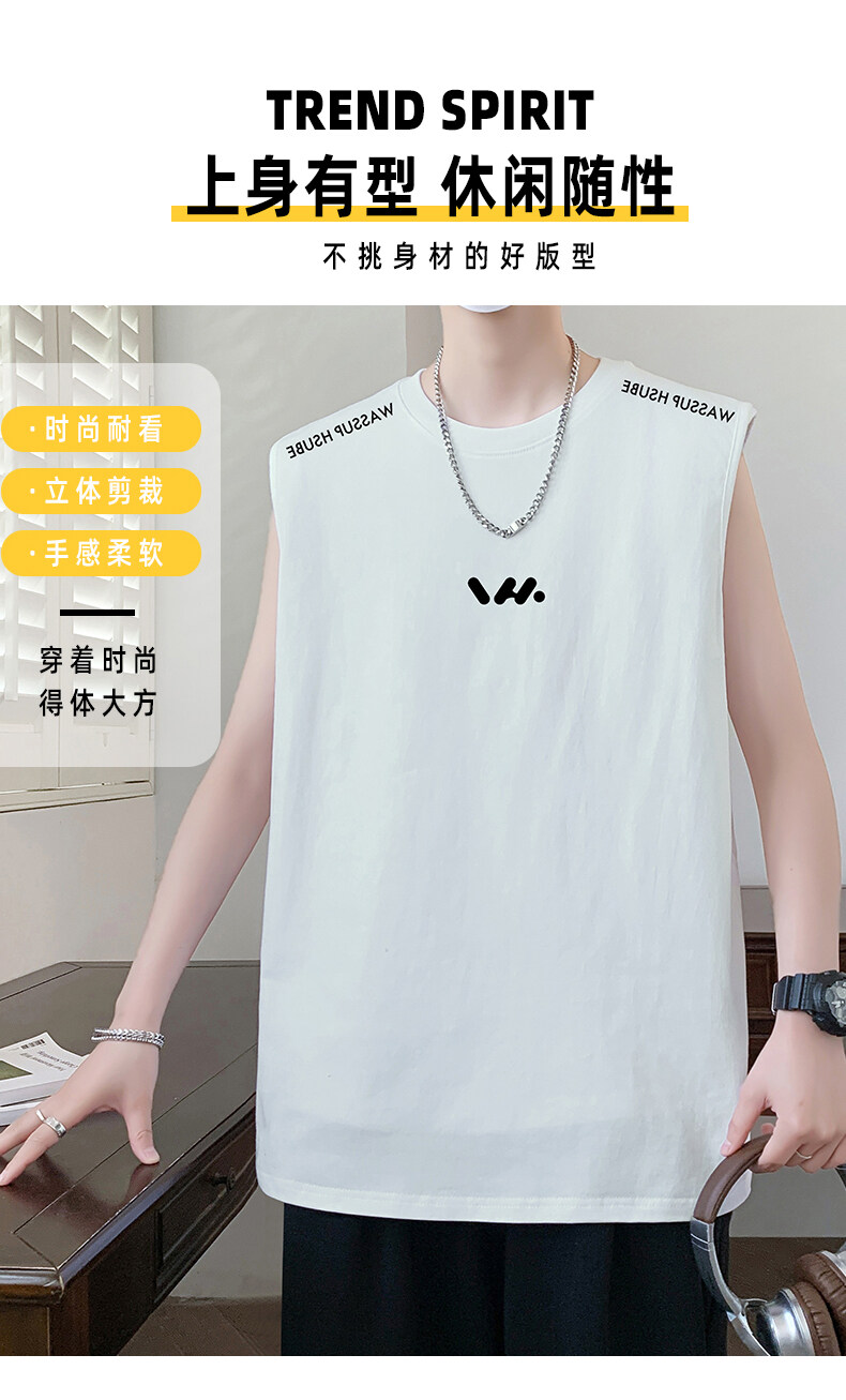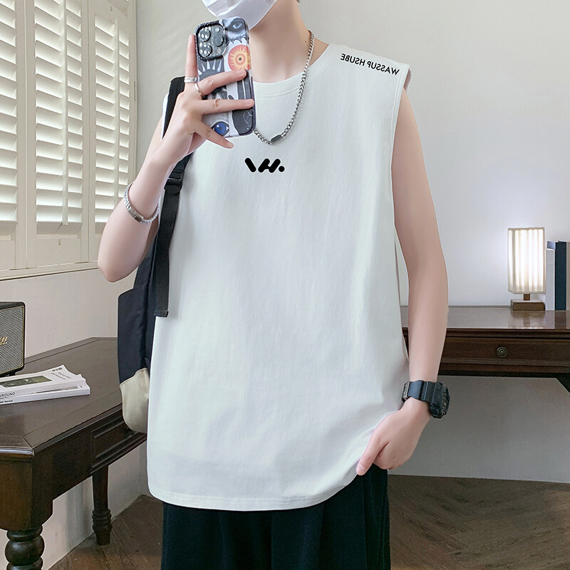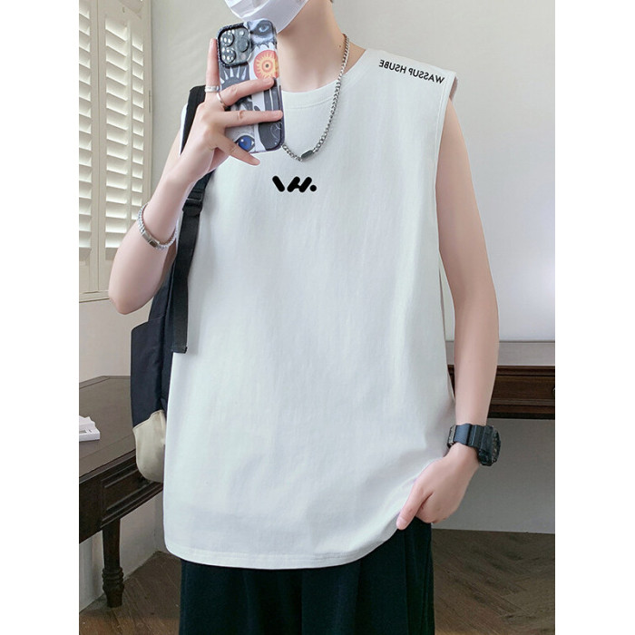 2025青少年美式純棉白搭T恤男士夏季簡約字母ins涼感無袖上衣背心