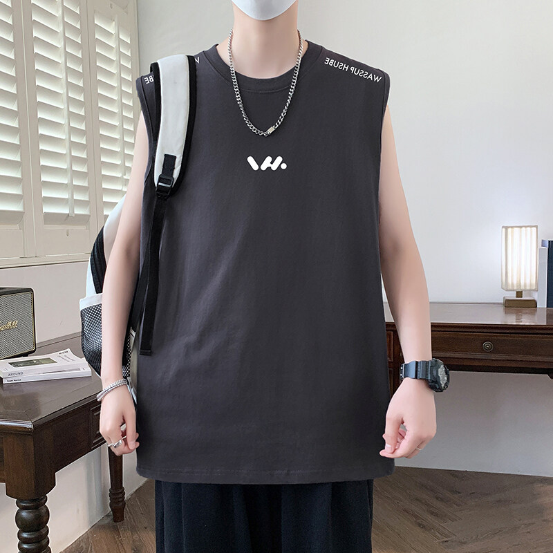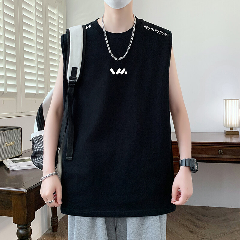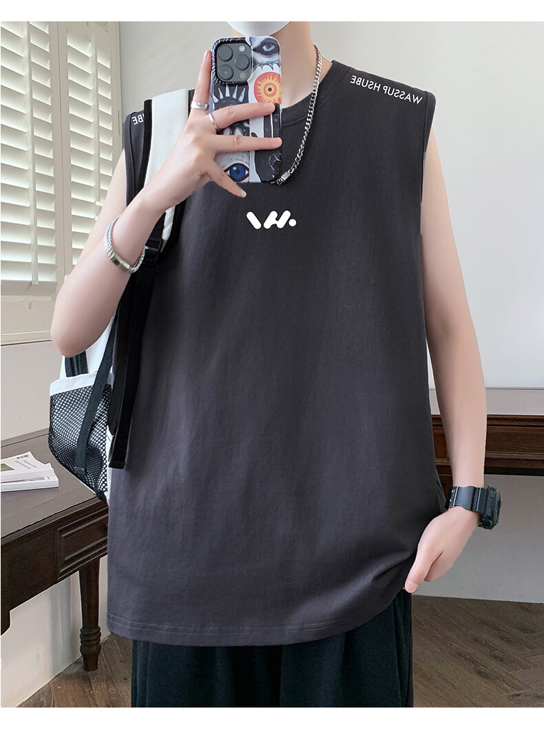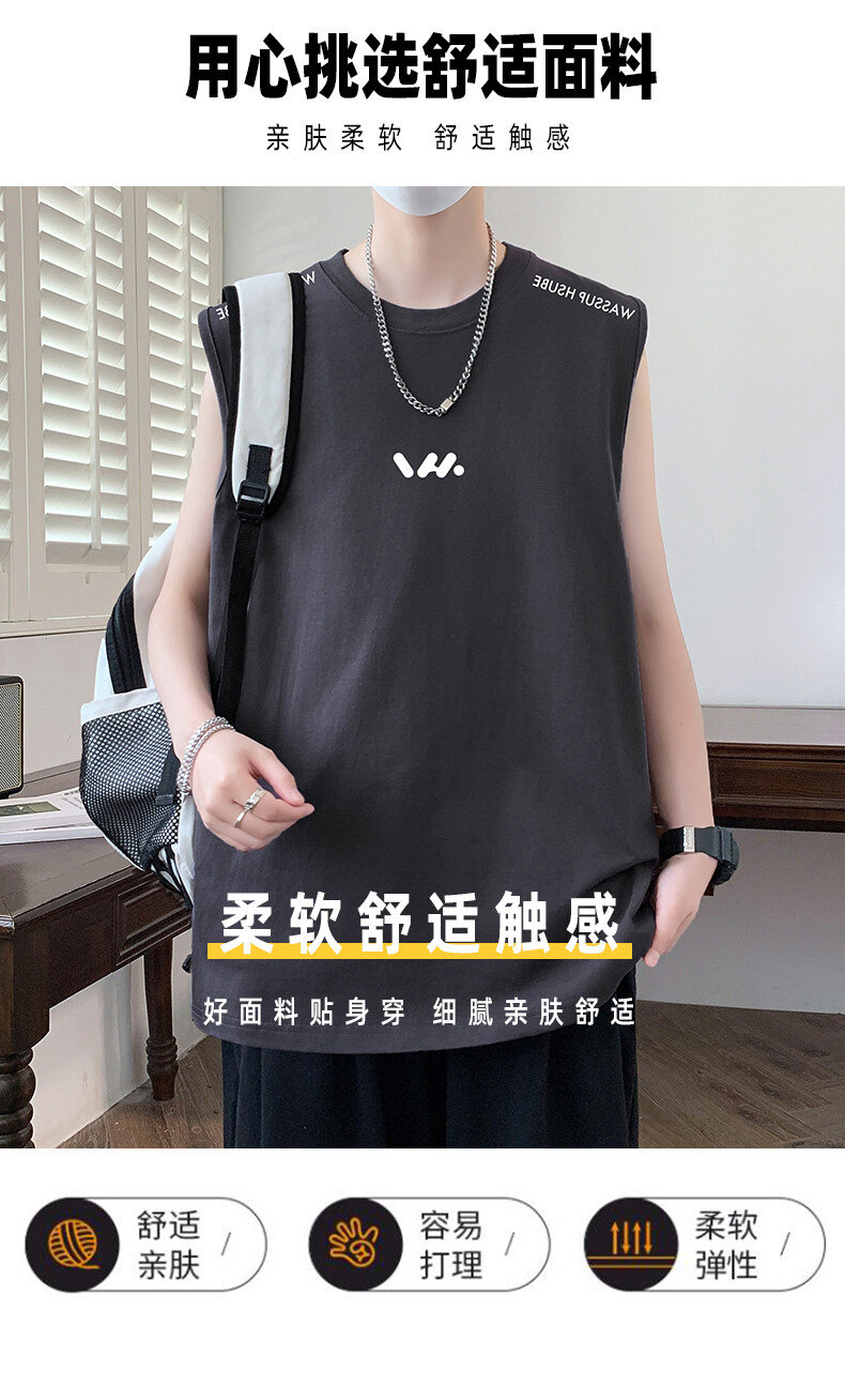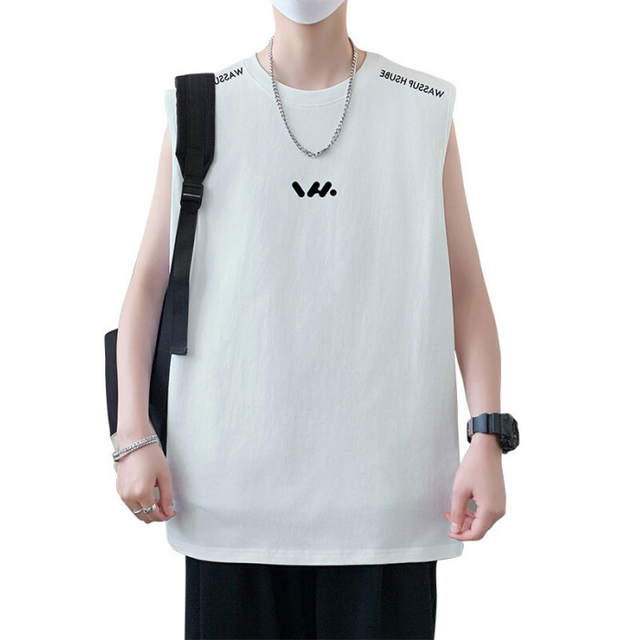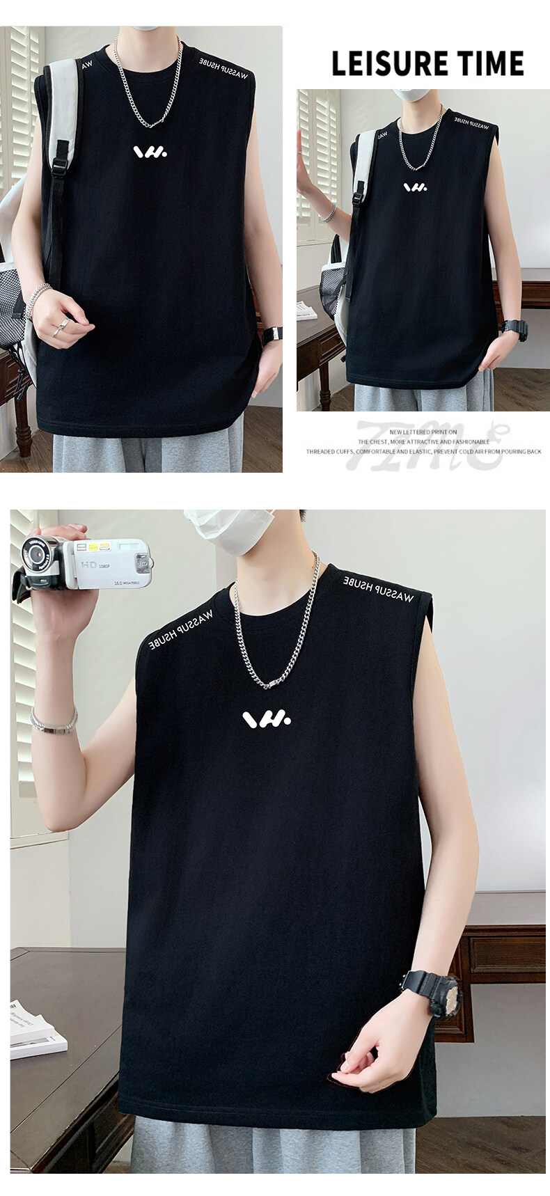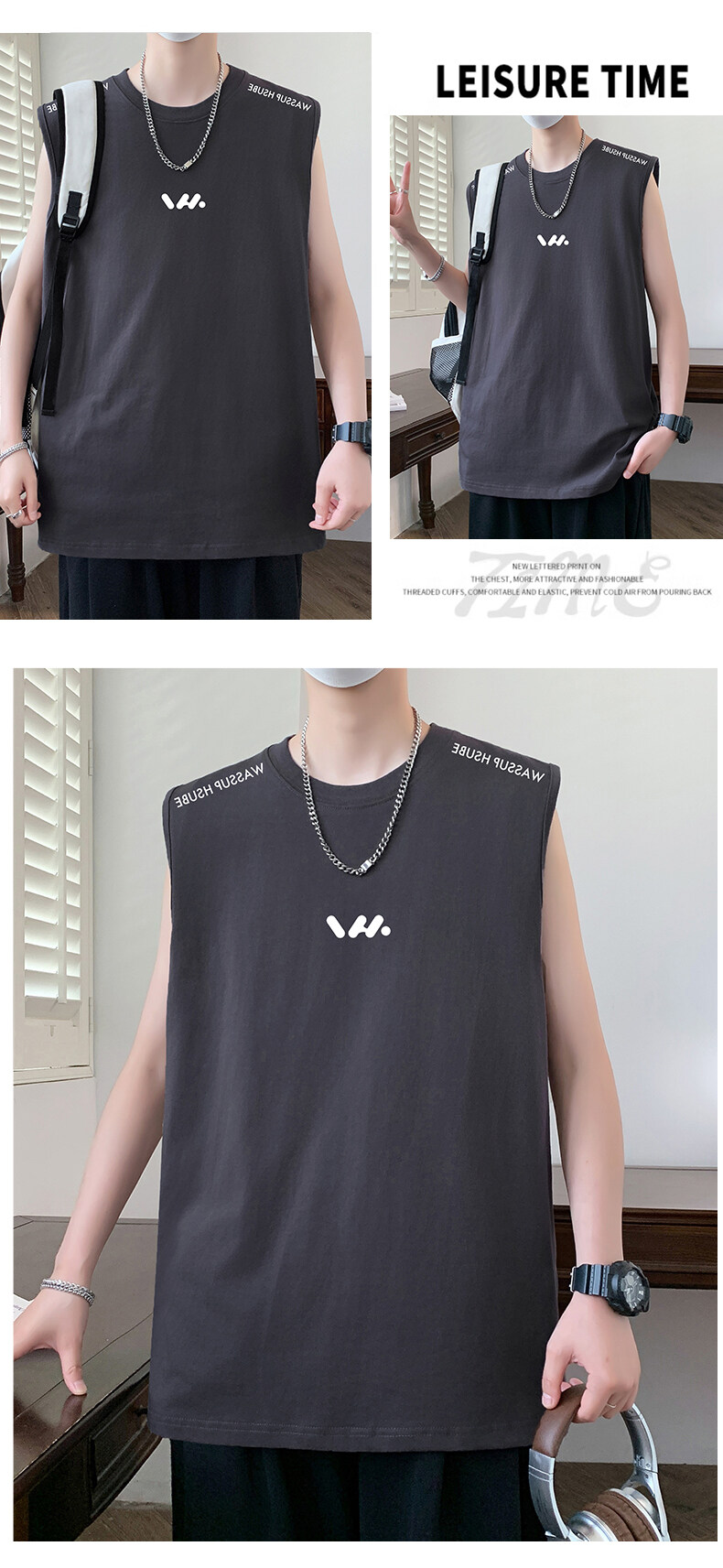 2025青少年美式純棉白搭T恤男士夏季簡約字母ins涼感無袖上衣背心